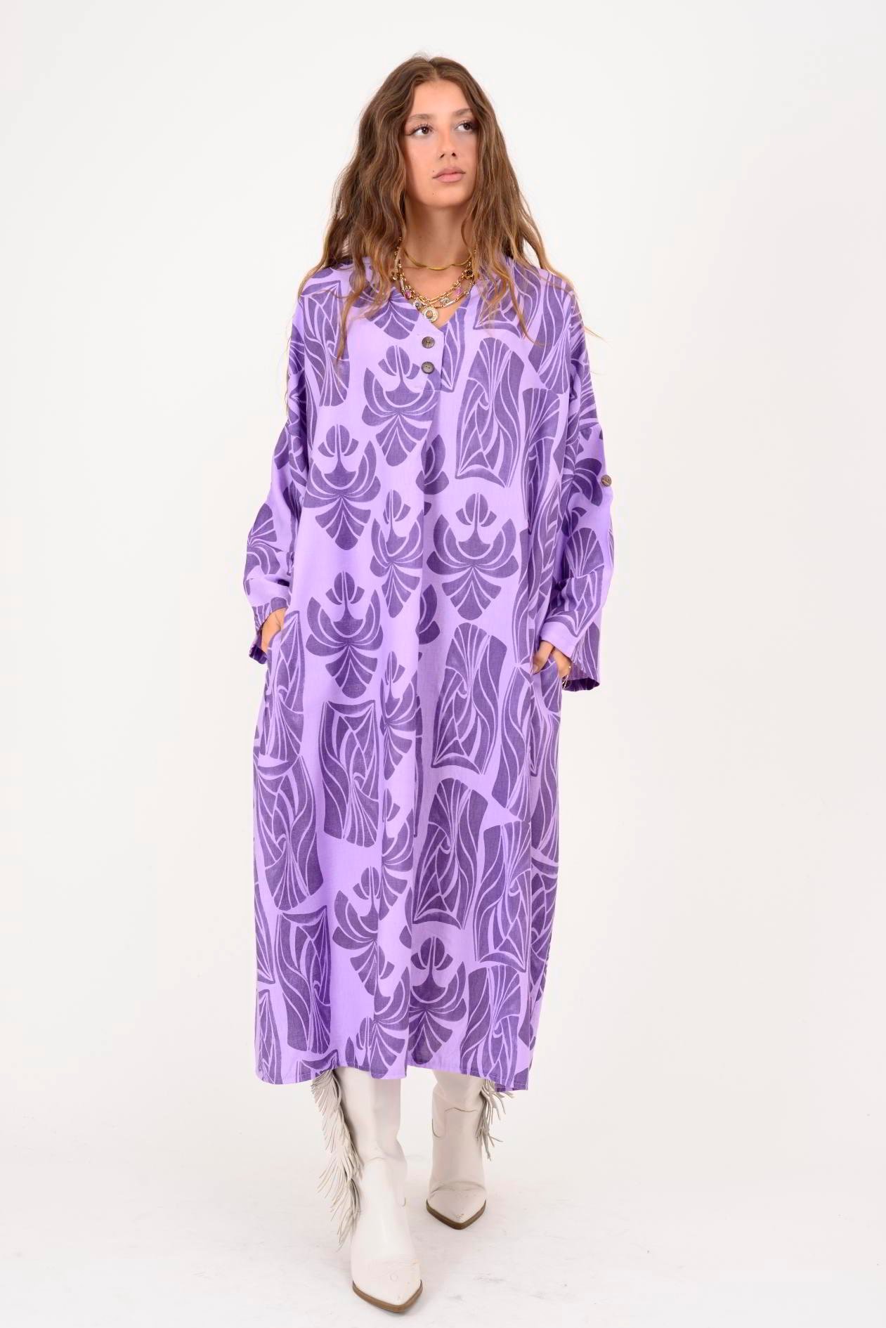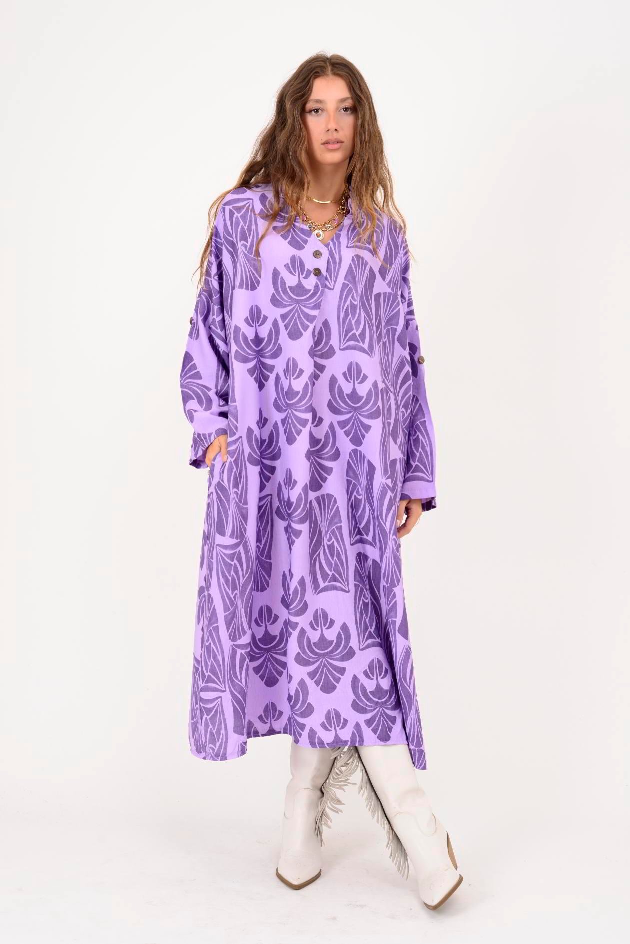 10858 LOVA YAPRAK DESEN ELBİSE (25Y.T.ELB.00059-38)
