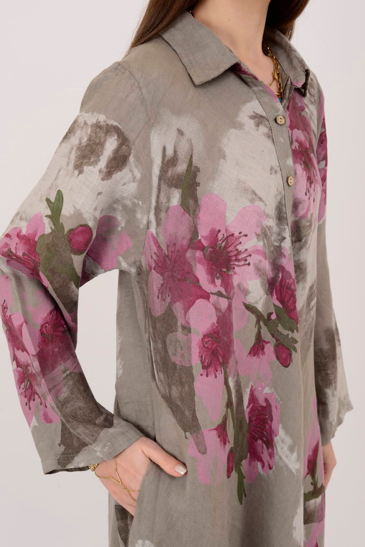 Ürün Açıklaması Gömlek yaka formuyla öne çıkan bu keten elbise, hafif ve rahat yapısıyla gün boyu konfor sunar. Uzun ve dökümlü kesimi zarif bir duruş sağlarken, etek ucuna doğru hafif kloş formu elbiseye akışkan ve daha zayıf gösteren bir siluet kazandırır. Boydan düğmeli tasarımı ise kullanım kolaylığı sunar.