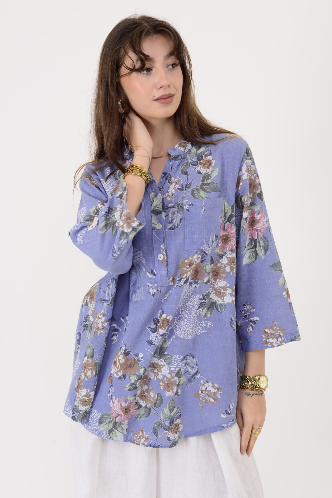 15455F-63 ÇİÇEK DESEN GÖMLEK (25Y.T.GML.00047-İ0)