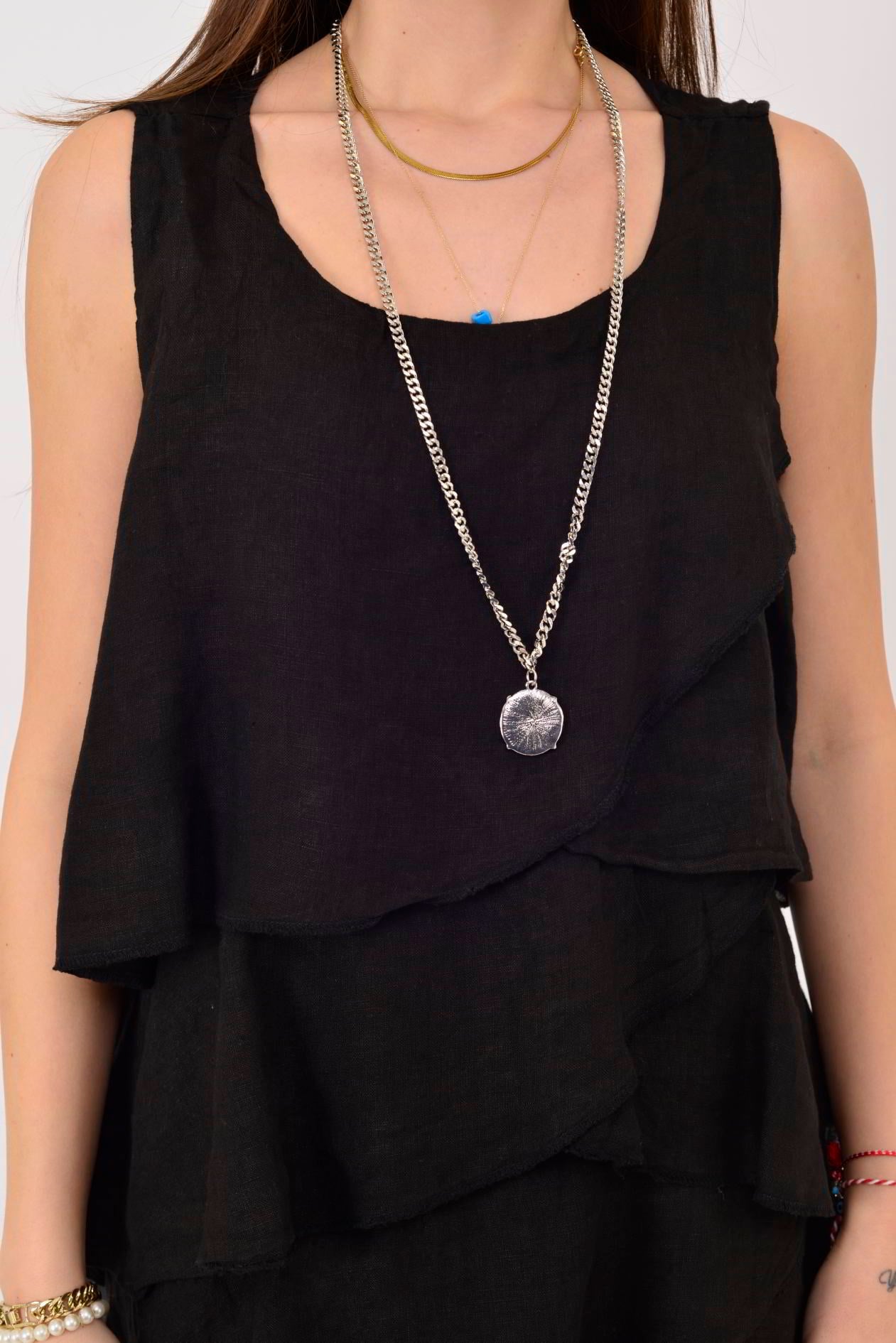 2-08 KAT KAT KOLSUZ KETEN ELBİSE (26Y.T.ELB.00059-001)