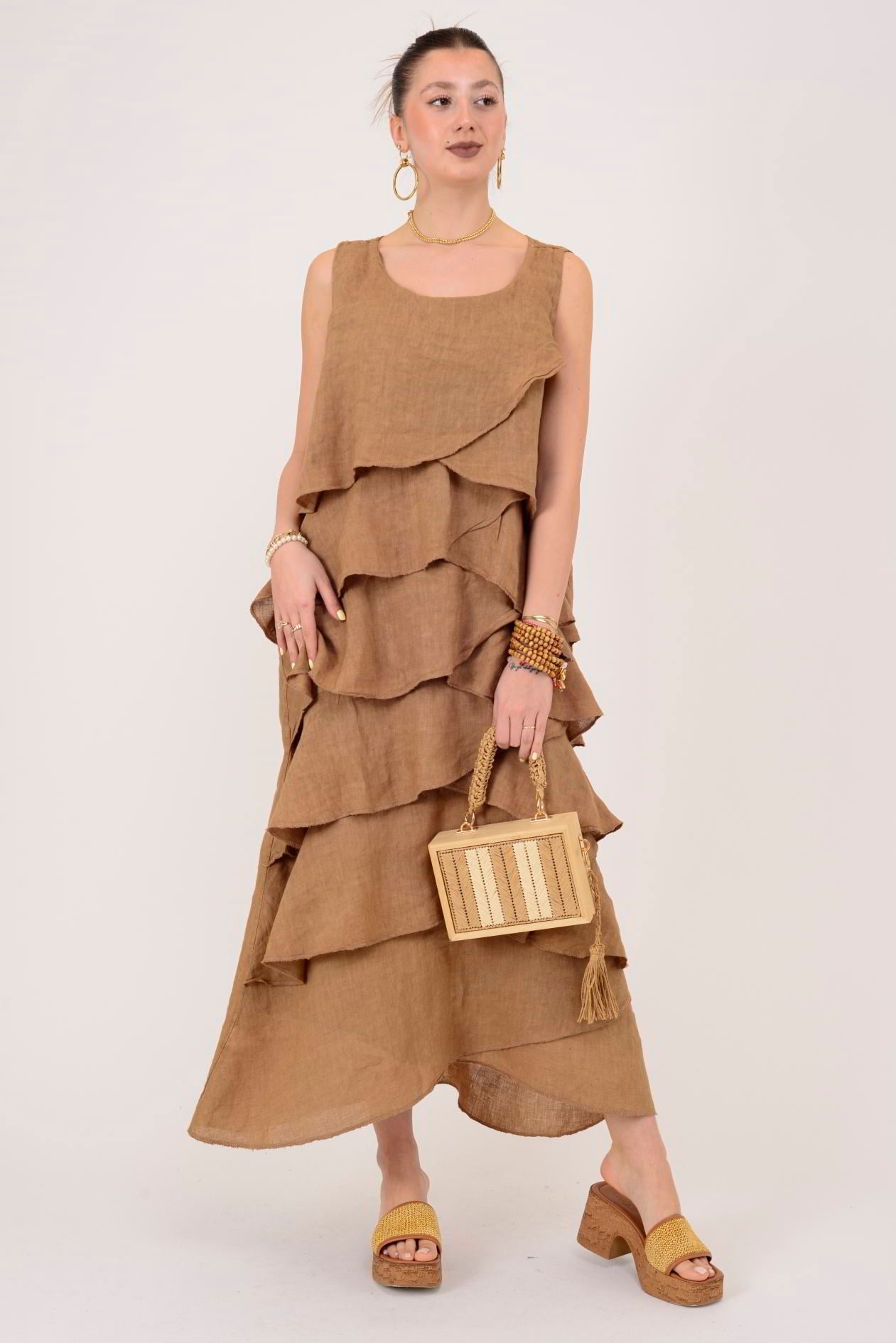 2-08 KAT KAT KOLSUZ KETEN ELBİSE (26Y.T.ELB.00059-CAP)