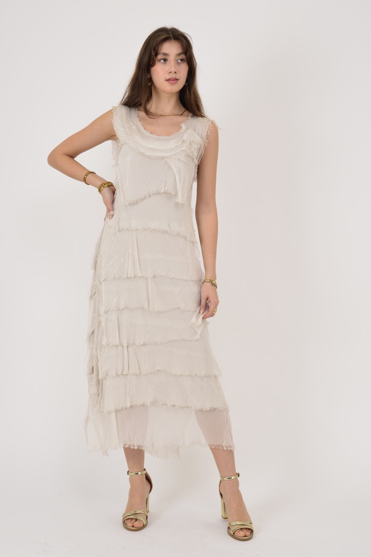 Vücudu sert şekilde sarmadan form alan yapısı sayesinde hem rahat hem de zarif bir kullanım sunar. Sandalet, topuklu ayakkabı ya da sade aksesuarlarla kolayca tamamlanabilir.