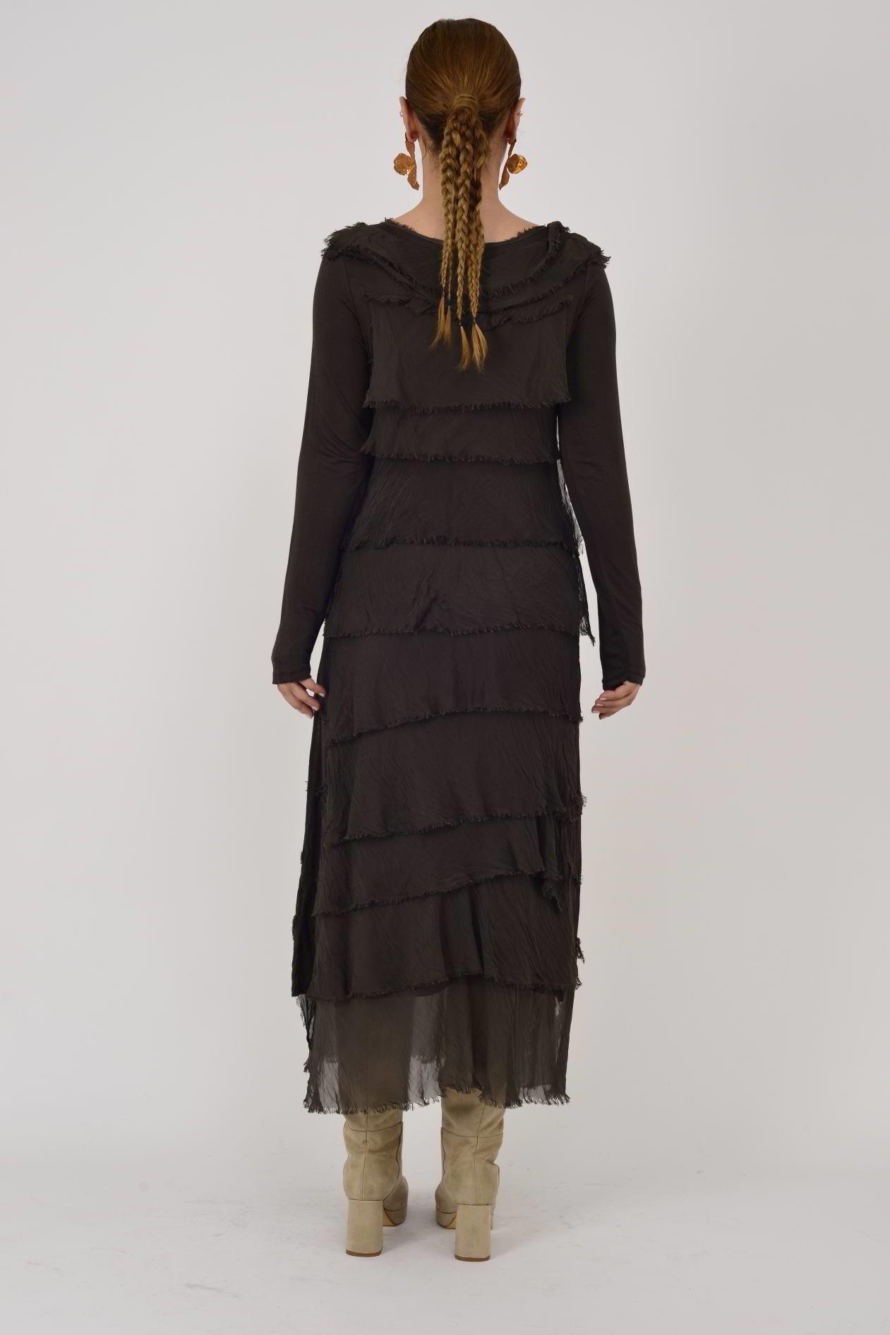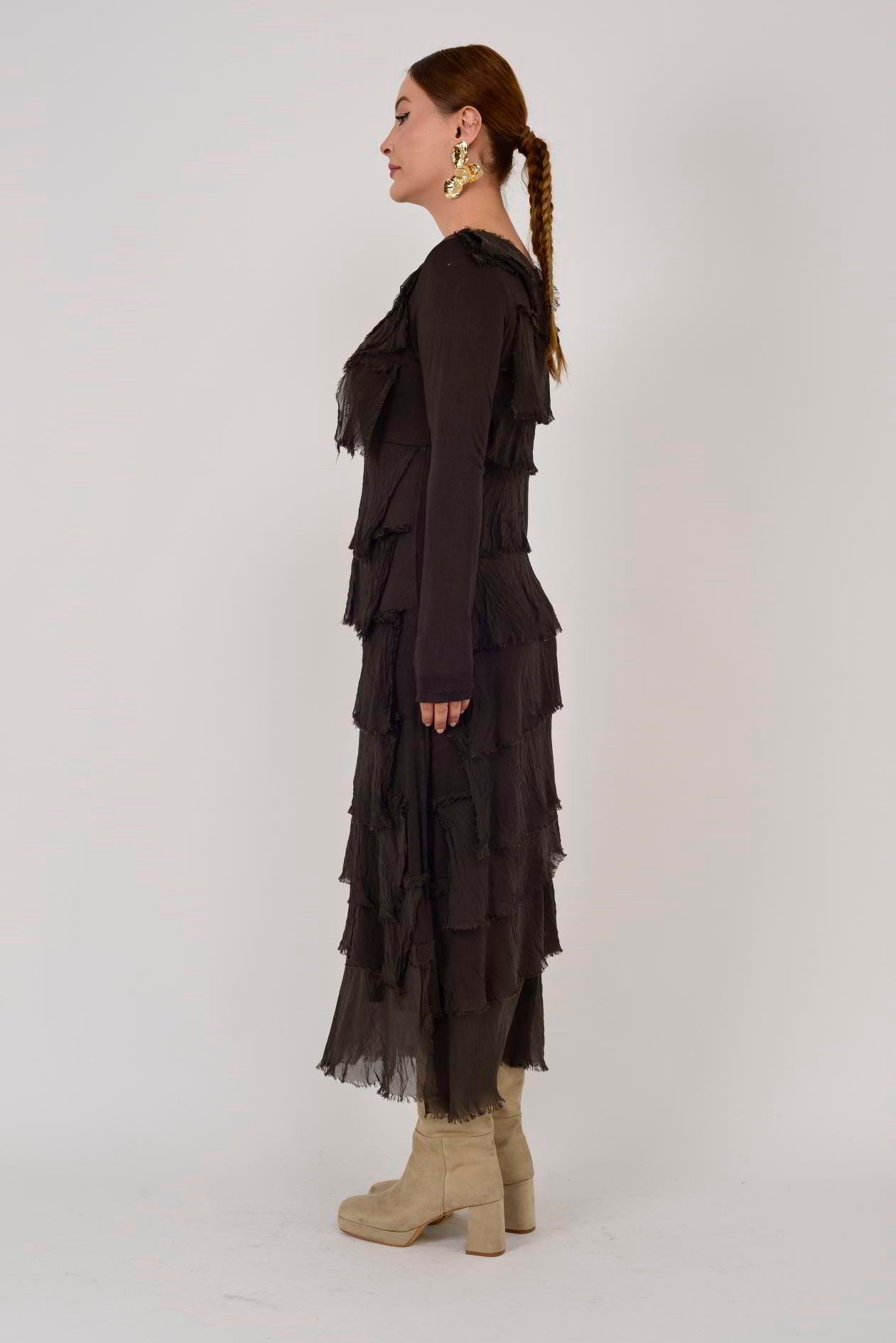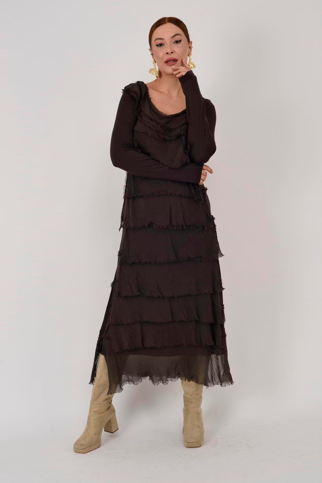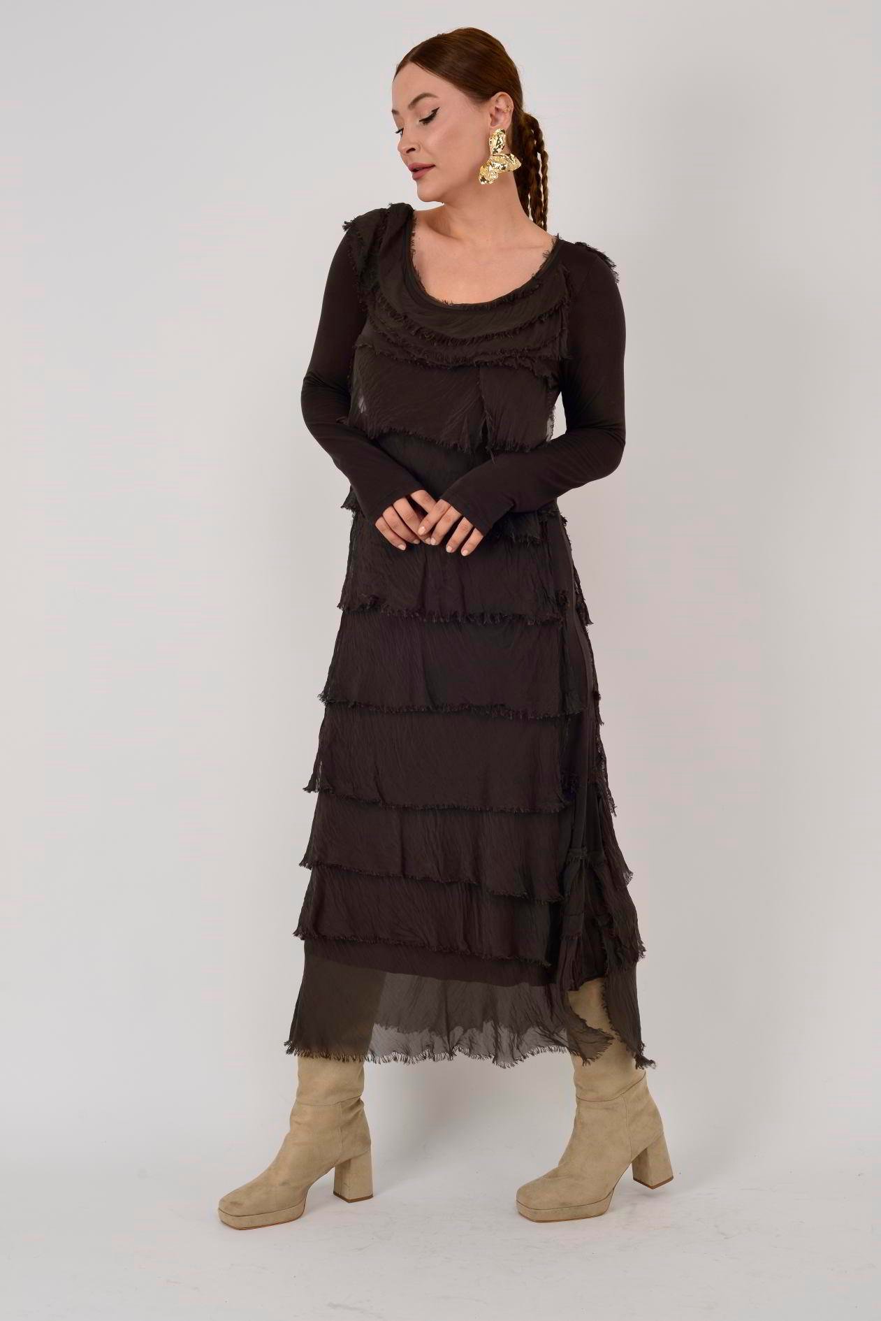 2078 UZUN KOLLU KAT KAT İPEK ELBİSE (17Y.T.ELB.0078-005)
