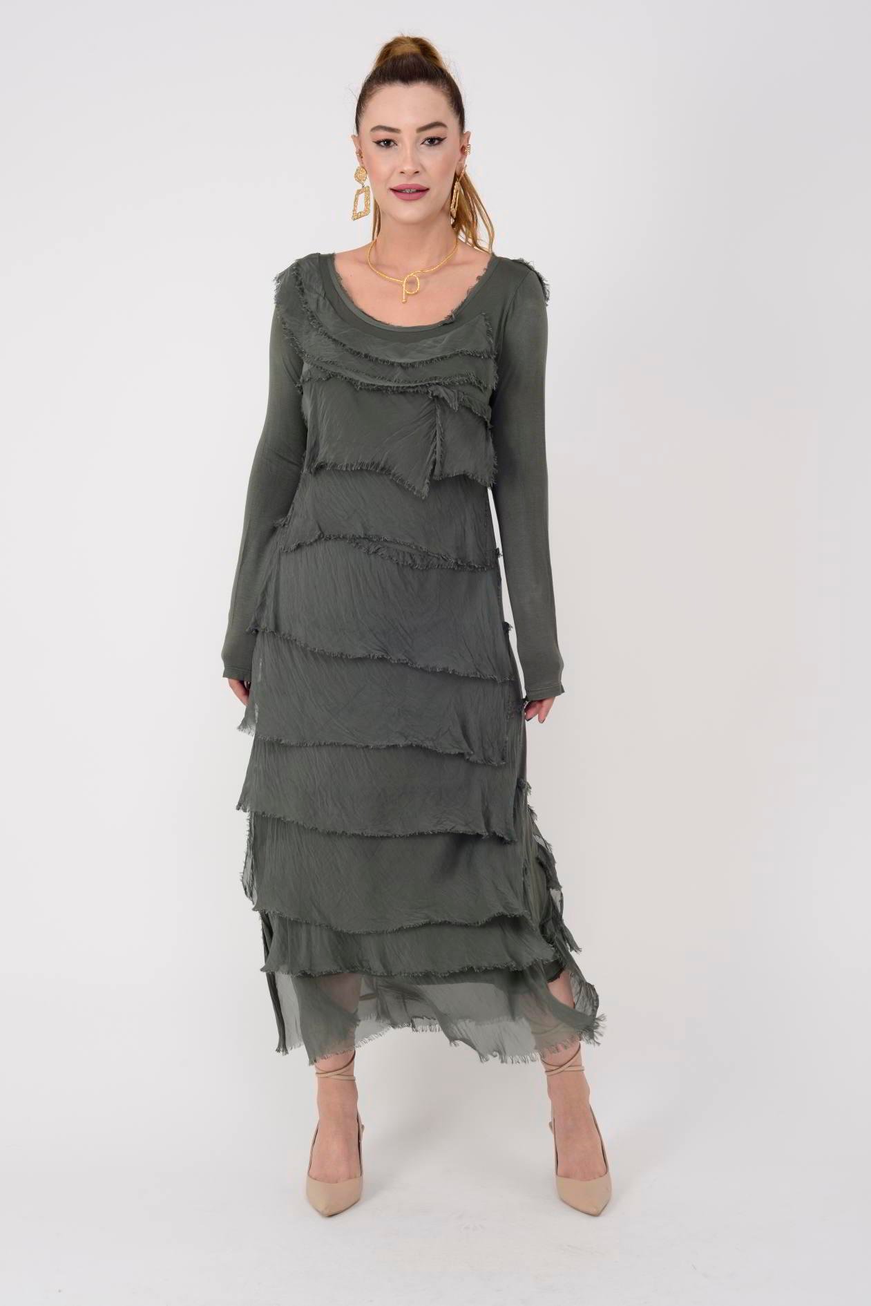 2078 UZUN KOLLU KAT KAT İPEK ELBİSE (17Y.T.ELB.0078-020)