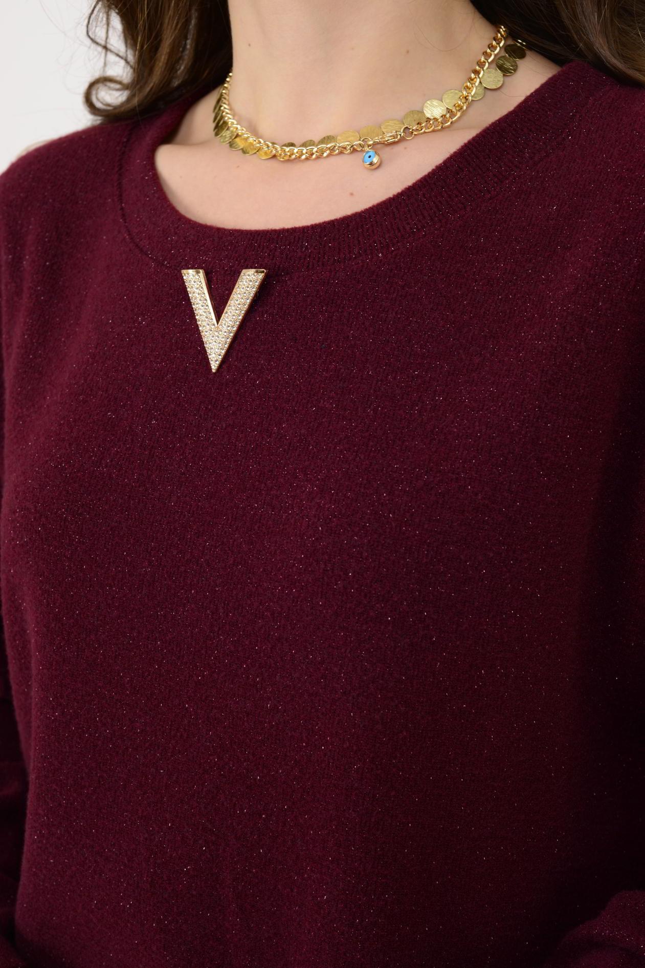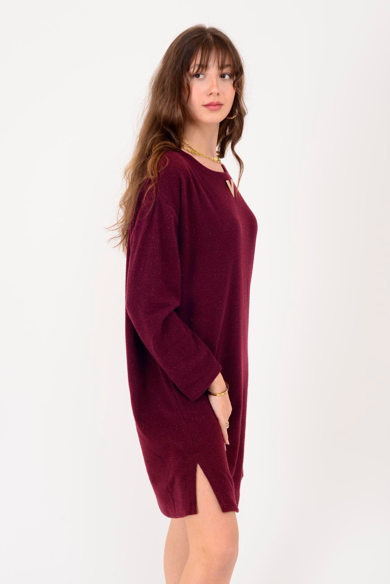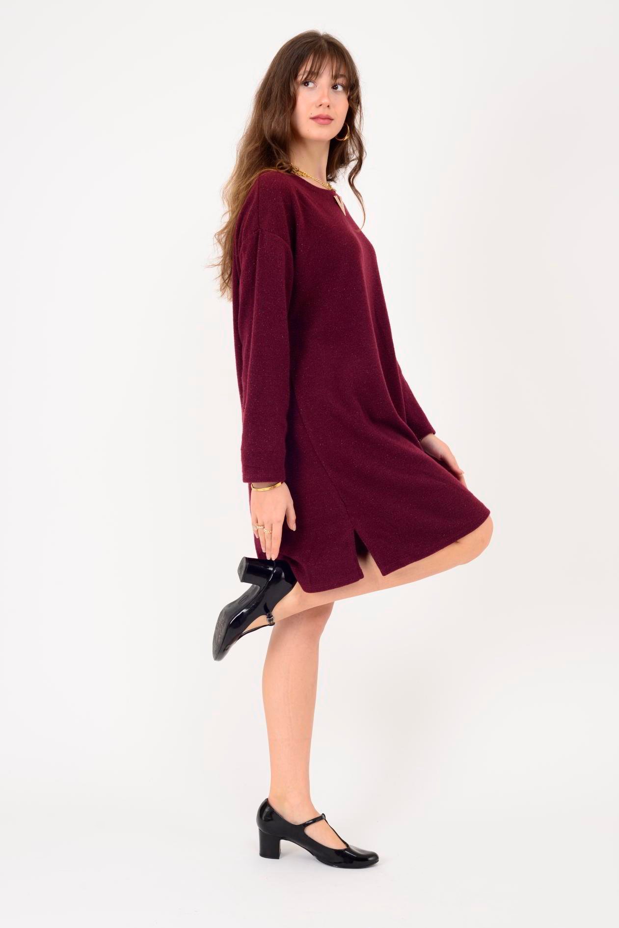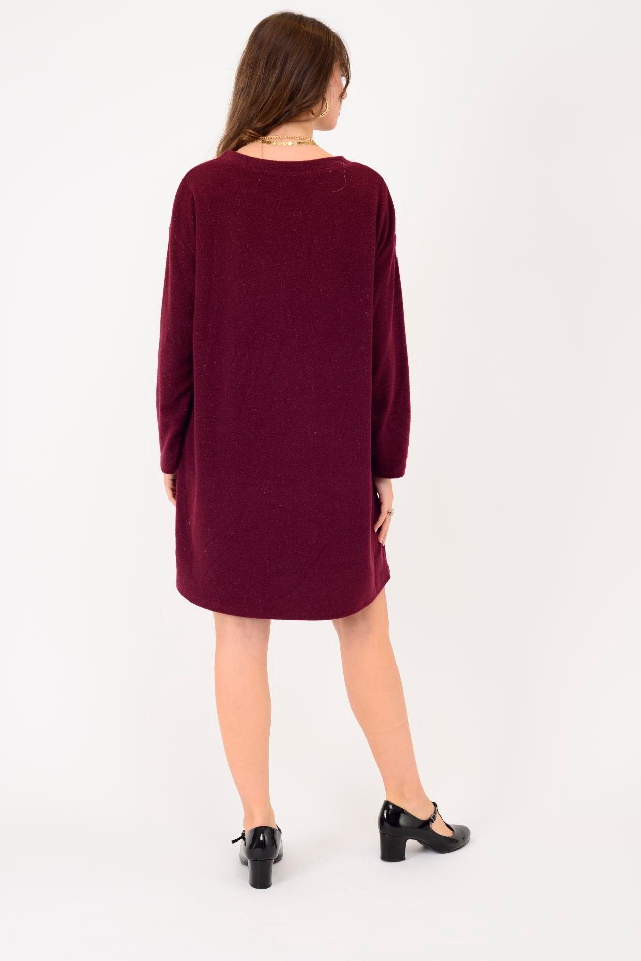 21458 V BROŞ DETAYLI SİMLİ TRİKO DOKULU KISA ELBİSE (25K.T.ELB.00079-018)