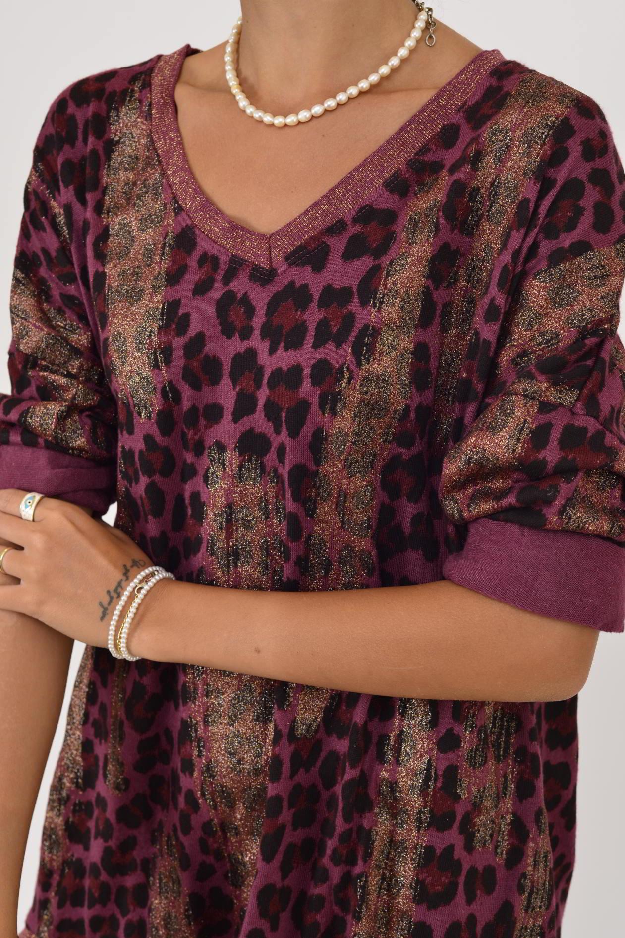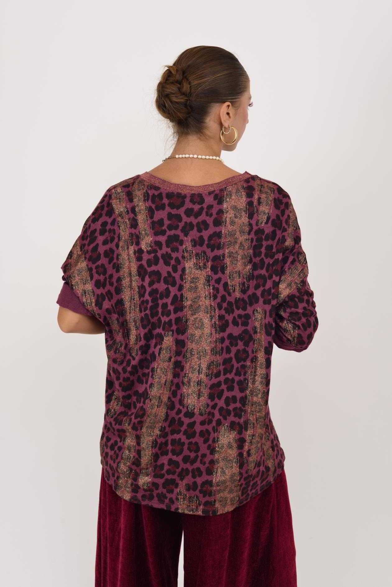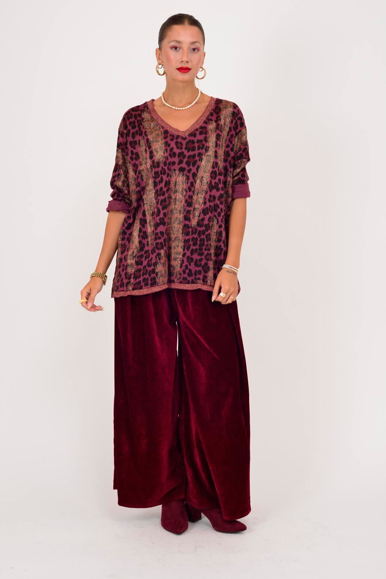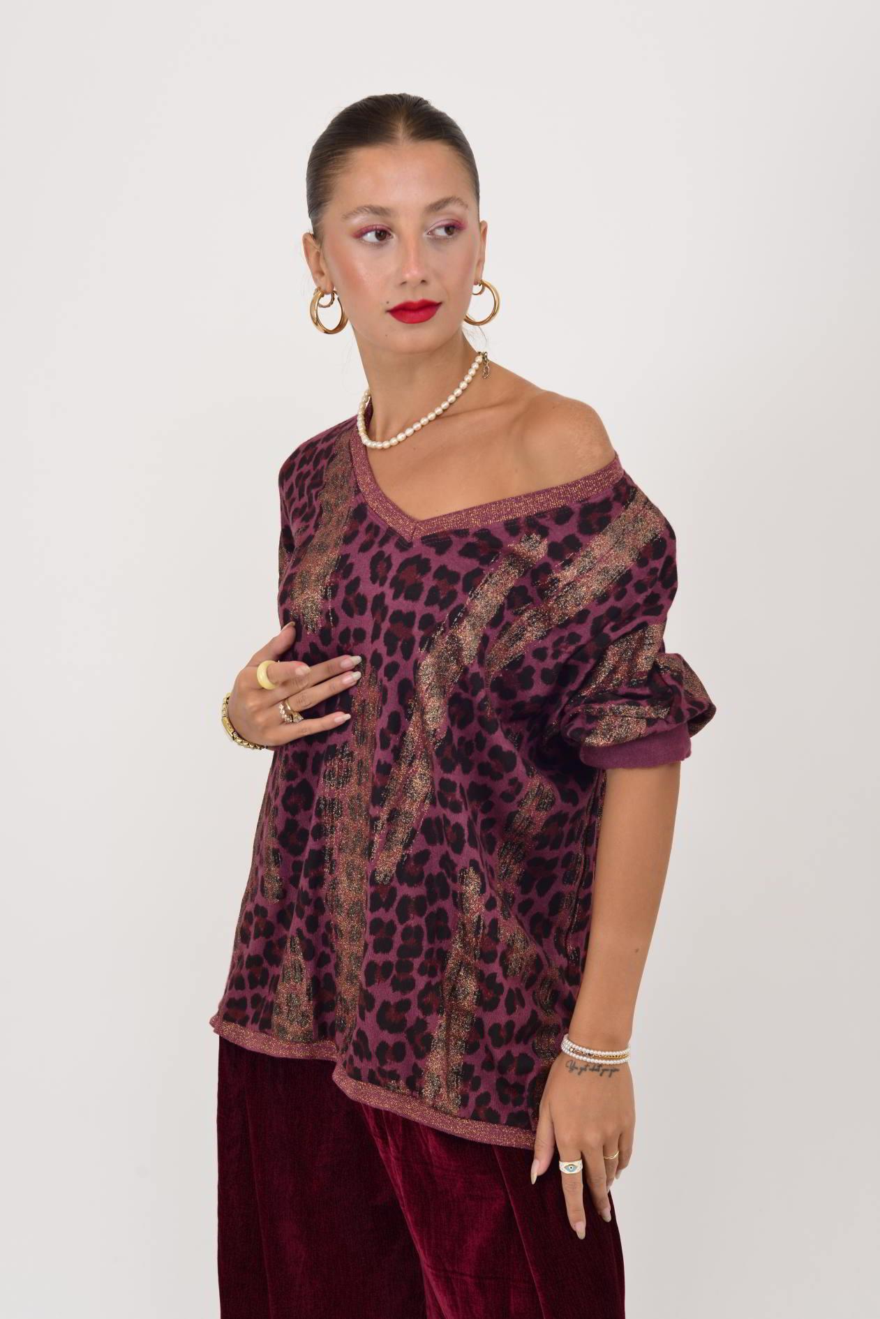 21812 LEOPAR DESENLİ V YAKA YALDIZLI TRİKO (25K.T.BLZ.00181-018)