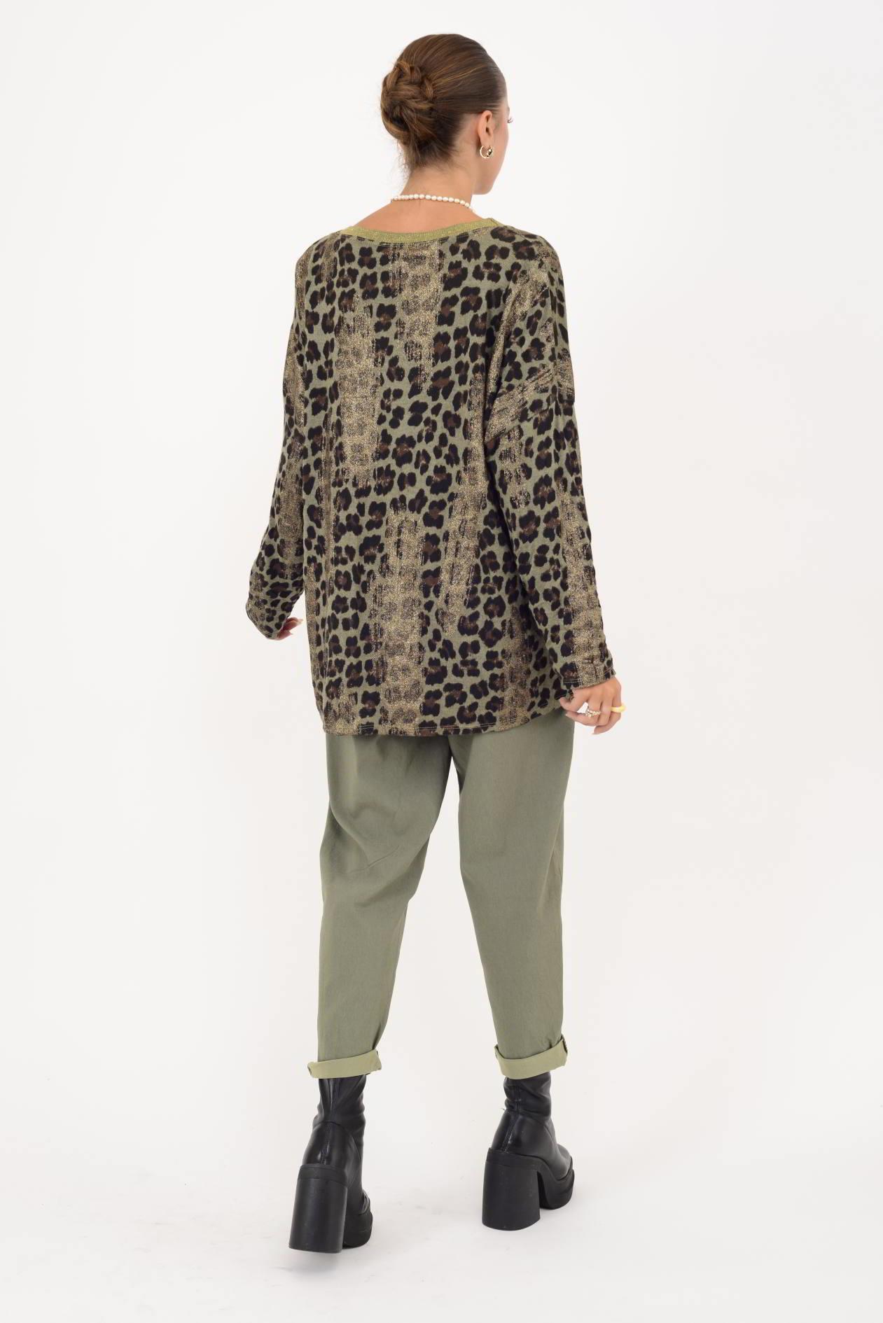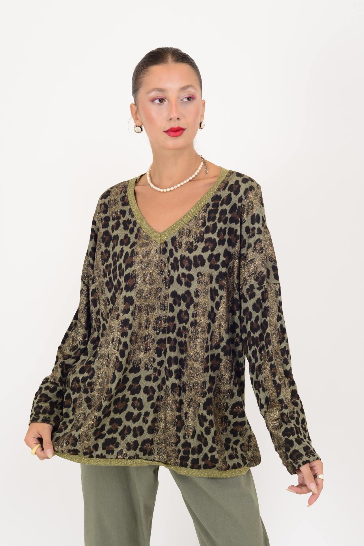 21812 LEOPAR DESENLİ V YAKA YALDIZLI TRİKO (25K.T.BLZ.00181-020)