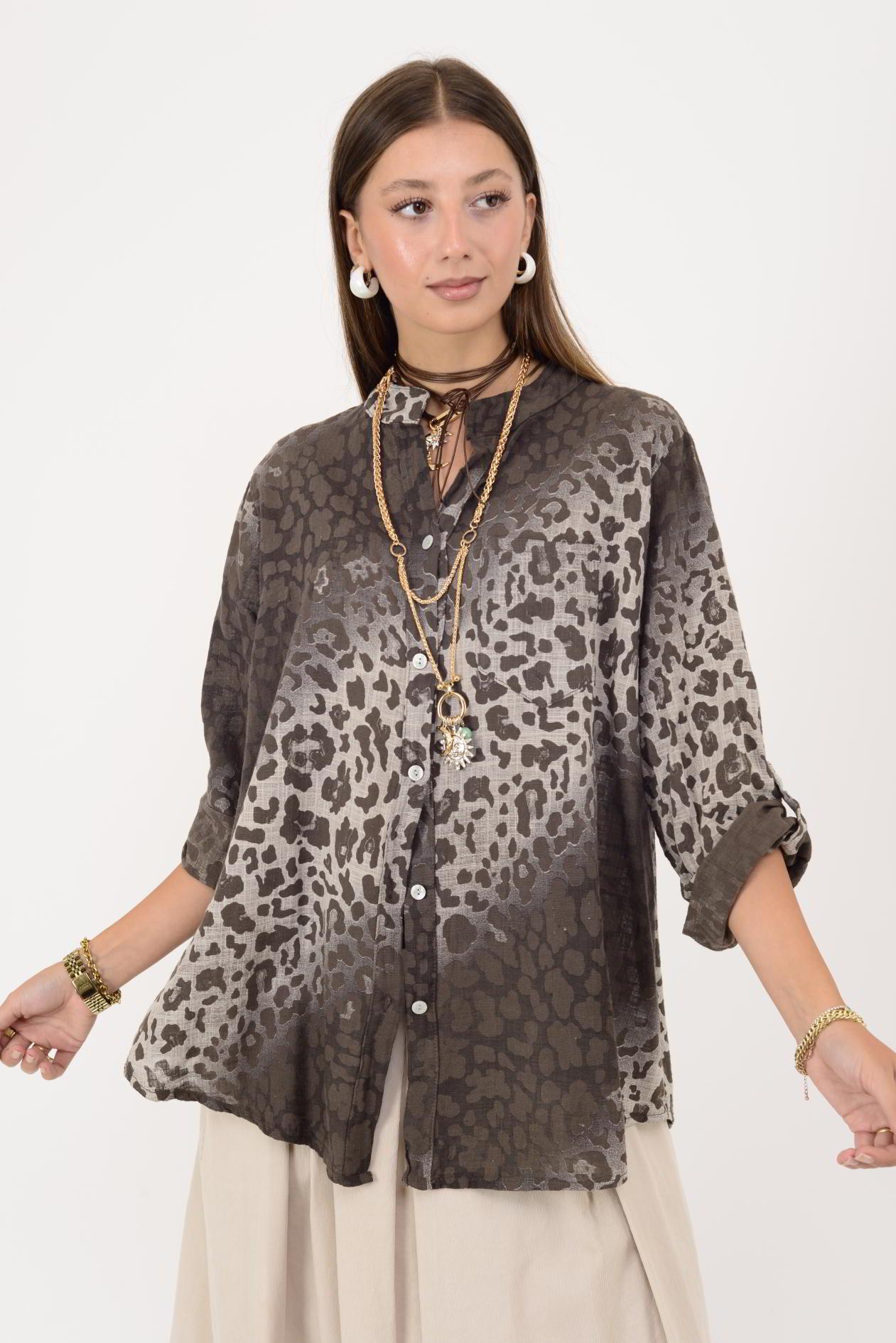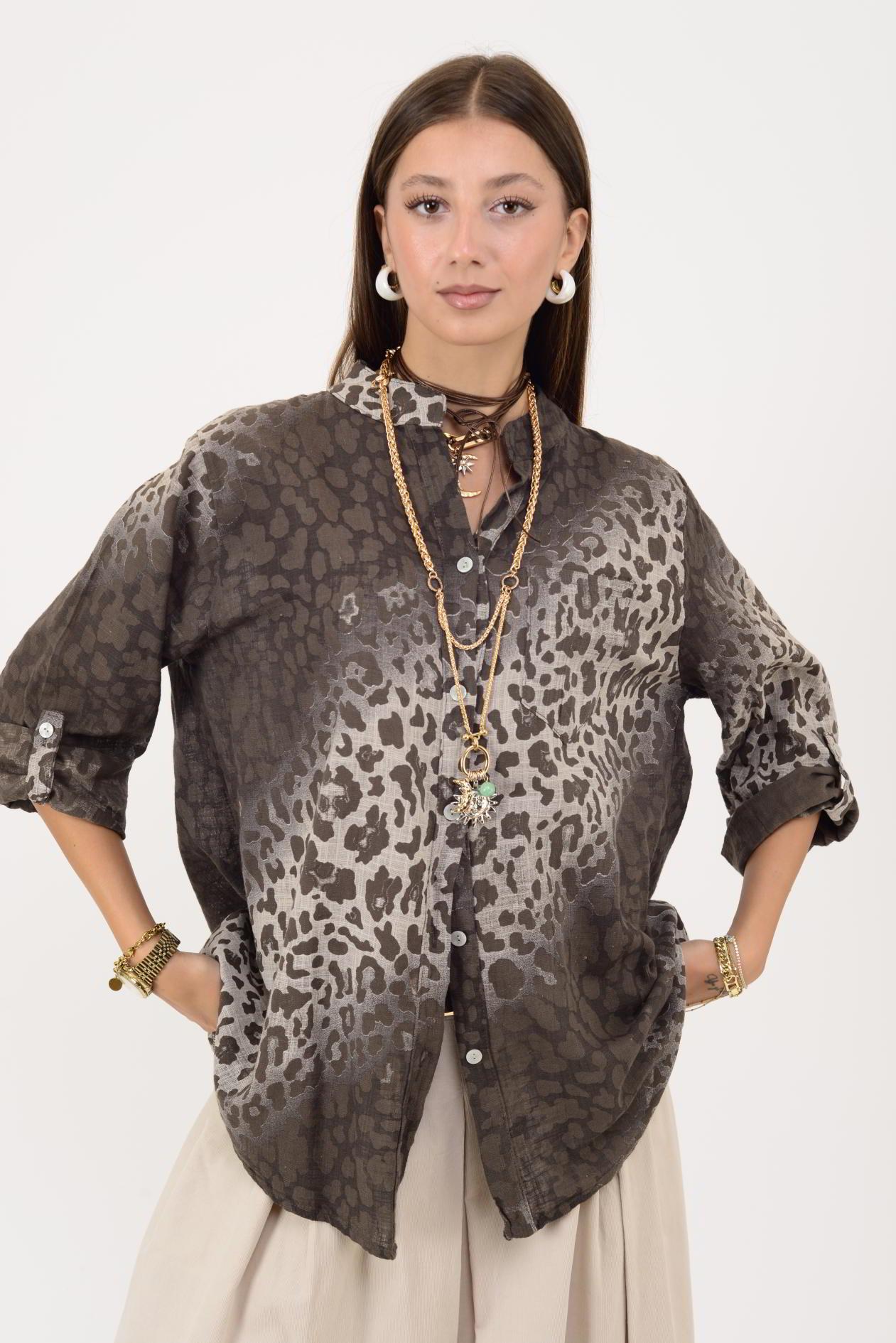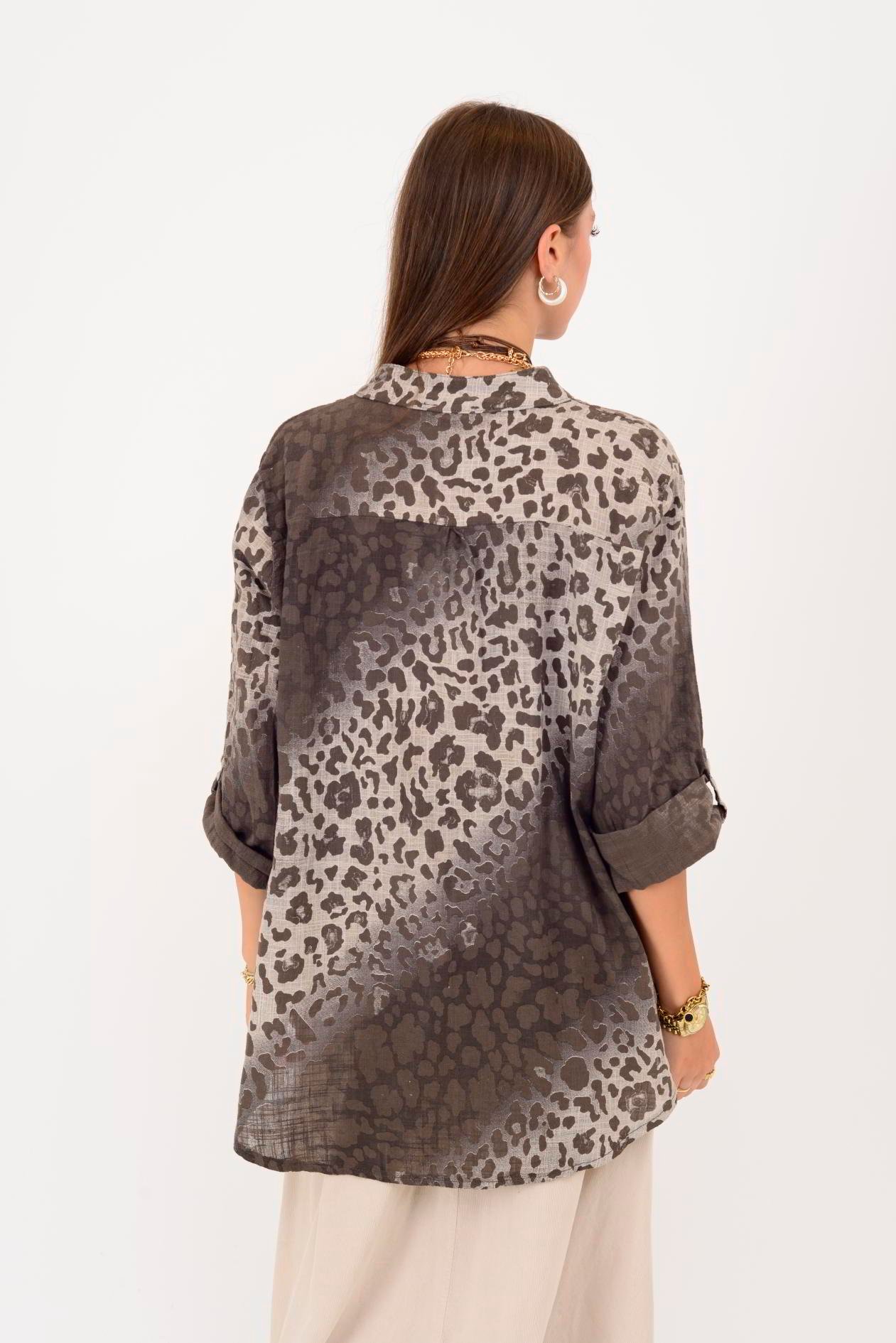 22045-4 BATİK LEOPAR DESEN HAKİM YAKA GÖMLEK (25Y.T.GML.00007-005)