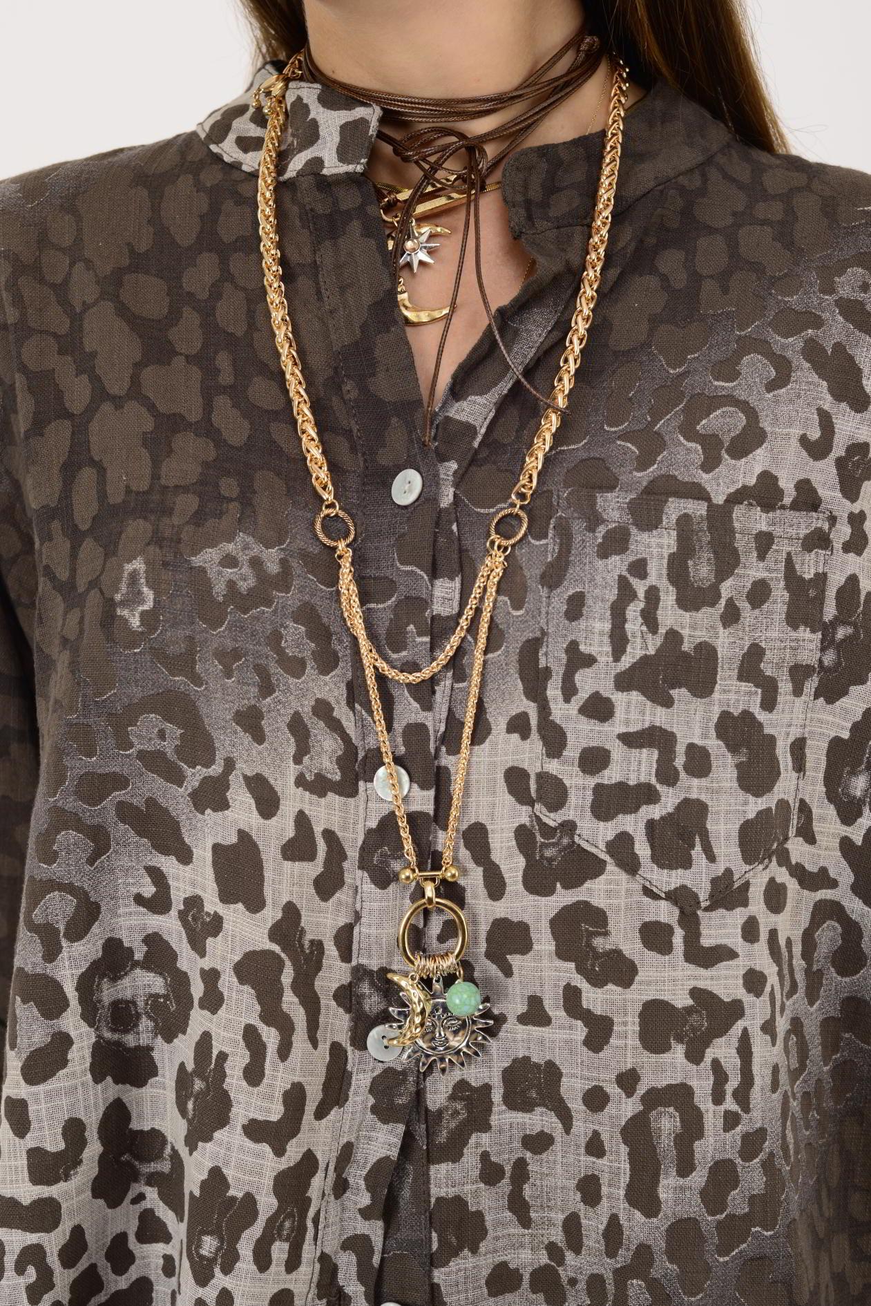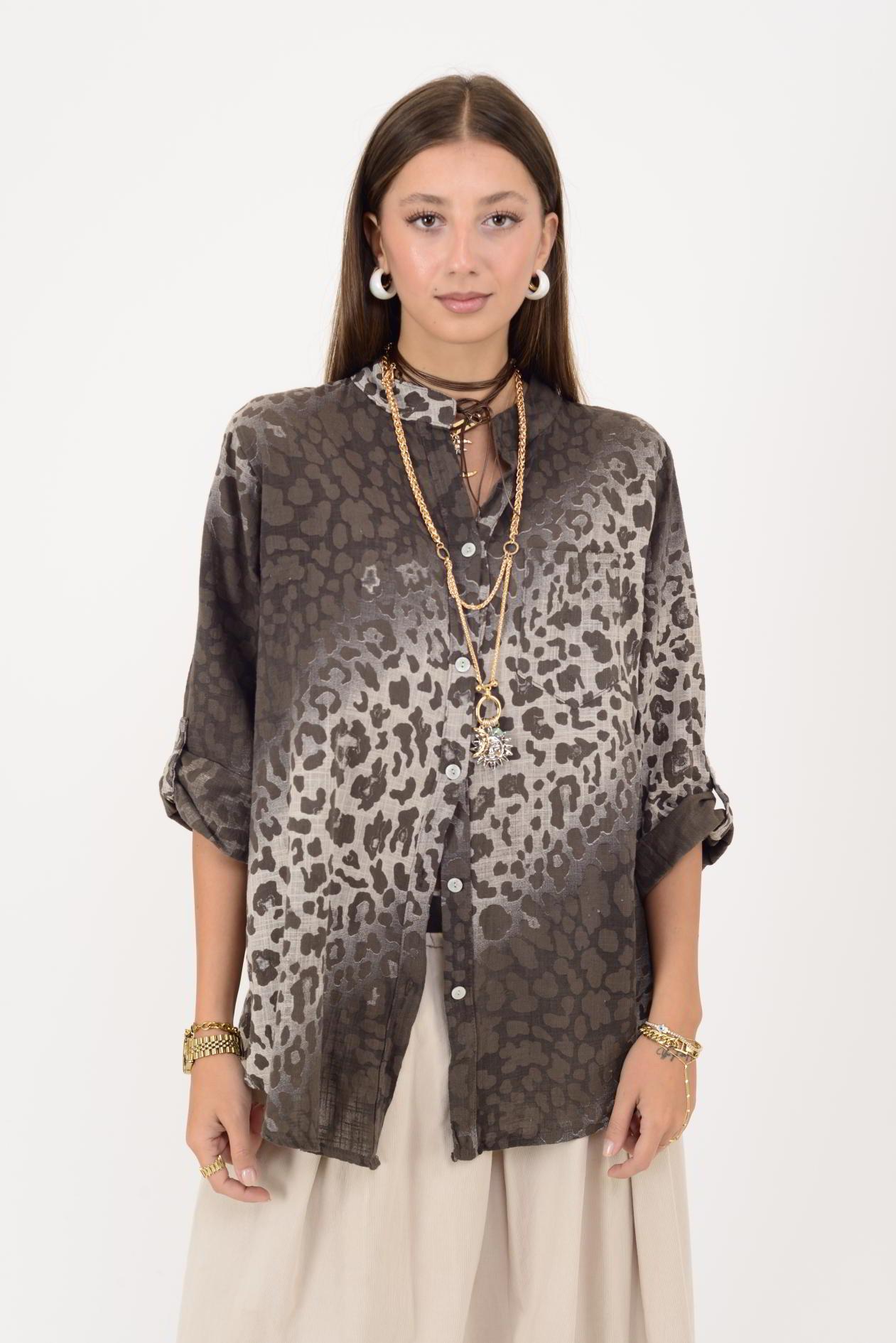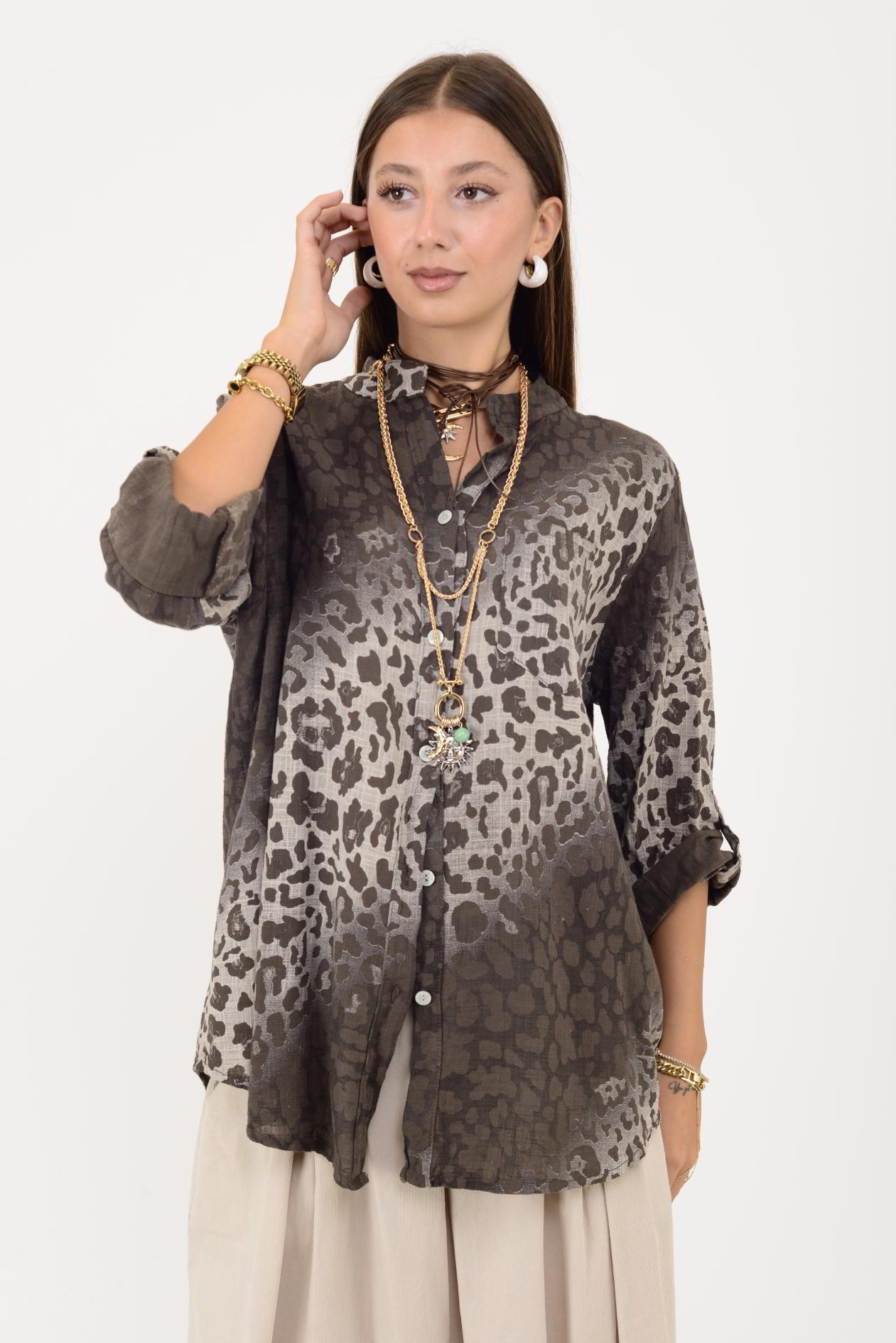 22045-4 BATİK LEOPAR DESEN HAKİM YAKA GÖMLEK (25Y.T.GML.00007-005)