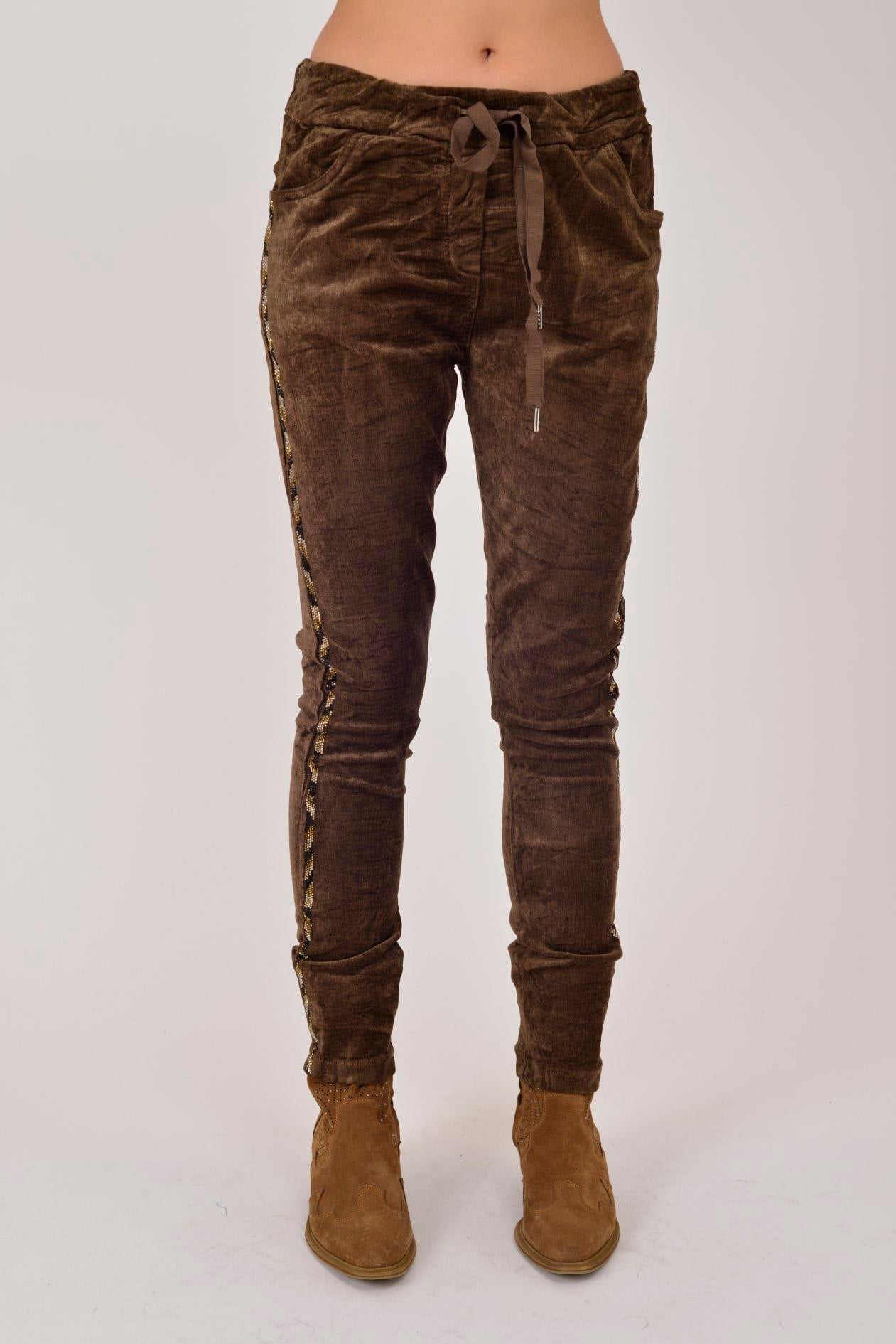 6175 TAŞ ŞERİT DETAYLI FİTİLLİ KADİFE PANTOLON (25K.T.PNT.00115-005)