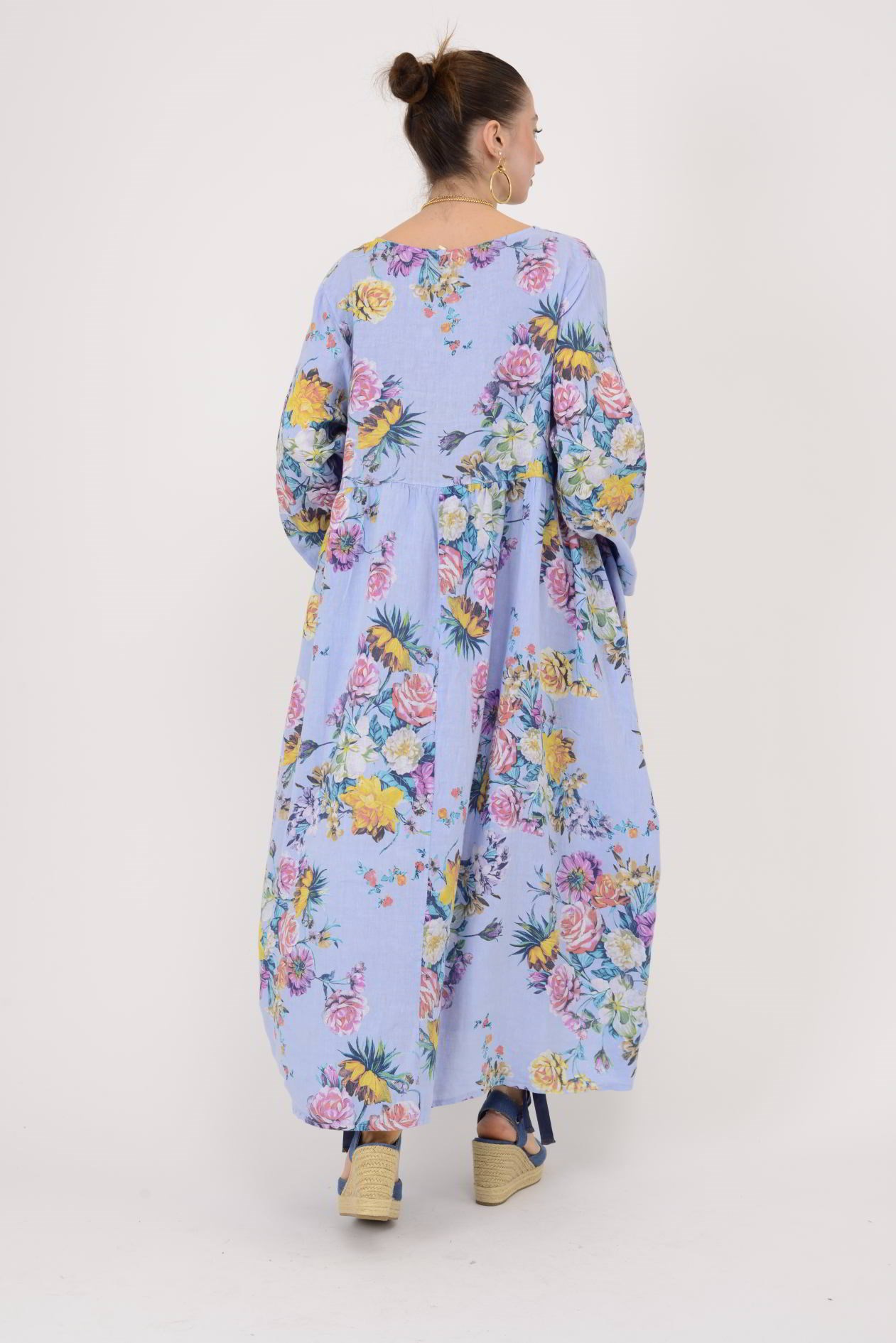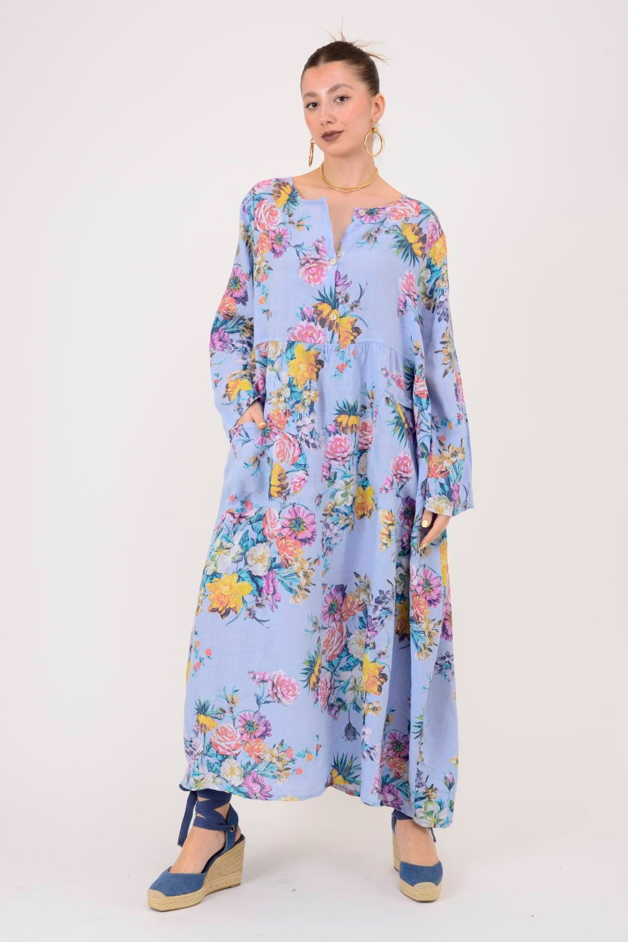 23-10 LOVA SPRING ÇİÇEK DESENLİ ÜÇ DÜĞMELİ KETEN ELBİSE (26Y.T.ELB.00062-028)