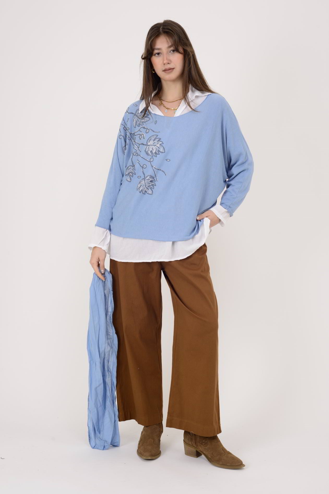 23098 TAŞ İŞLEMELİ 2'Lİ TRİKO BLUZ (26Y.T.BLZ.00035-028)
