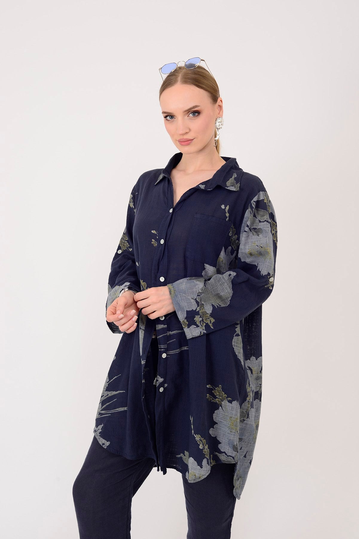 Rahat kesimiyle gün boyu konfor sunan bu gömlek tunik, zamansız ve sade şıklığıyla öne çıkar. İster tek başına elbise olarak ister pantolonlarla tunik formunda kullanabileceğiniz çok yönlü bir parçadır.