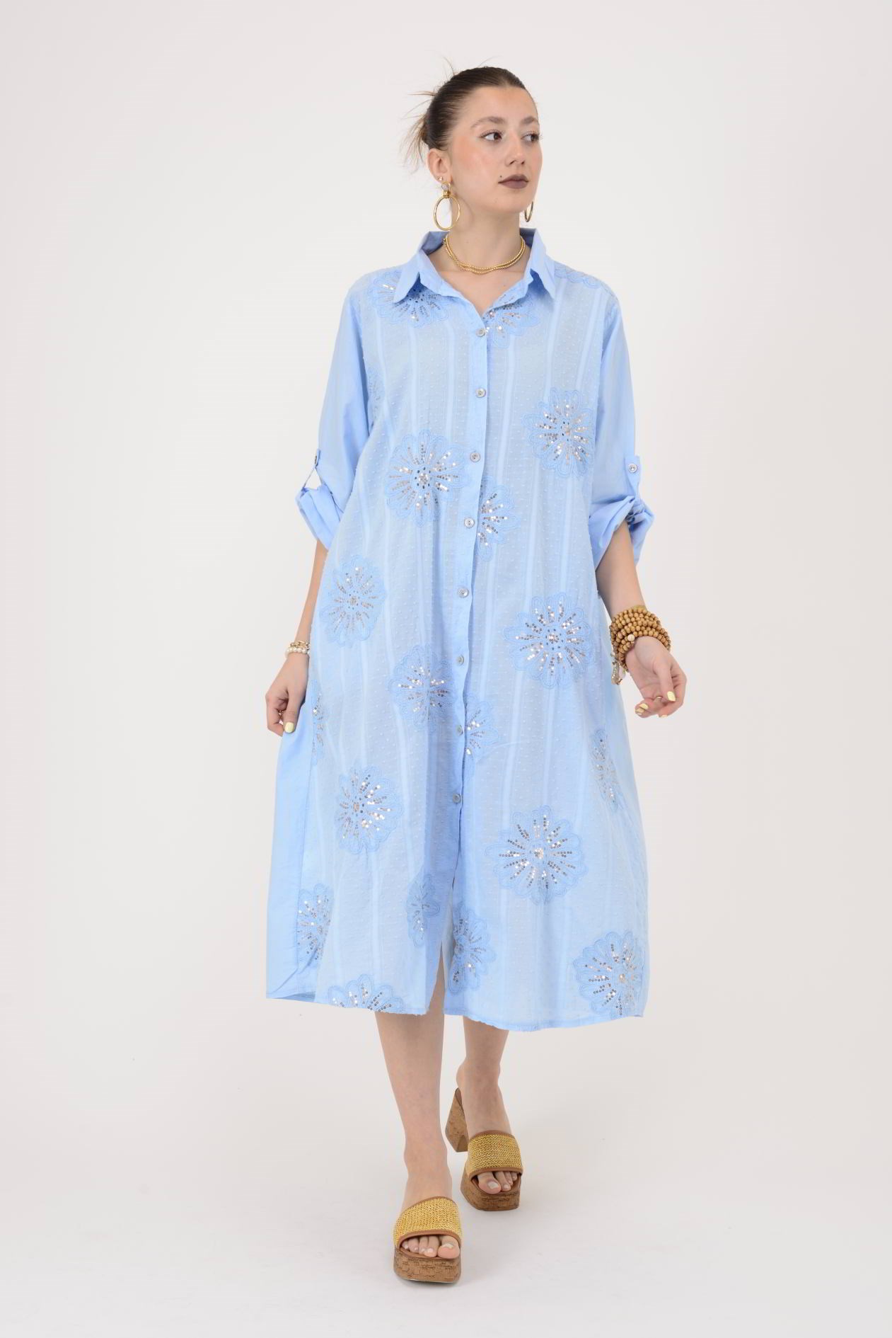 25086 KRİZANTEM ÇİÇEK İŞLEMELİ PAYET DETAYLI GÖMLEK ELBİSE (25Y.T.ELB.00401-009)