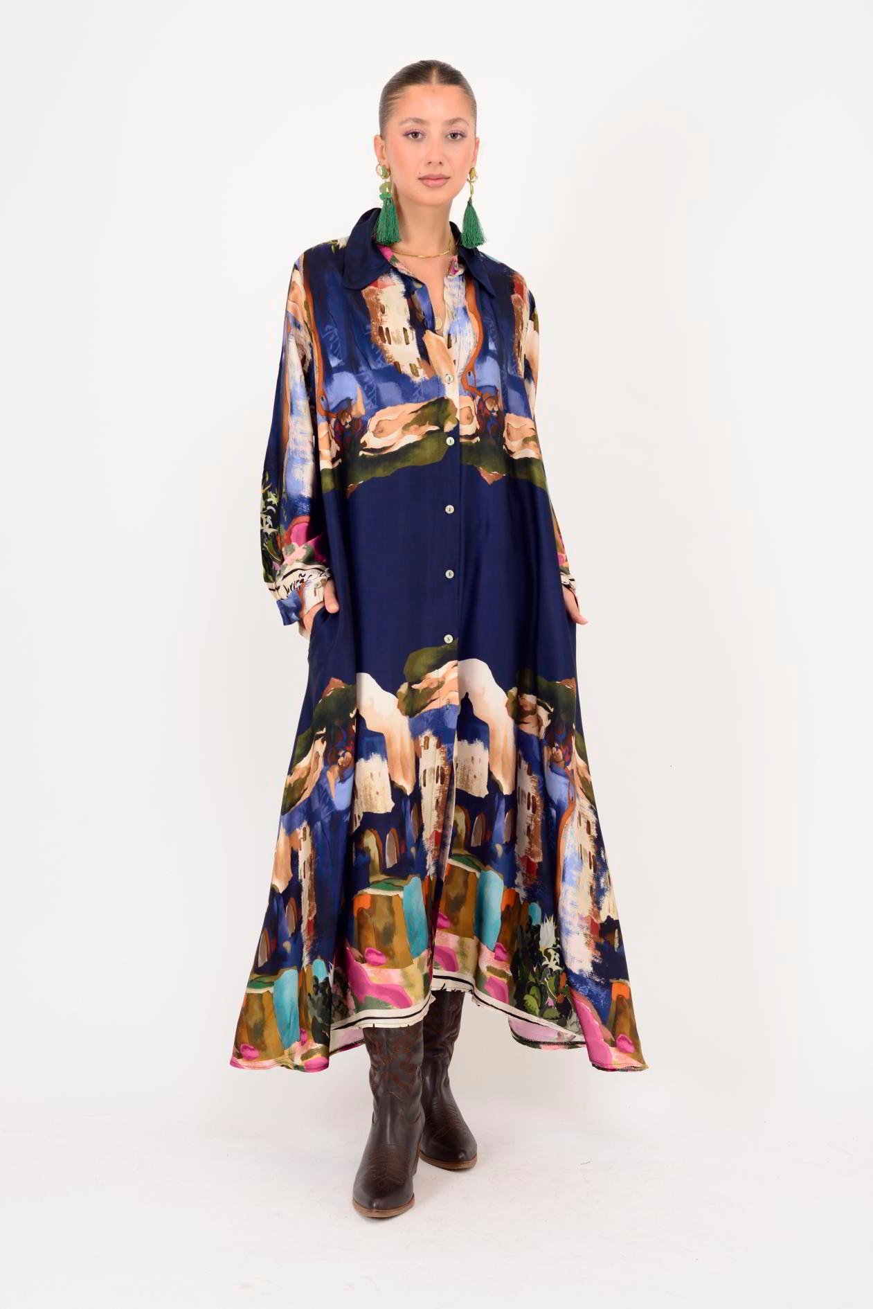 2743 LOVA SATEN GÖMLEK ELBİSE (25Y.T.ELB.00461-004)