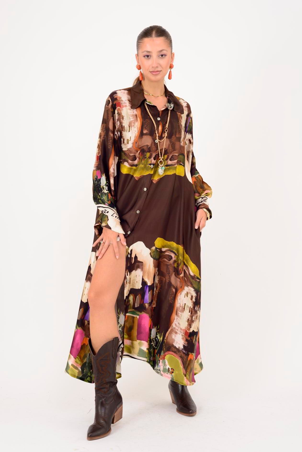 2743 LOVA SATEN GÖMLEK ELBİSE (25Y.T.ELB.00461-005)