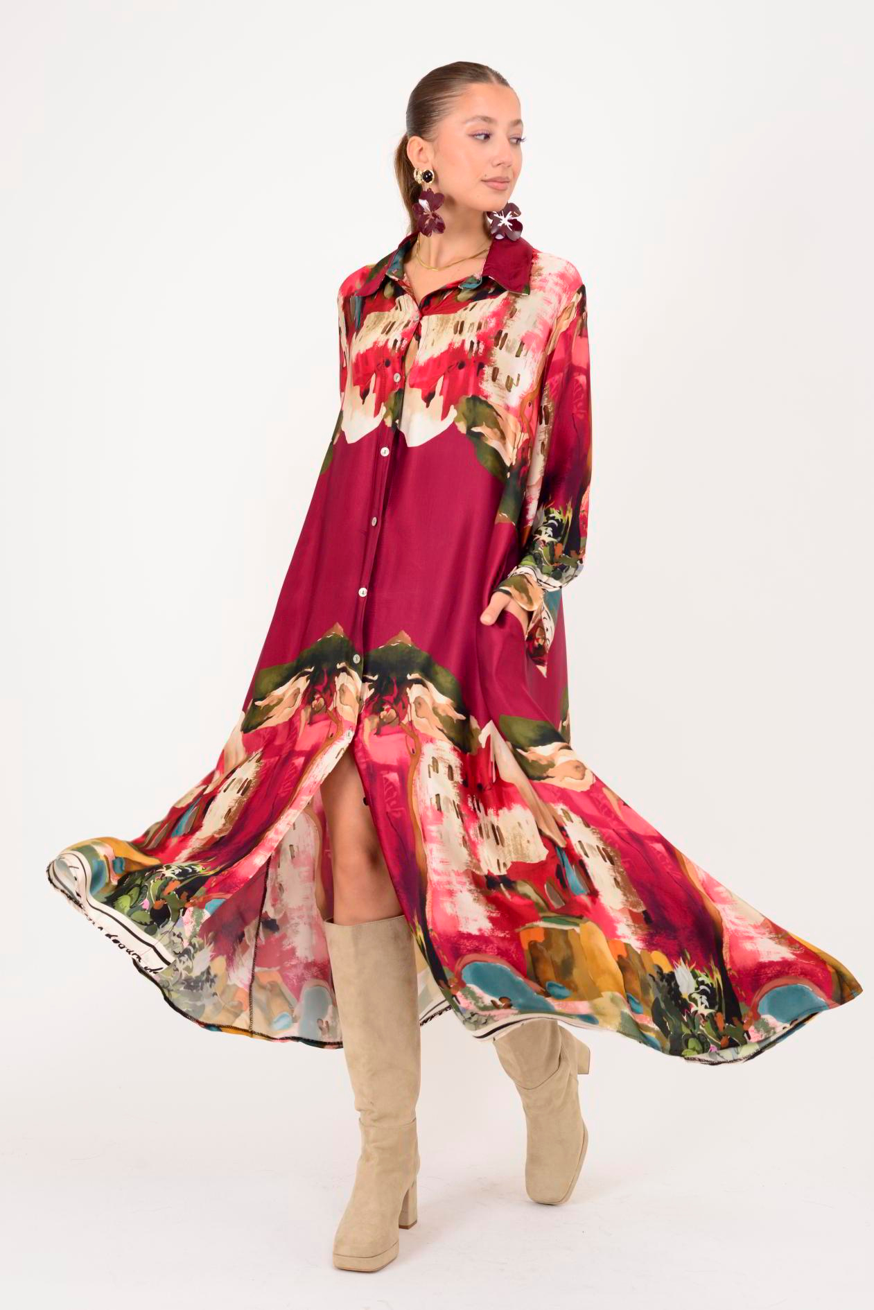 2743 LOVA SATEN GÖMLEK ELBİSE (25Y.T.ELB.00461-018)
