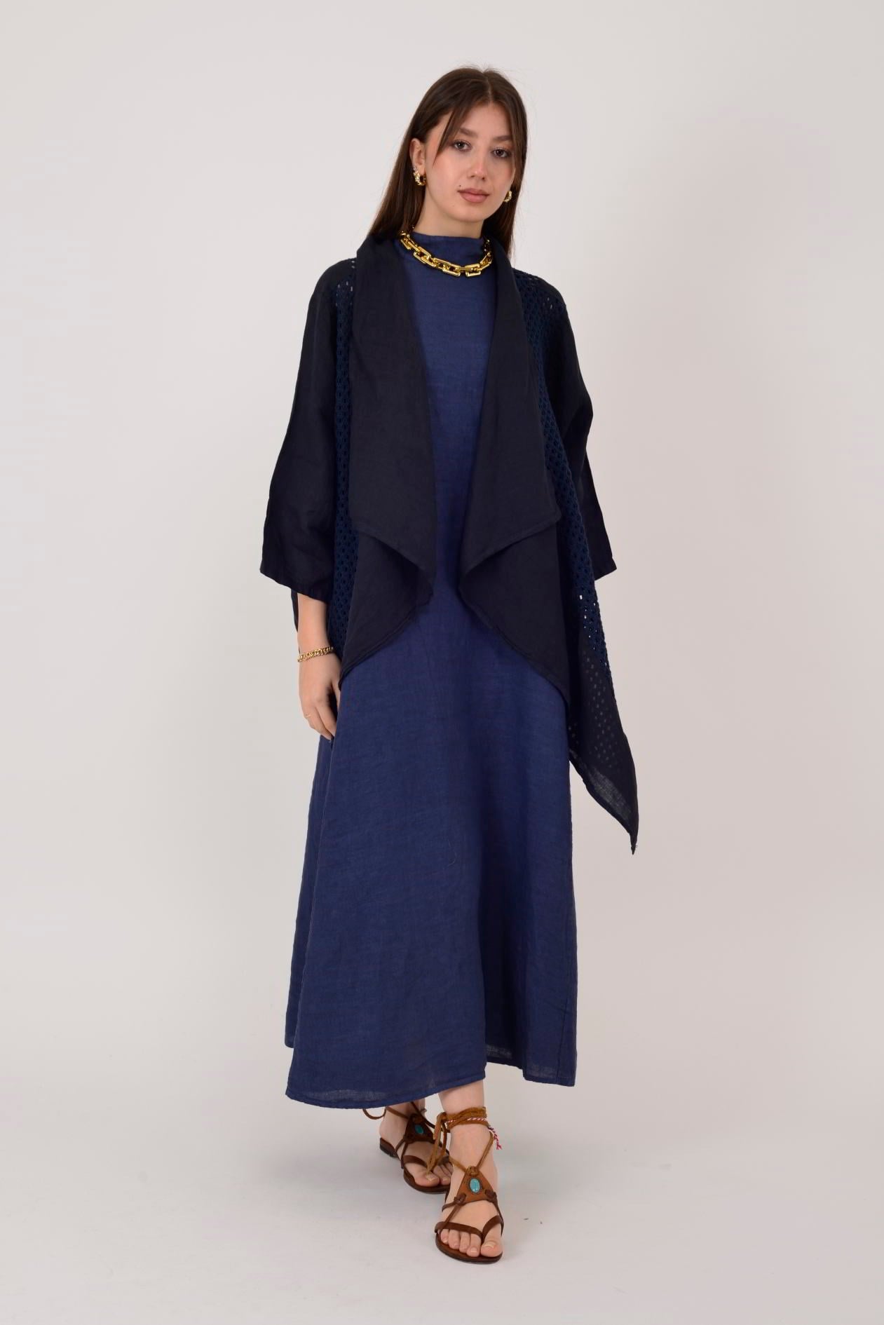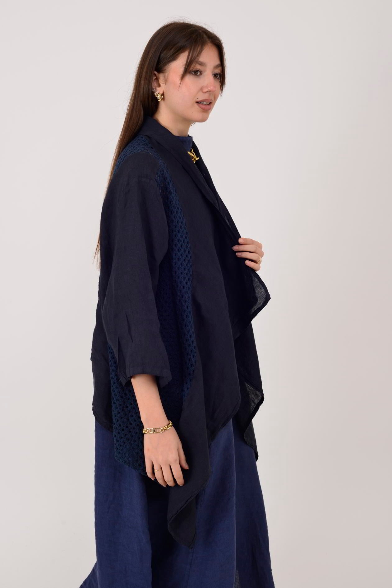 5283 AJURLU ASİMETRİK KETEN CEKET (26Y.T.CKT.00015-004)