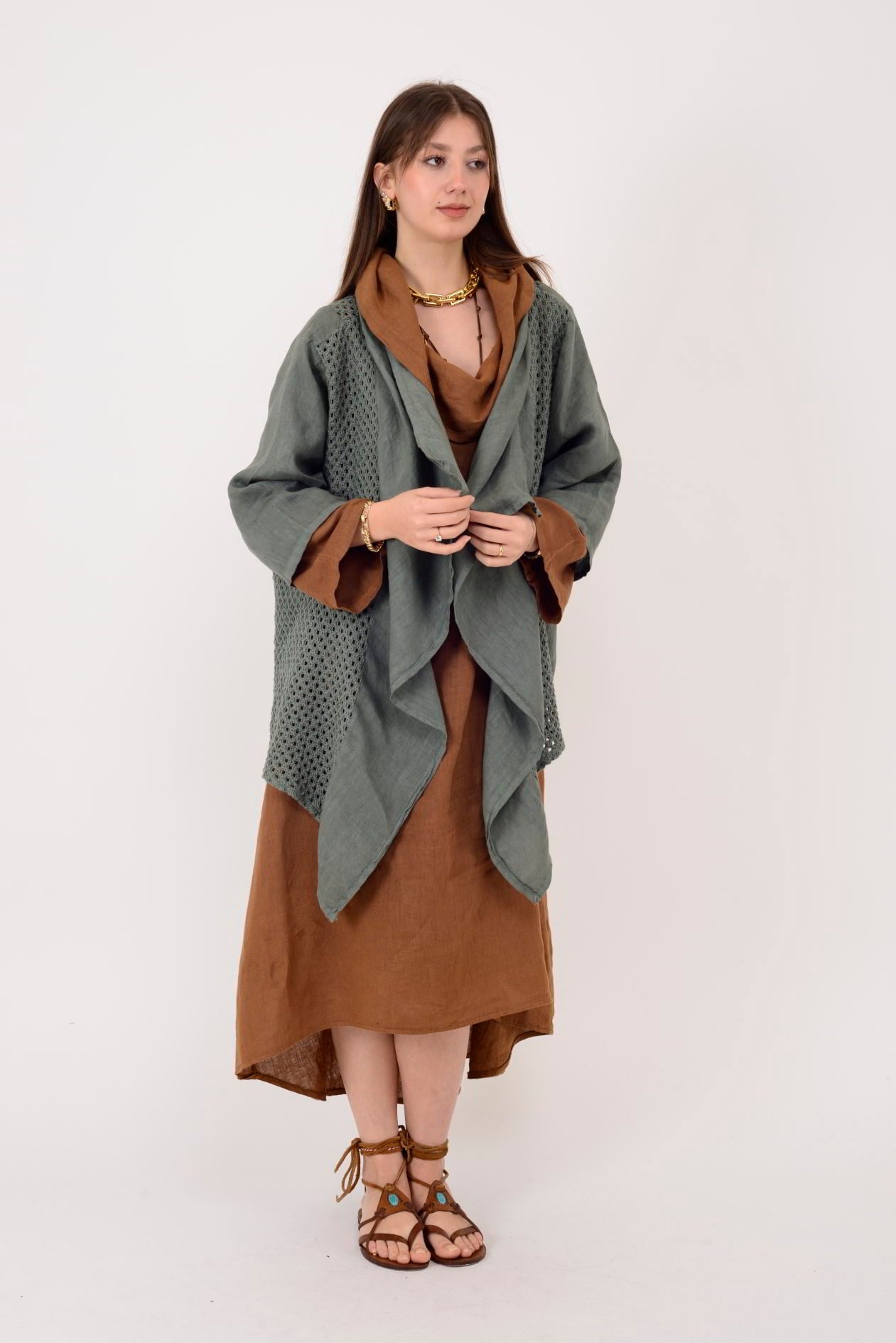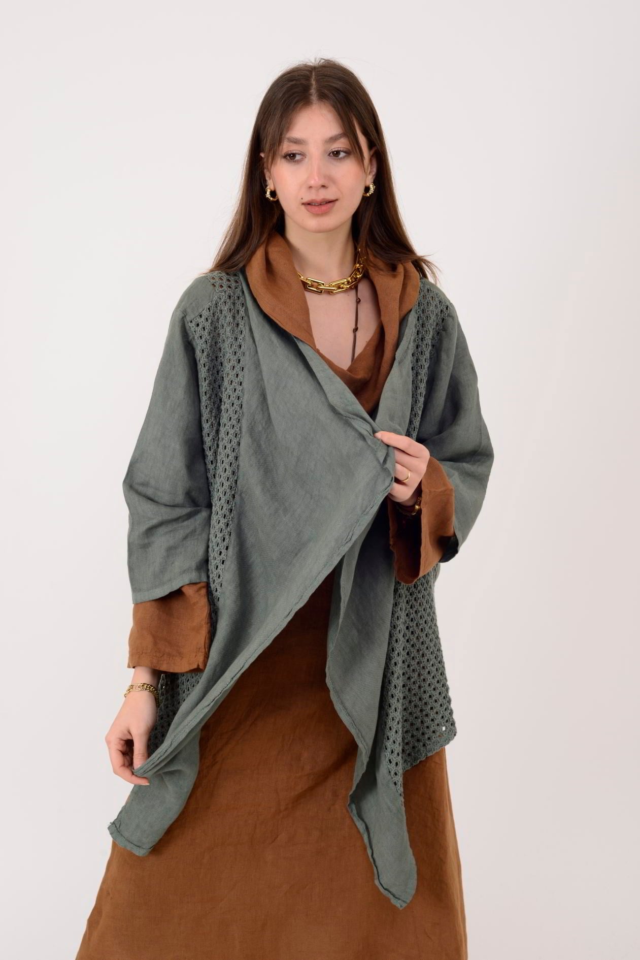 5283 AJURLU ASİMETRİK KETEN CEKET (26Y.T.CKT.00015-020)