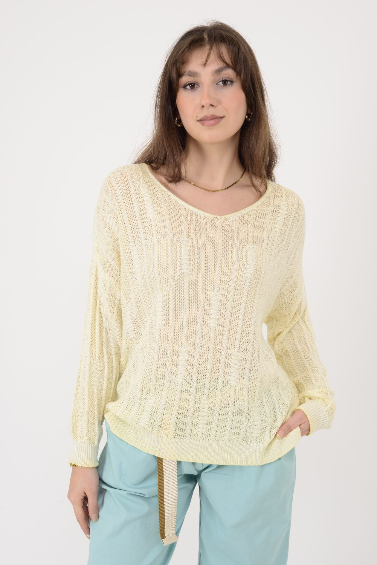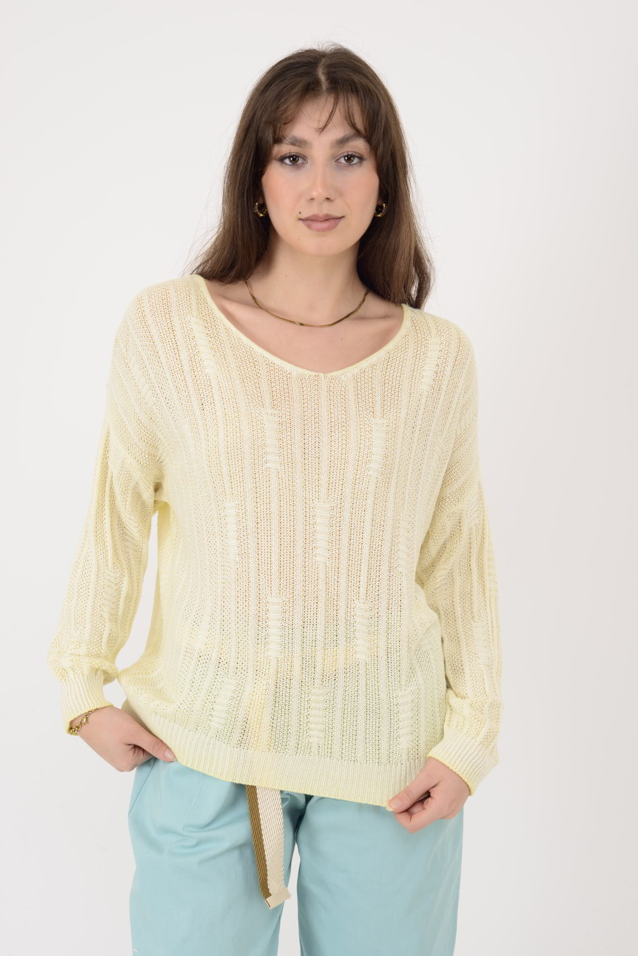 6046 V YAKA MERSERİZE BLUZ (25K.T.BLZ.00417-008)