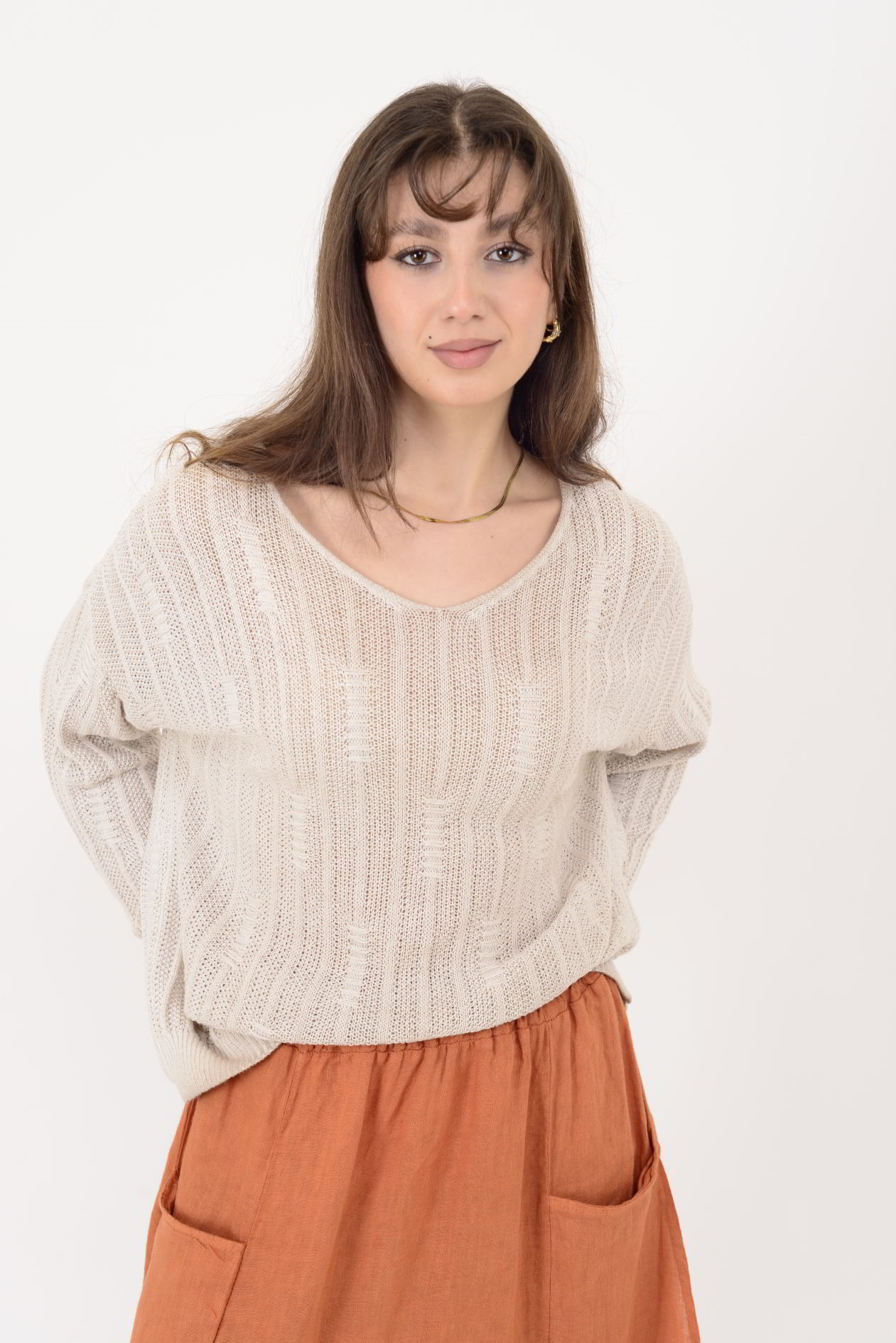 6046 V YAKA MERSERİZE BLUZ (25K.T.BLZ.00417-016)