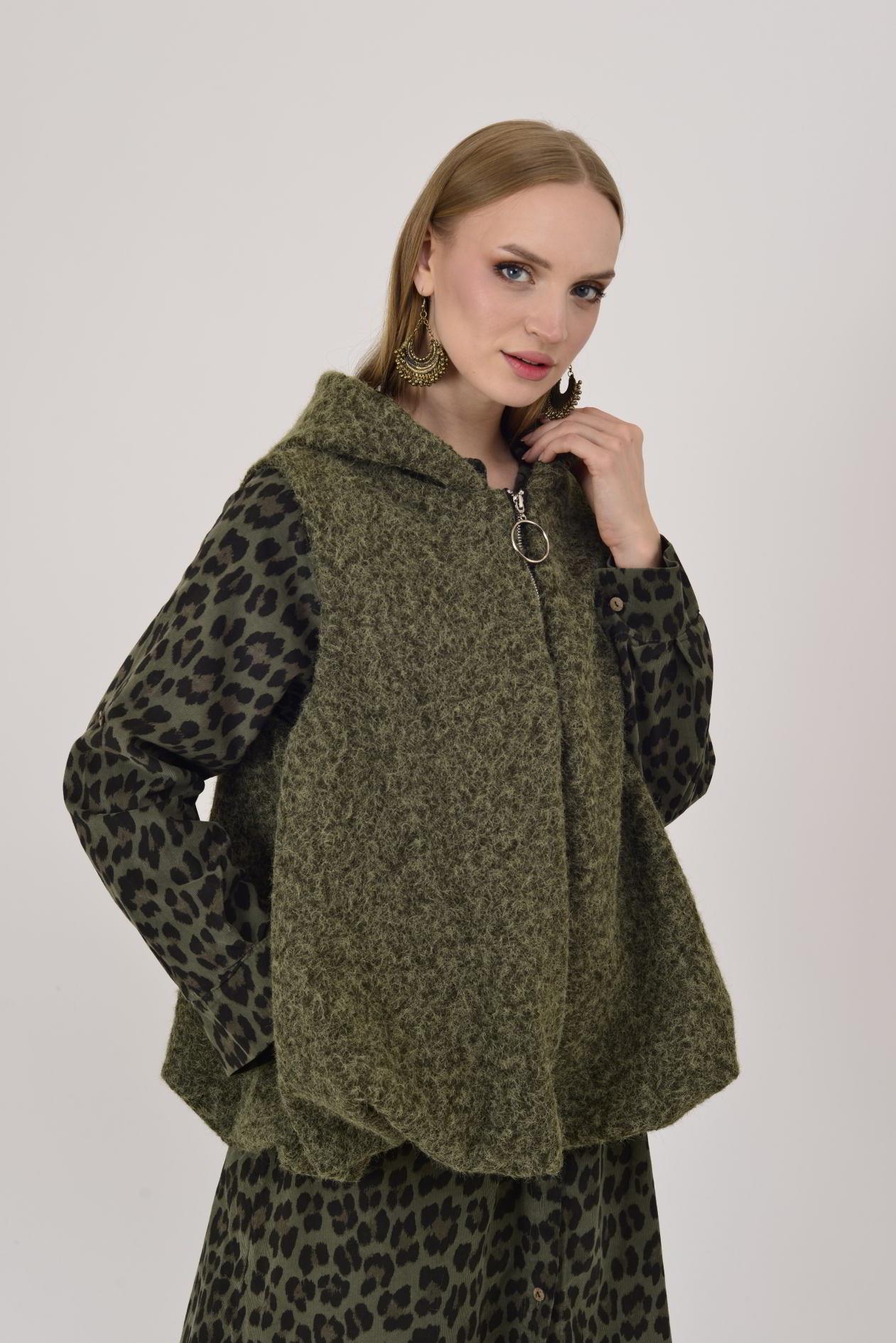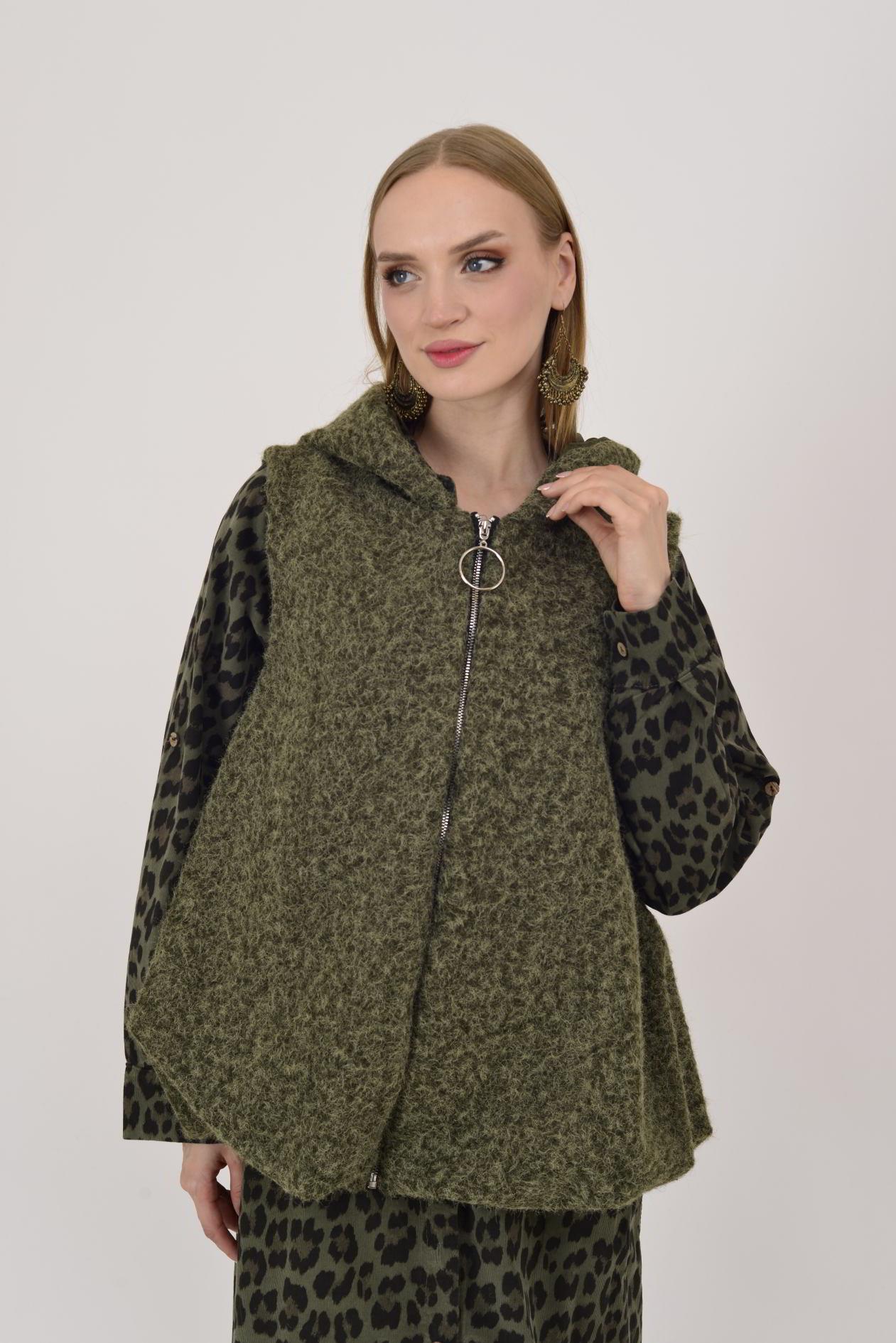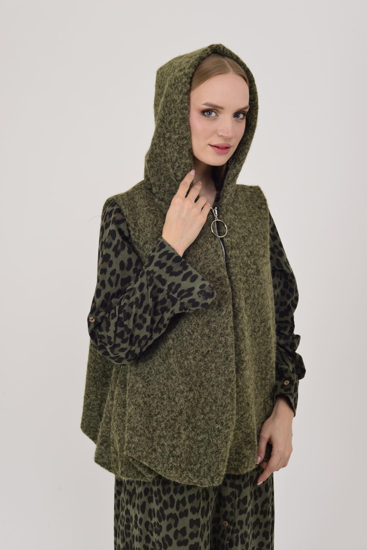 60909 KAPÜŞON DETAYLI KEÇE YELEK (25K.T.YLK.00026-020)