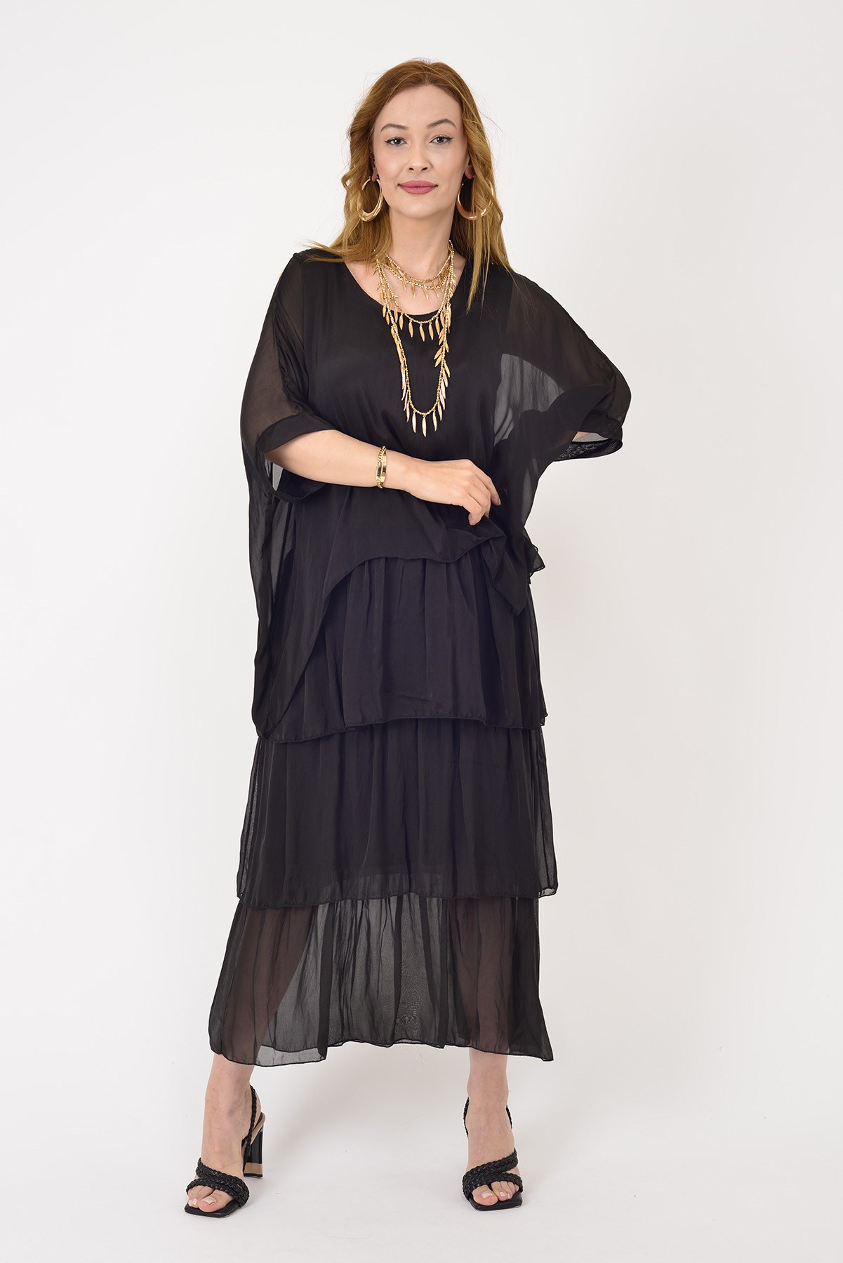 6105 PRATO YARASA KOL KAT KAT İPEK ELBİSE (22Y.T.ELB.00258-001)