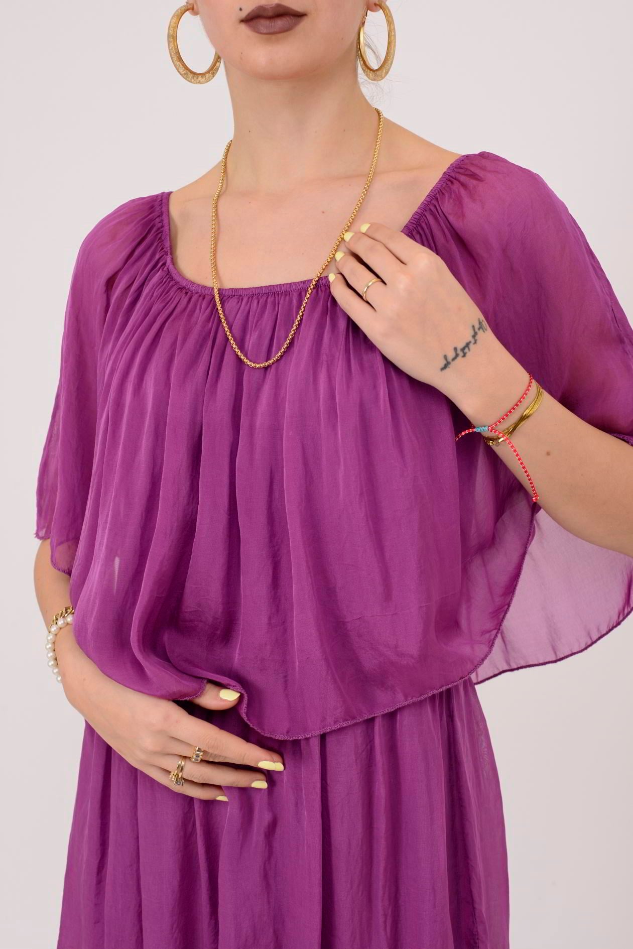 6109 MADONNA YAKA KAT KAT İPEK ELBİSE (22Y.T.ELB.00253-LYL)
