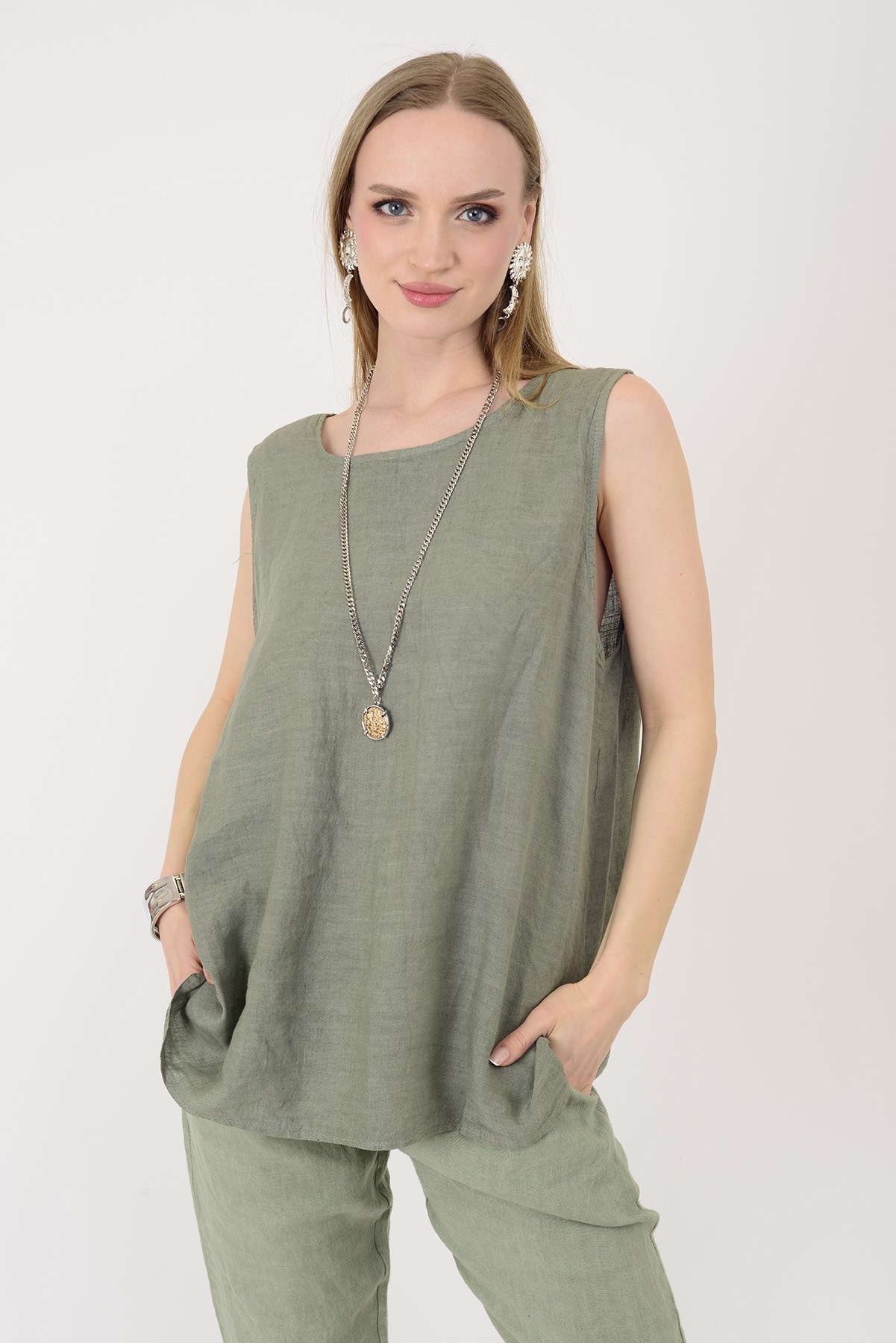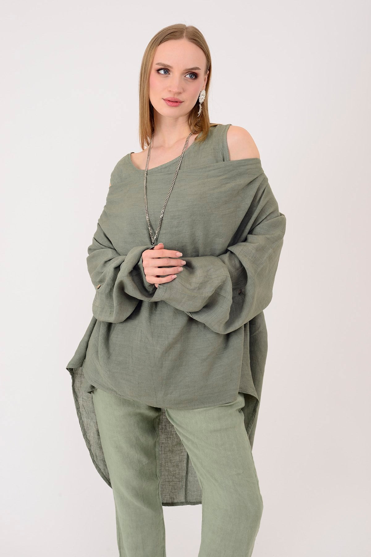 61863 DEGAJE YAKA 2'Lİ KETEN BLUZ (26Y.T.BLZ.00078-020)