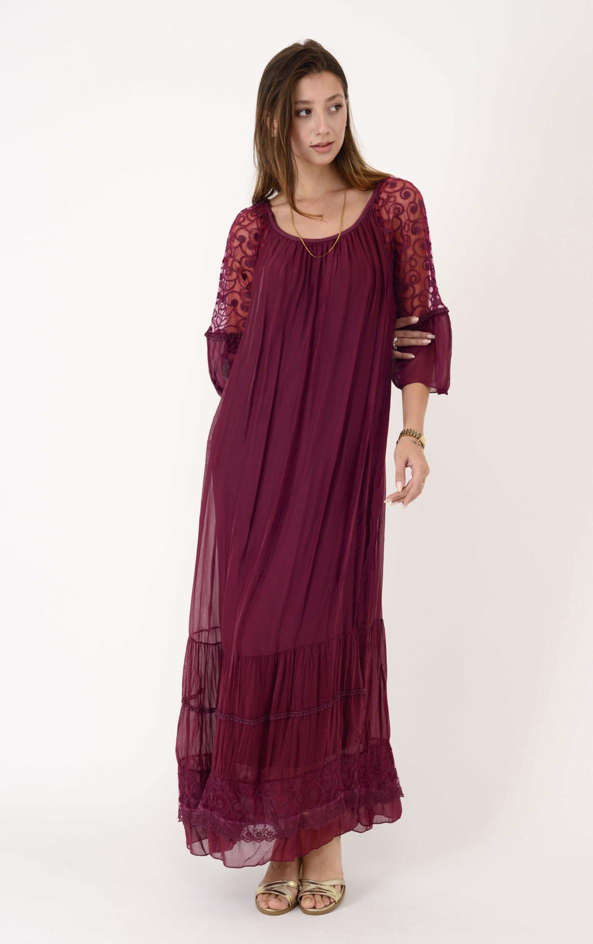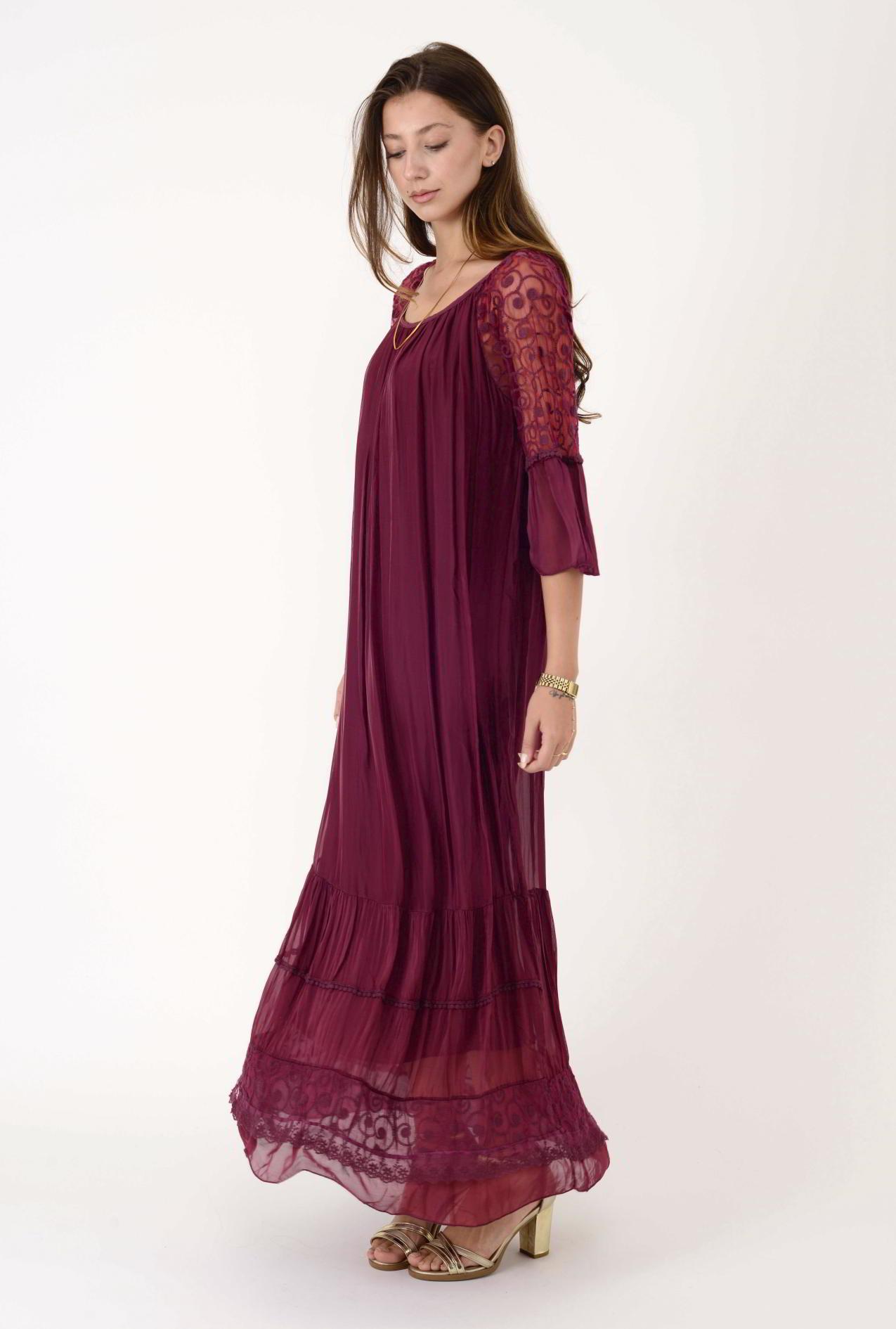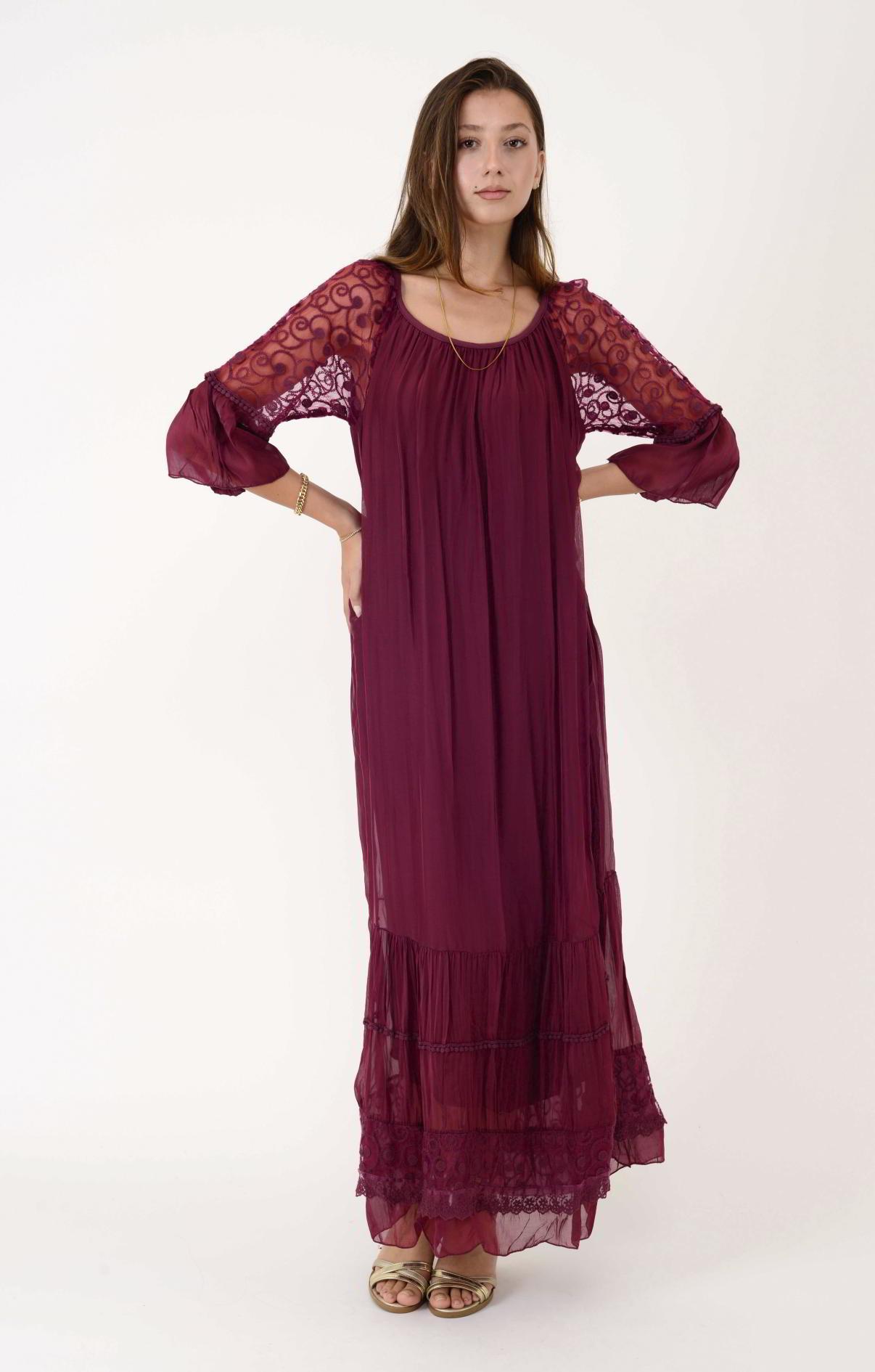62076 DANTEL DETAY UZUN İPEK ELBİSE (19Y.T.ELB.0099-018)