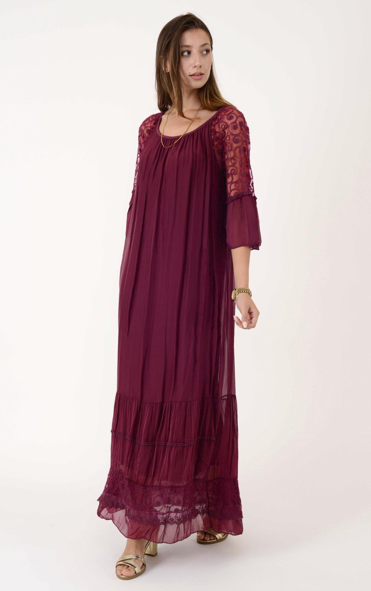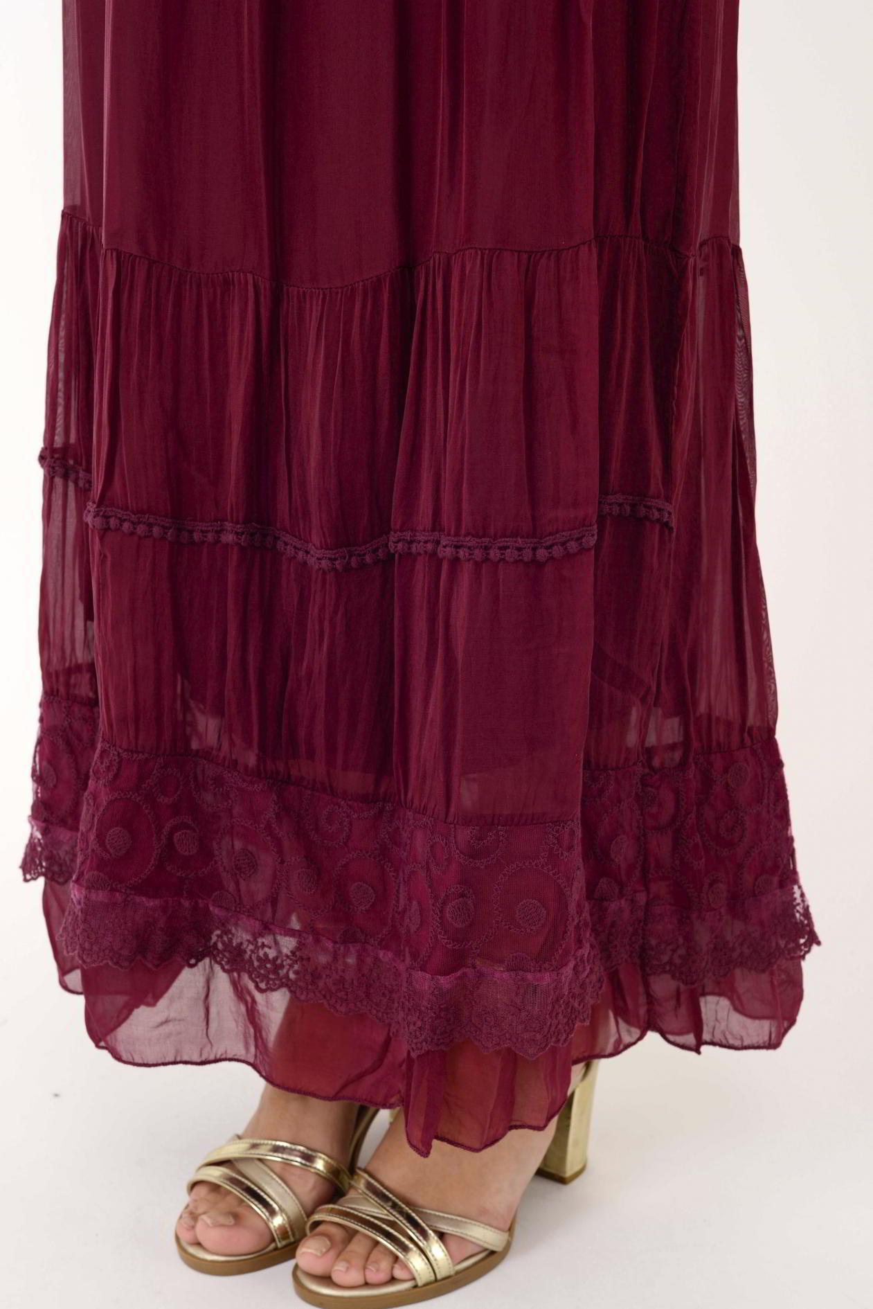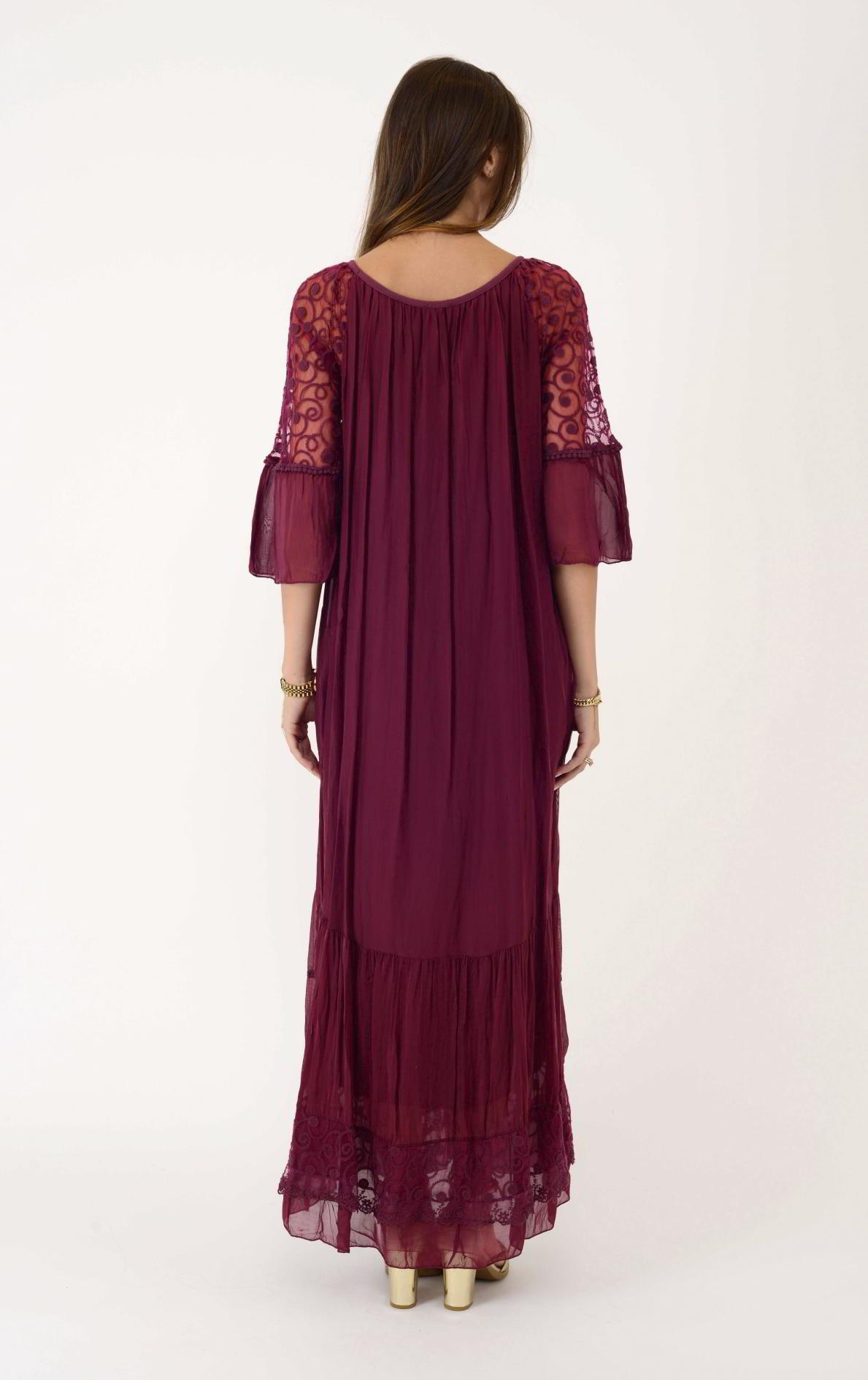 62076 DANTEL DETAY UZUN İPEK ELBİSE (19Y.T.ELB.0099-018)