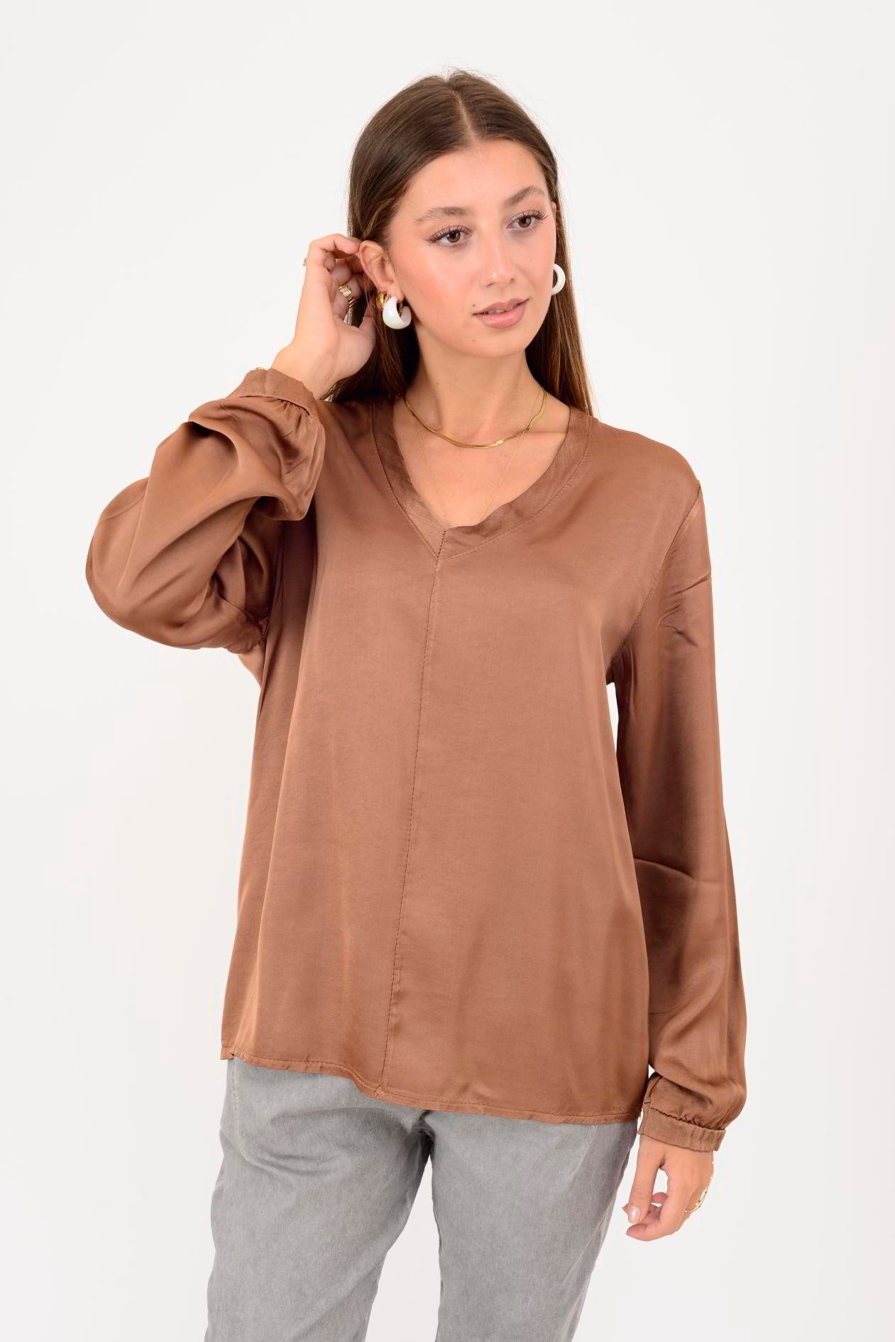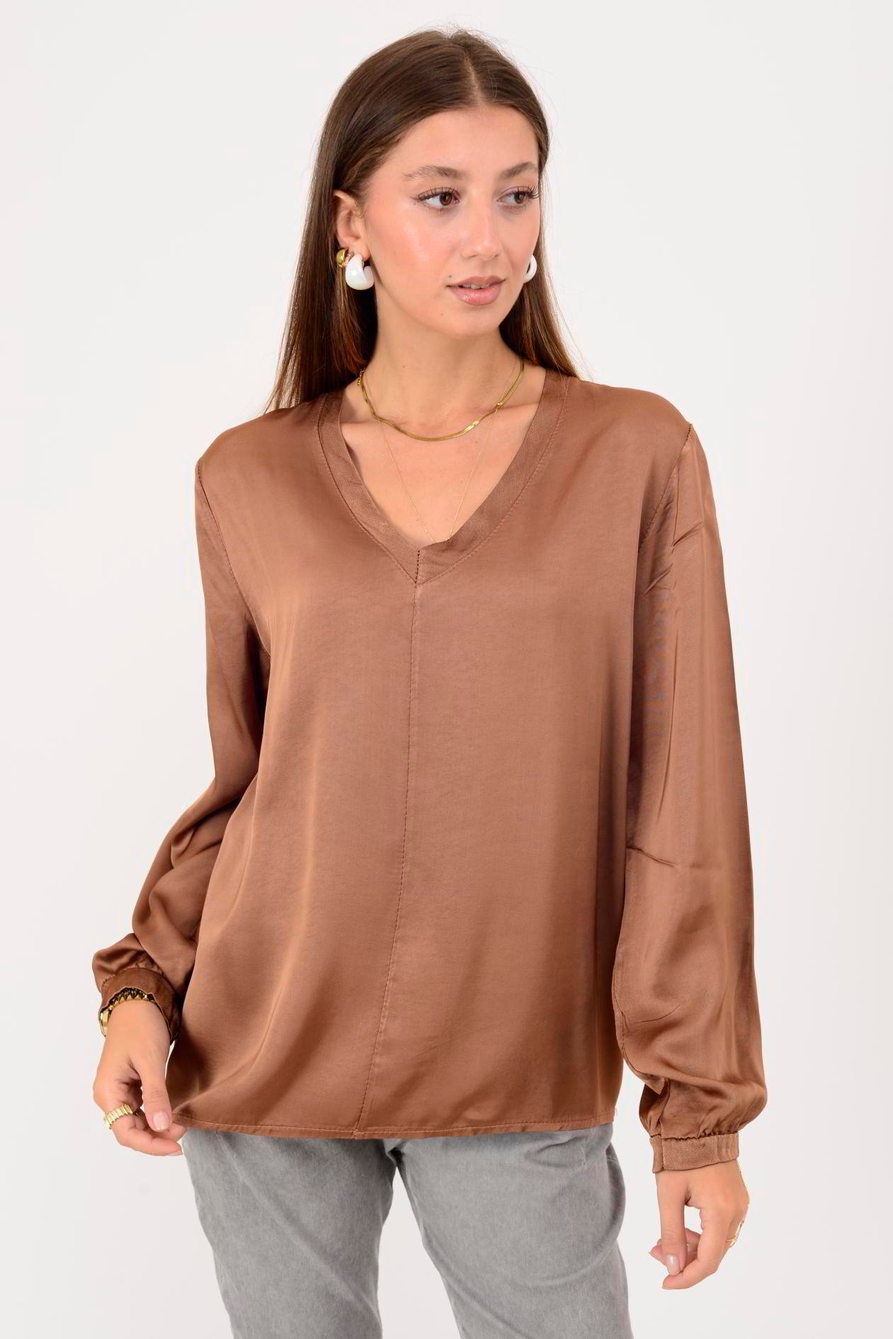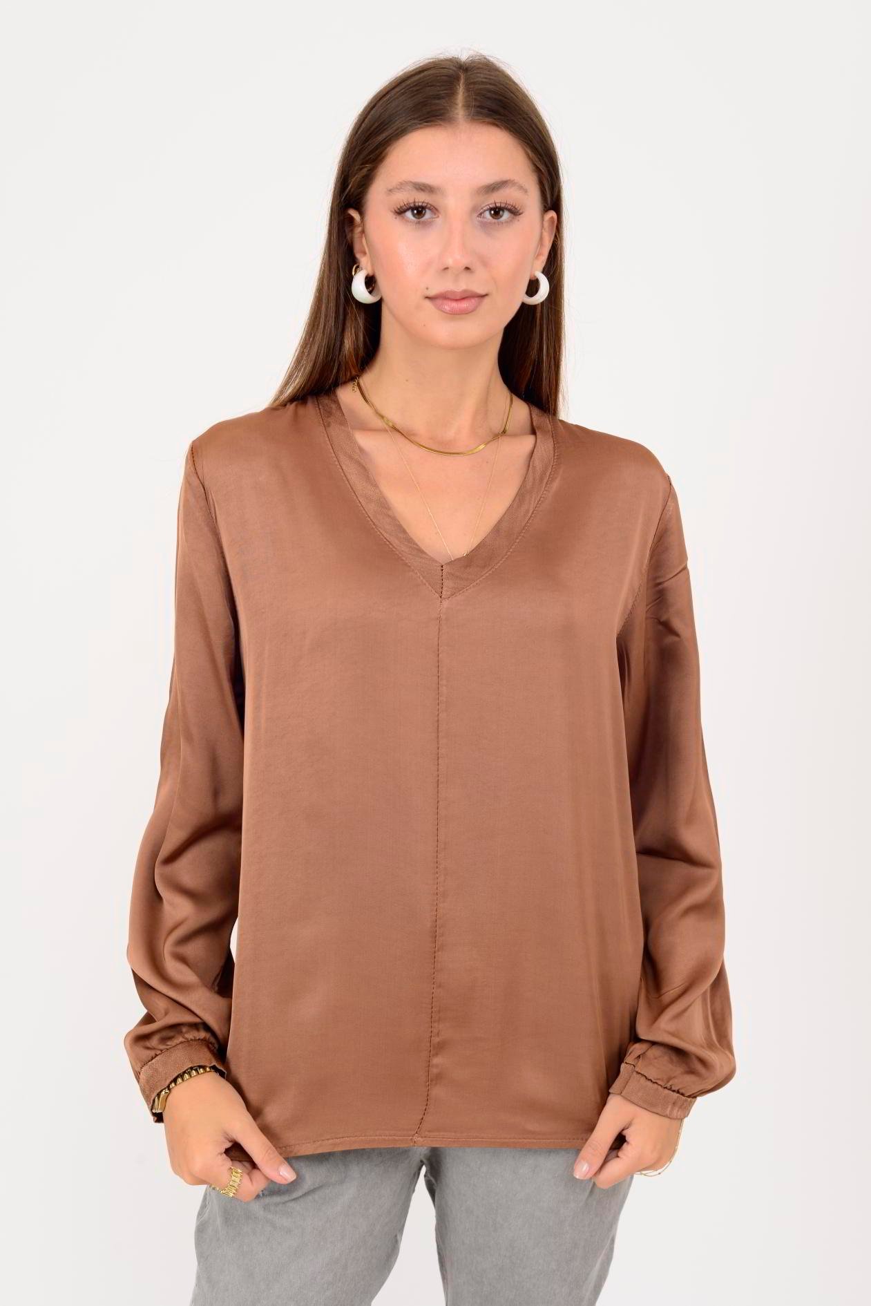 65034 UZUN KOLLU SATEN BLUZ (25Y.T.BLZ.00343-BR)