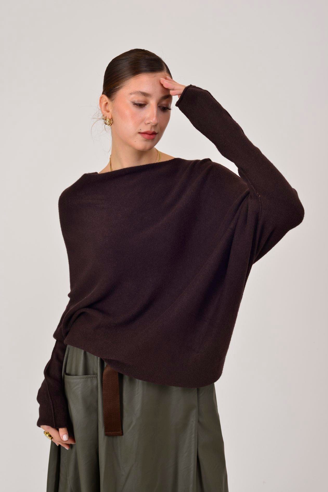 7109 TEK OMUZ ASİMETRİK KESİM TRİKO BLUZ (25K.T.BLZ.00375-005)