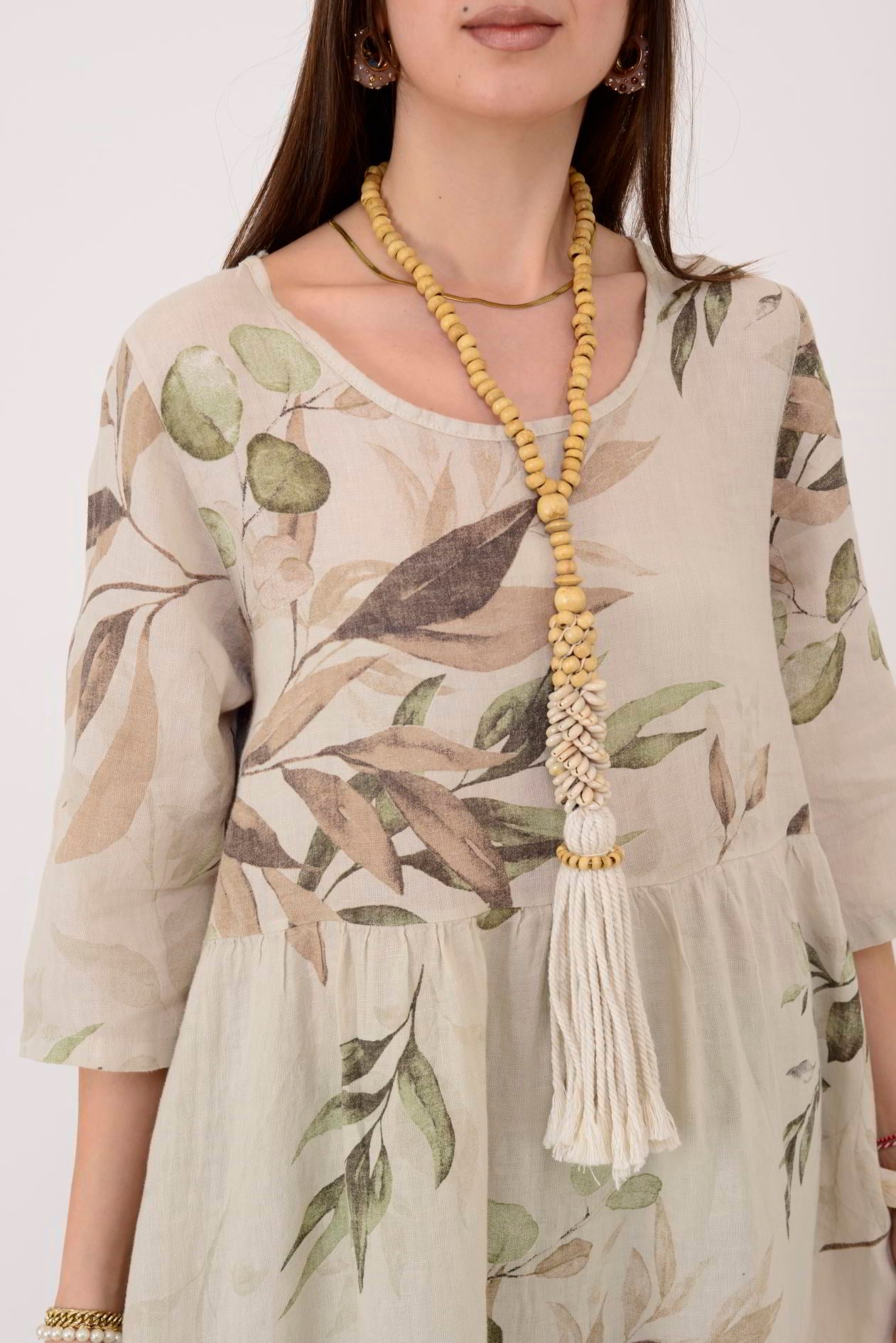 7148 SPRING YAPRAK DESEN KETEN ELBİSE (26Y.T.ELB.00064-016)