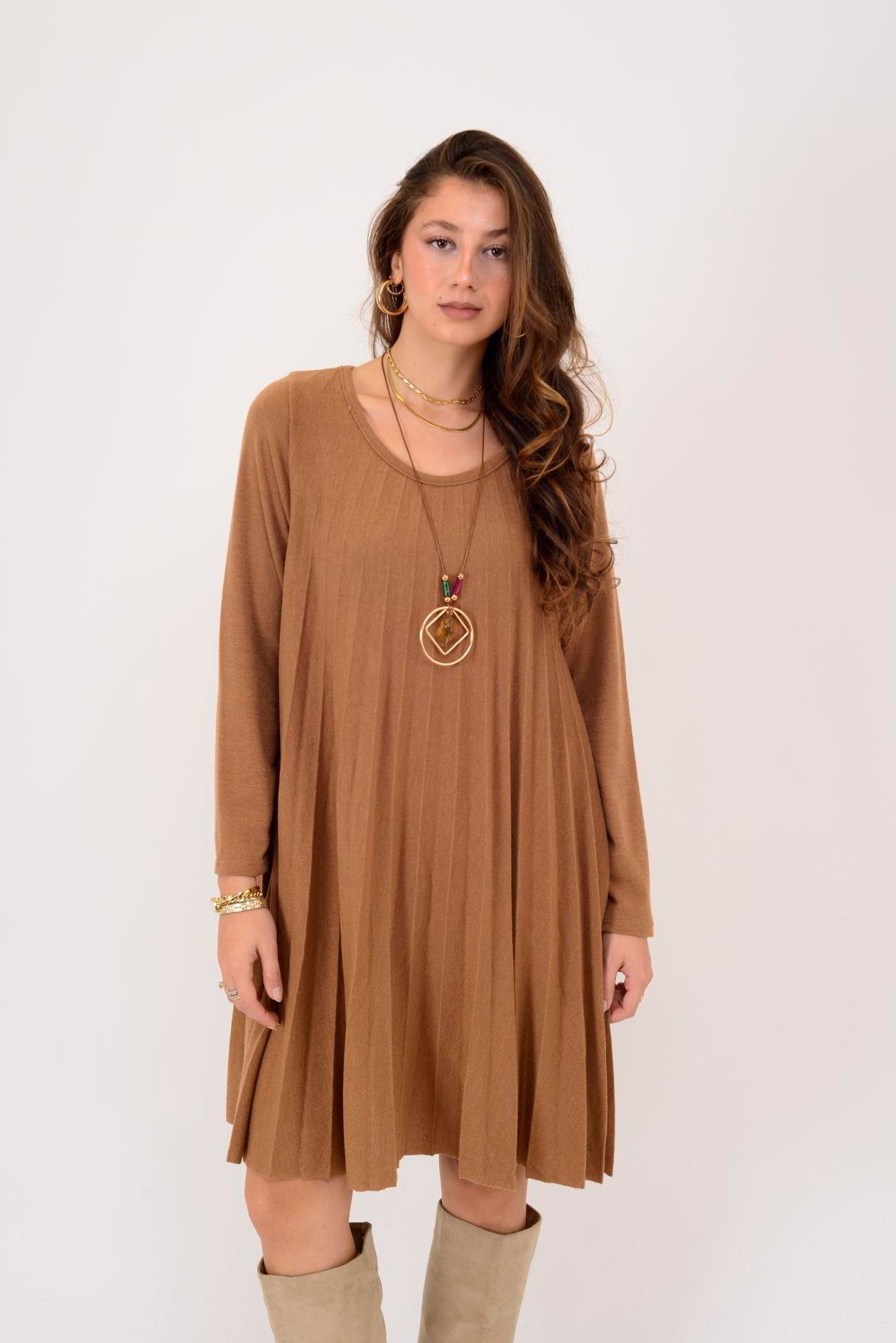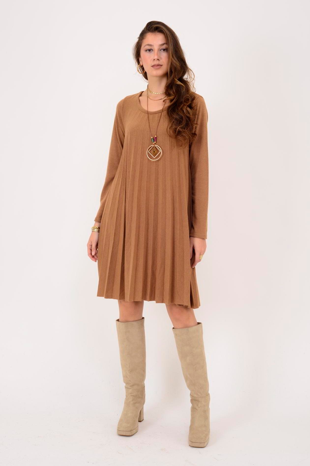 71653 SIENA KOLYE DETAYLI PİLELİ TRİKO ELBİSE (19K.T.ELB.00138-CAP)