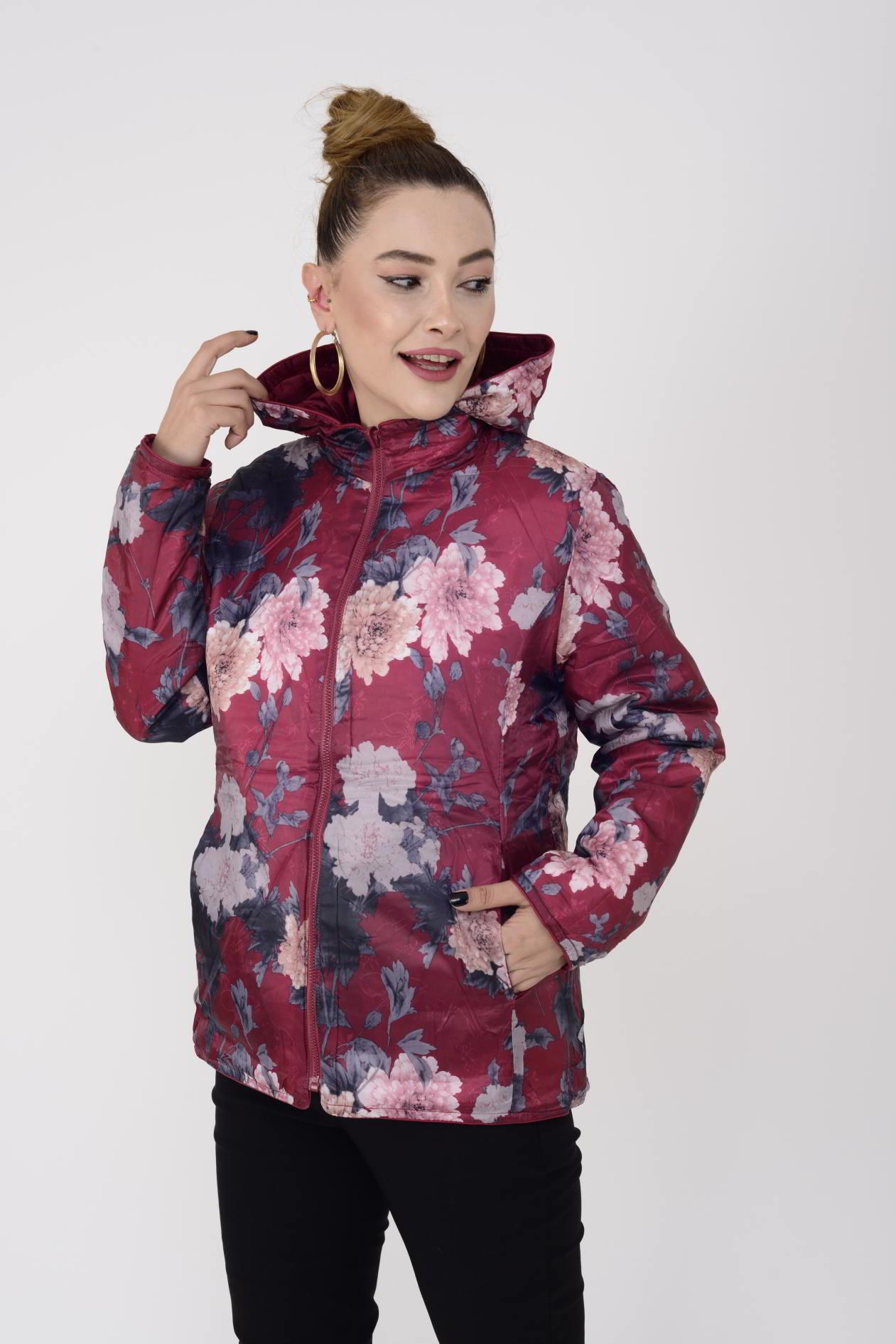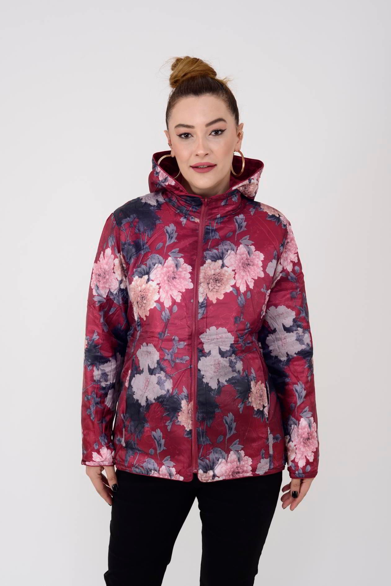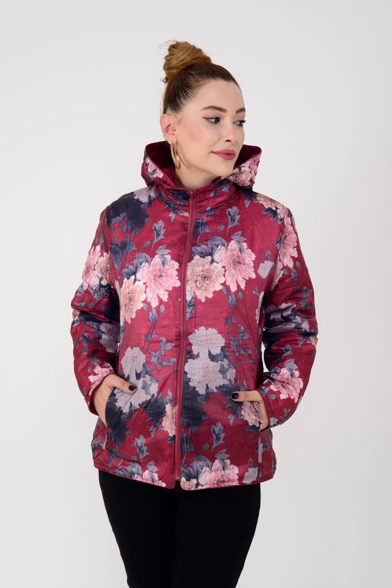 Her iki yüzü de kullanılabilir; çift taraflı tasarımı farklı kombinlerle uyum sağlar. Bir yüzü zarif çiçek desenli astar, diğer yüzü ise şişme mont formundadır. Geniş kalıptır.