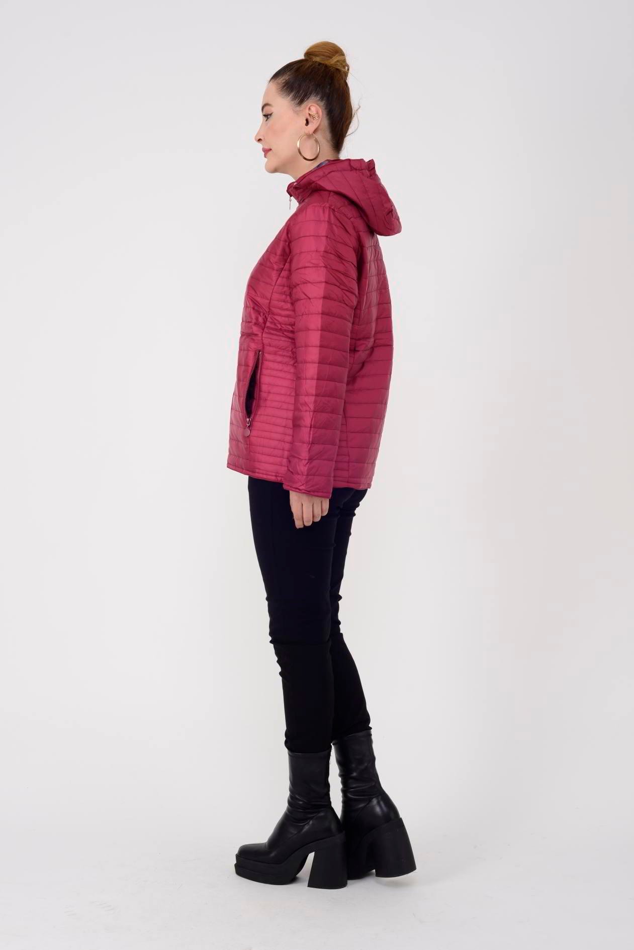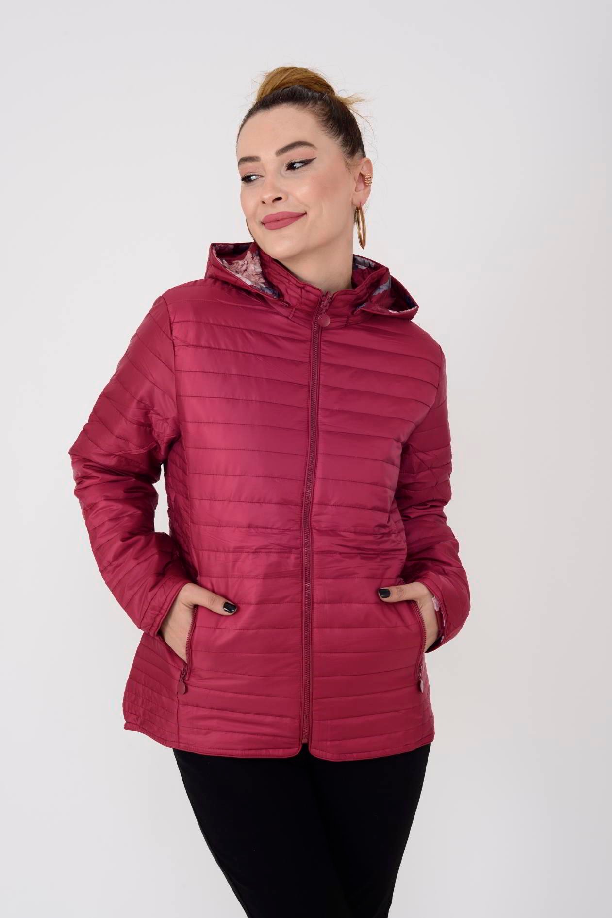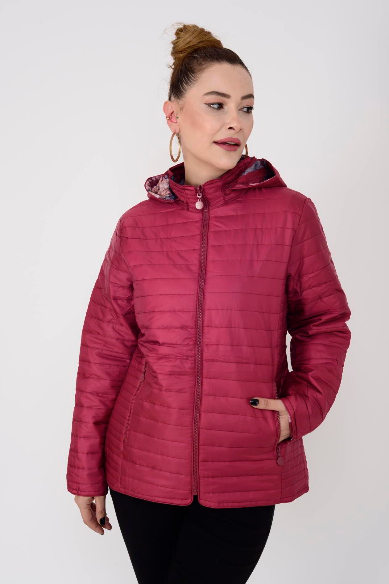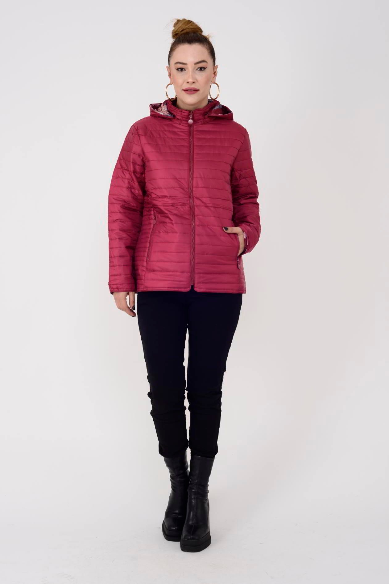 Her iki yüzü de kullanılabilir; çift taraflı tasarımı farklı kombinlerle uyum sağlar. Bir yüzü zarif çiçek desenli astar, diğer yüzü ise şişme mont formundadır. Geniş kalıptır.