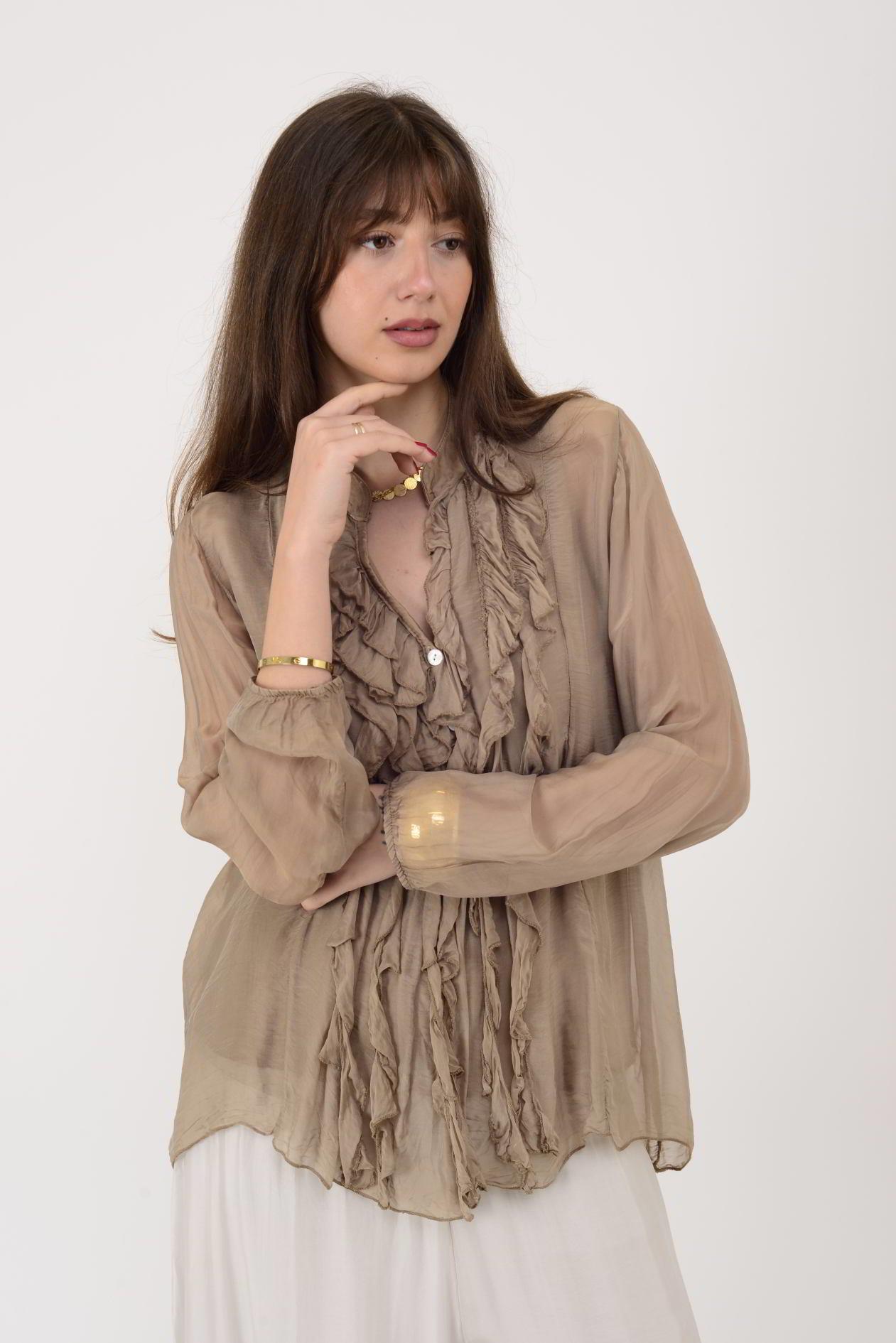 7322 COSTELLO FIRFIR DETAYLI İPEK BLUZ (26Y.T.BLZ.00003-CAP)