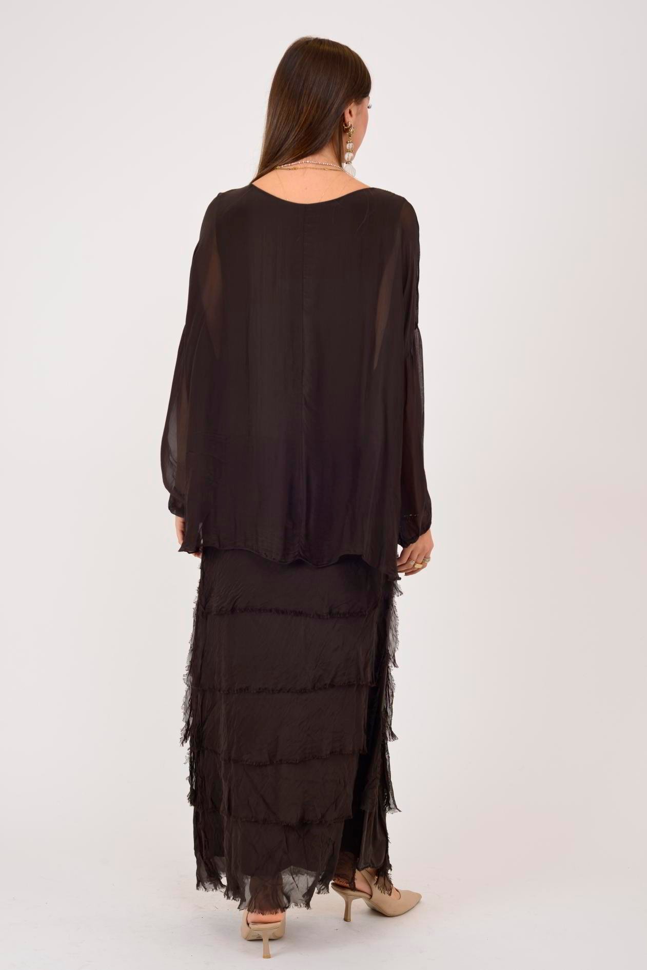 7509 PUL DETAYLI UZUN KOL KAT KAT İPEK ELBİSE (25Y.T.ELB.00462-005)