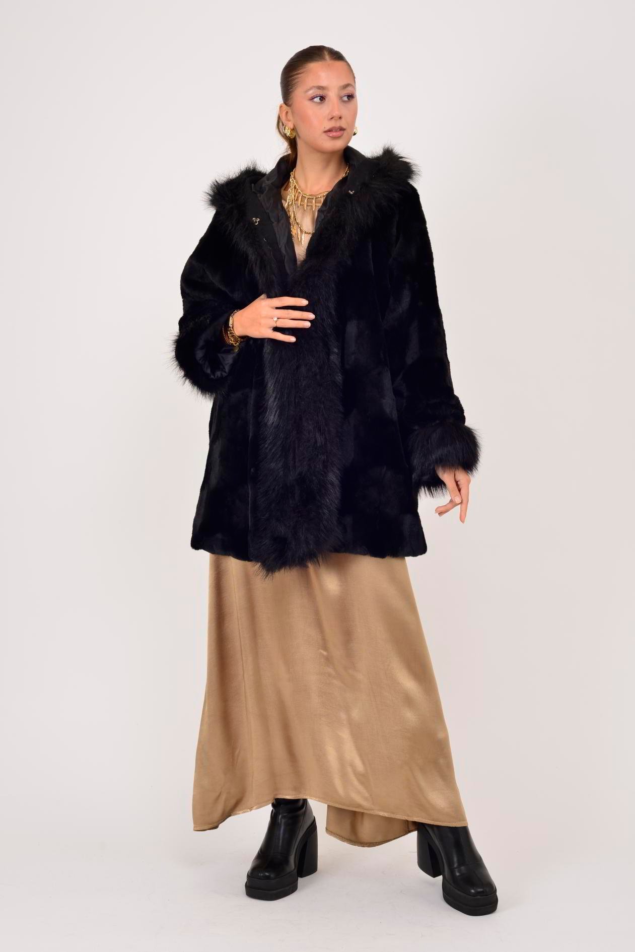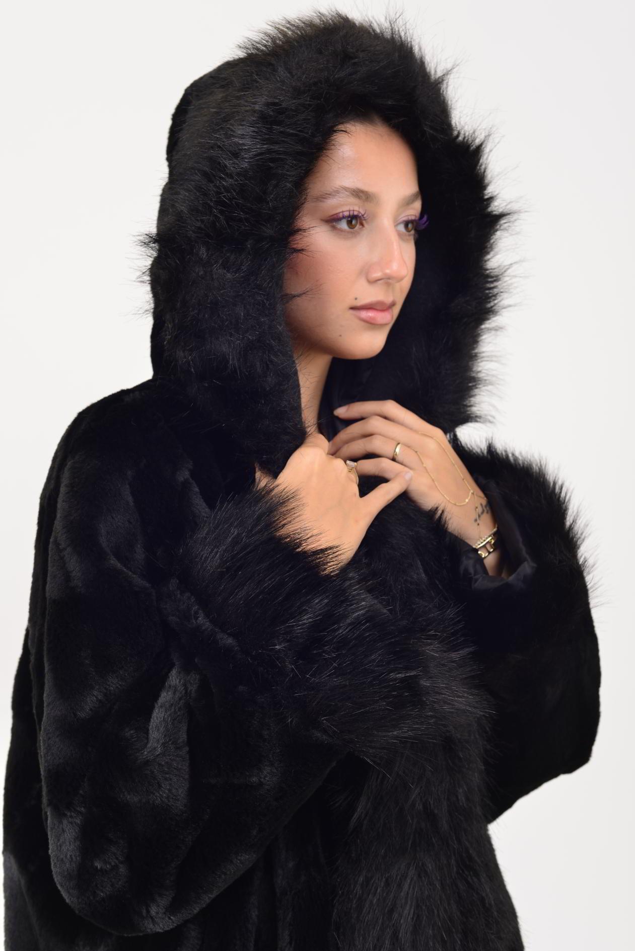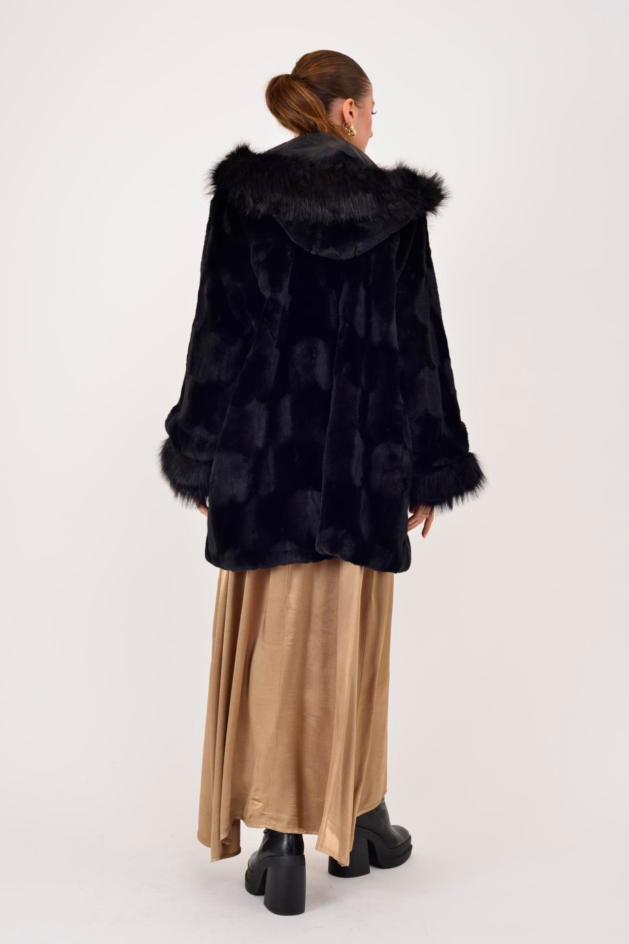 9055 VIOLA KÜRK DETAYLI KAPÜŞONLU KABAN (24K.T.KBN.00050-001)