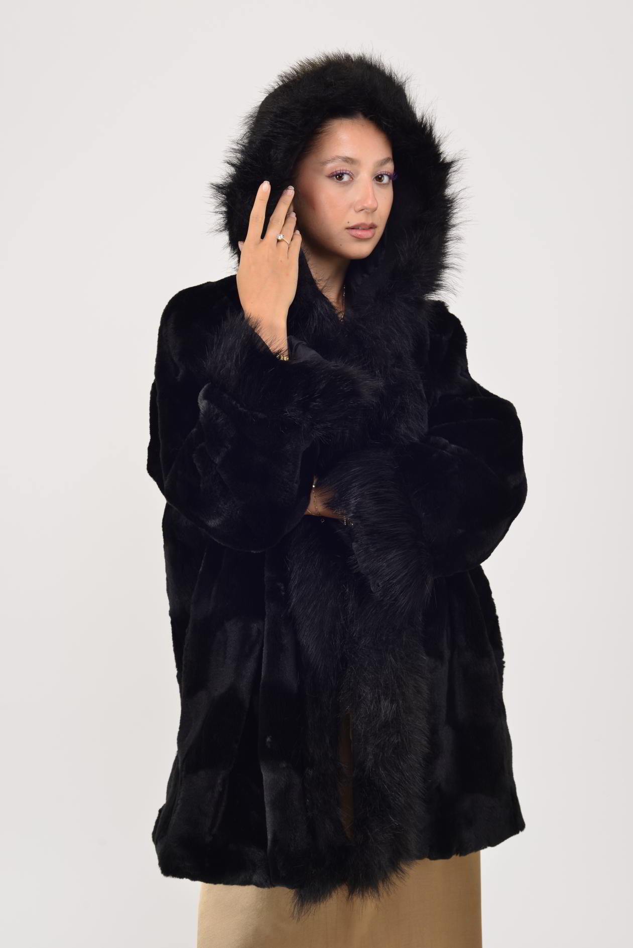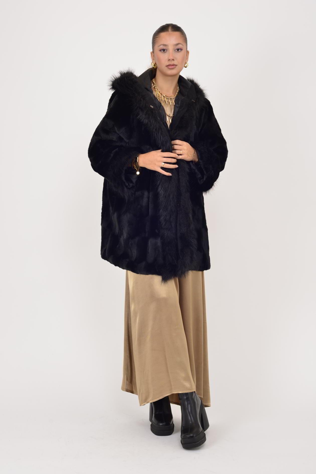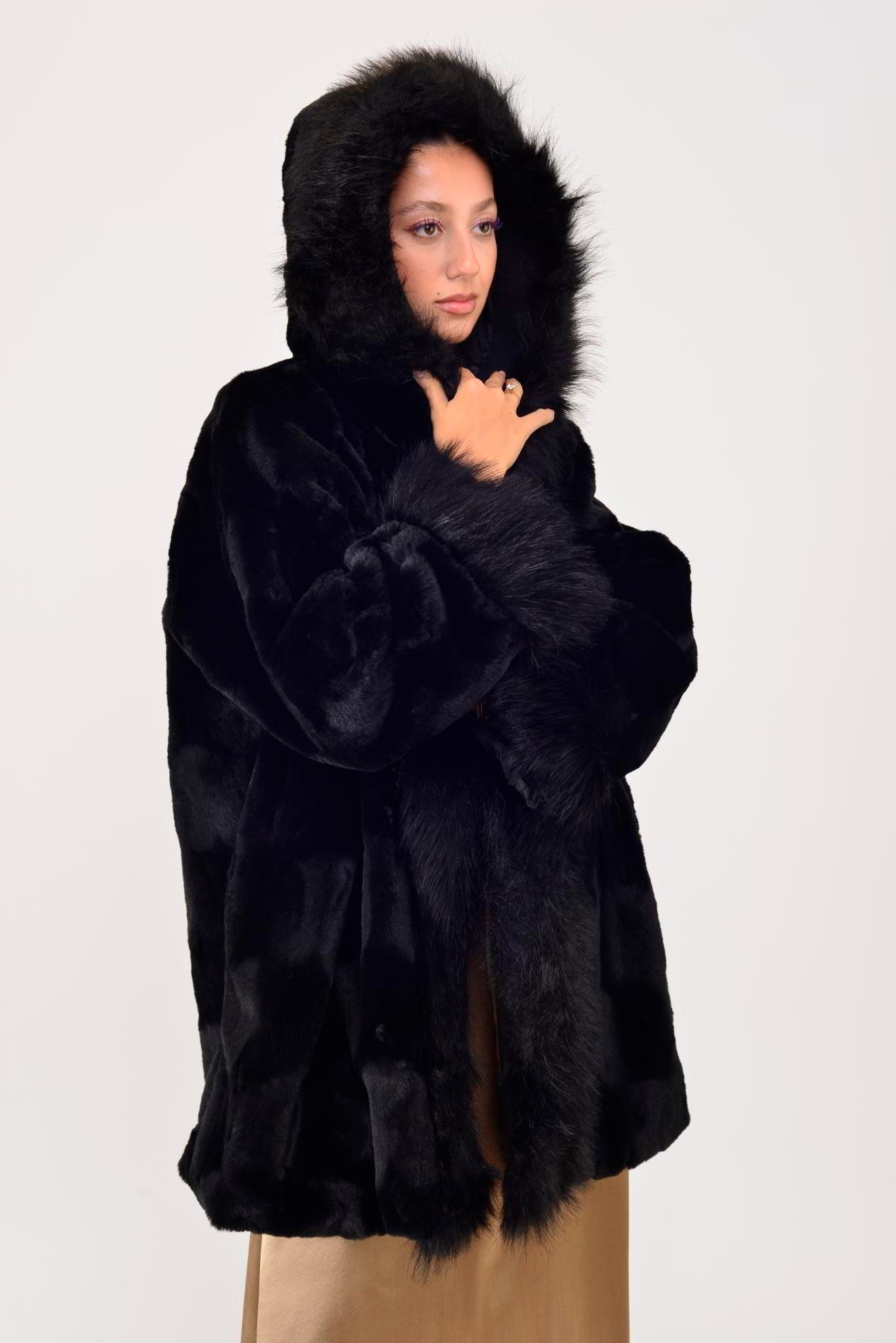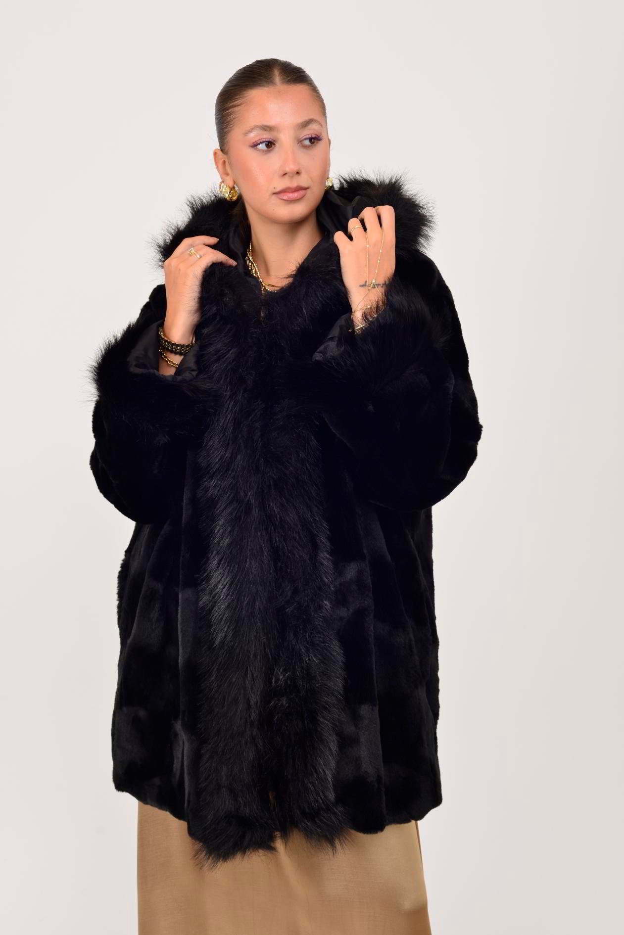 9055 VIOLA KÜRK DETAYLI KAPÜŞONLU KABAN (24K.T.KBN.00050-001)
