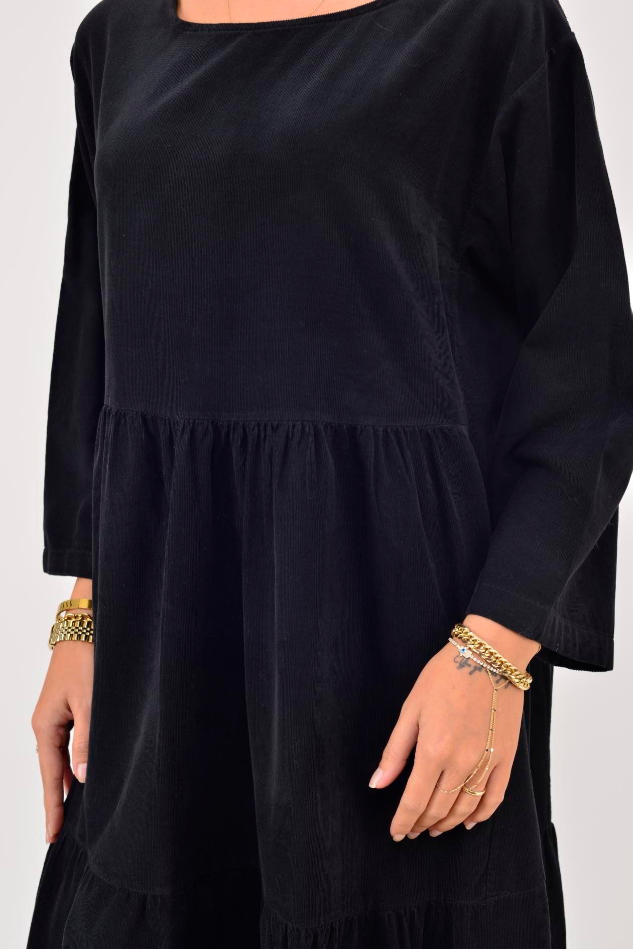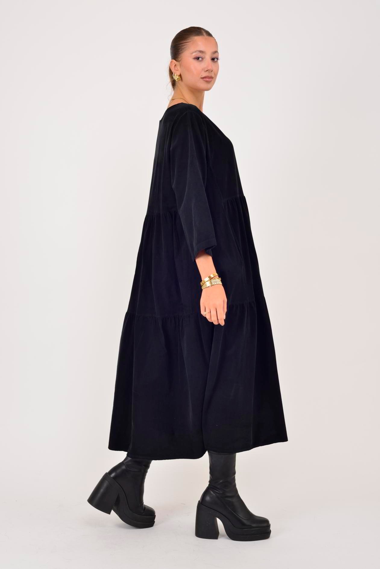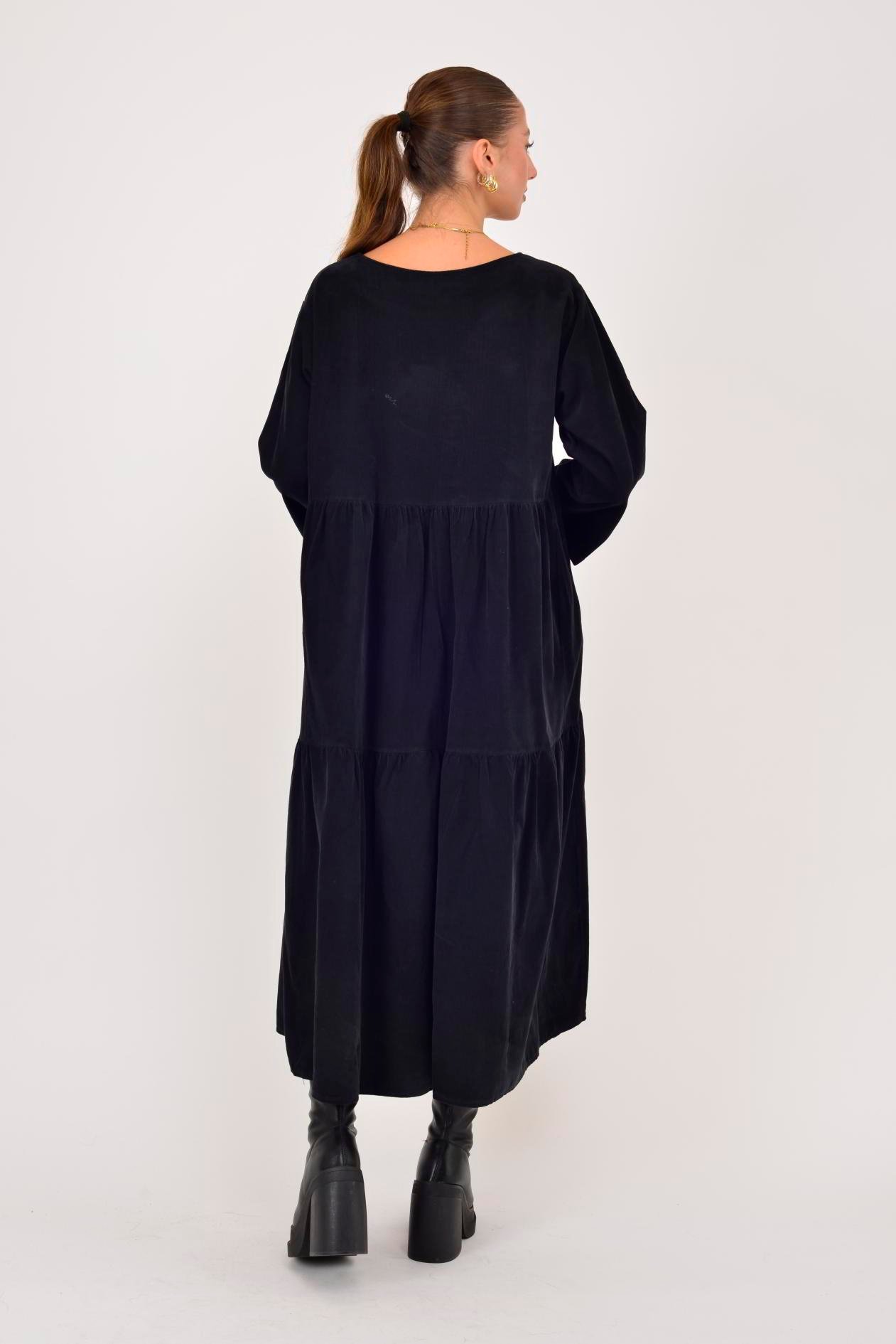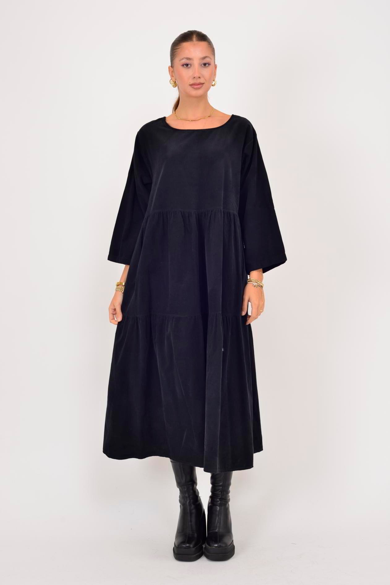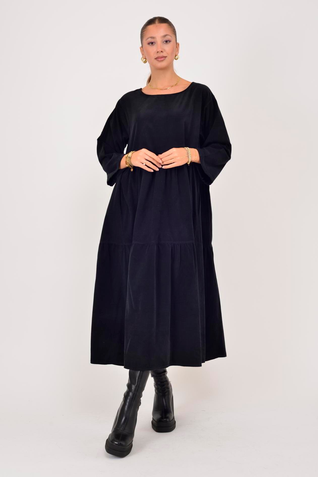 9879 LOVA BİSİKLET YAKA FİTİLLİ KADİFE ELBİSE (25K.T.ELB.00042-001)