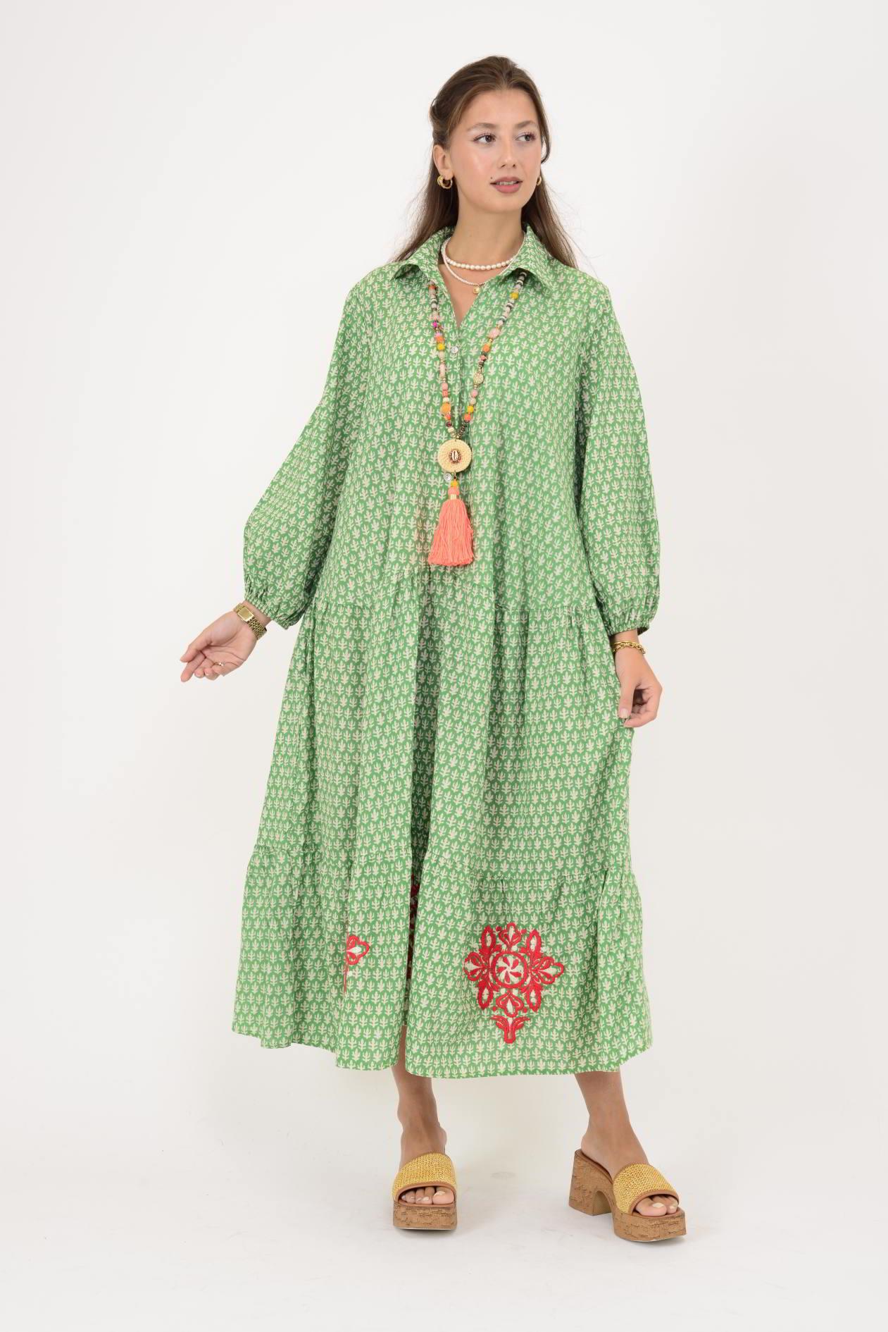 AN10522 MARIN NAKIŞ DETAYLI GÖMLEK ELBİSE (25Y.T.ELB.00431-B2776-V16)