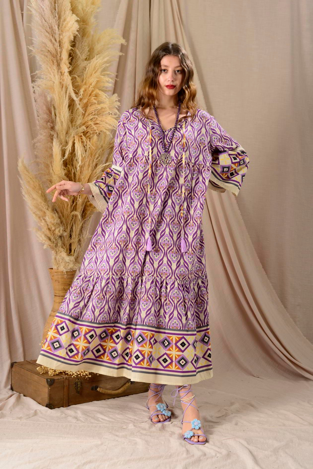 AN10628 MARIN KİLİM DESEN ELBİSE (24Y.T.ELB.00152-8896-V4)