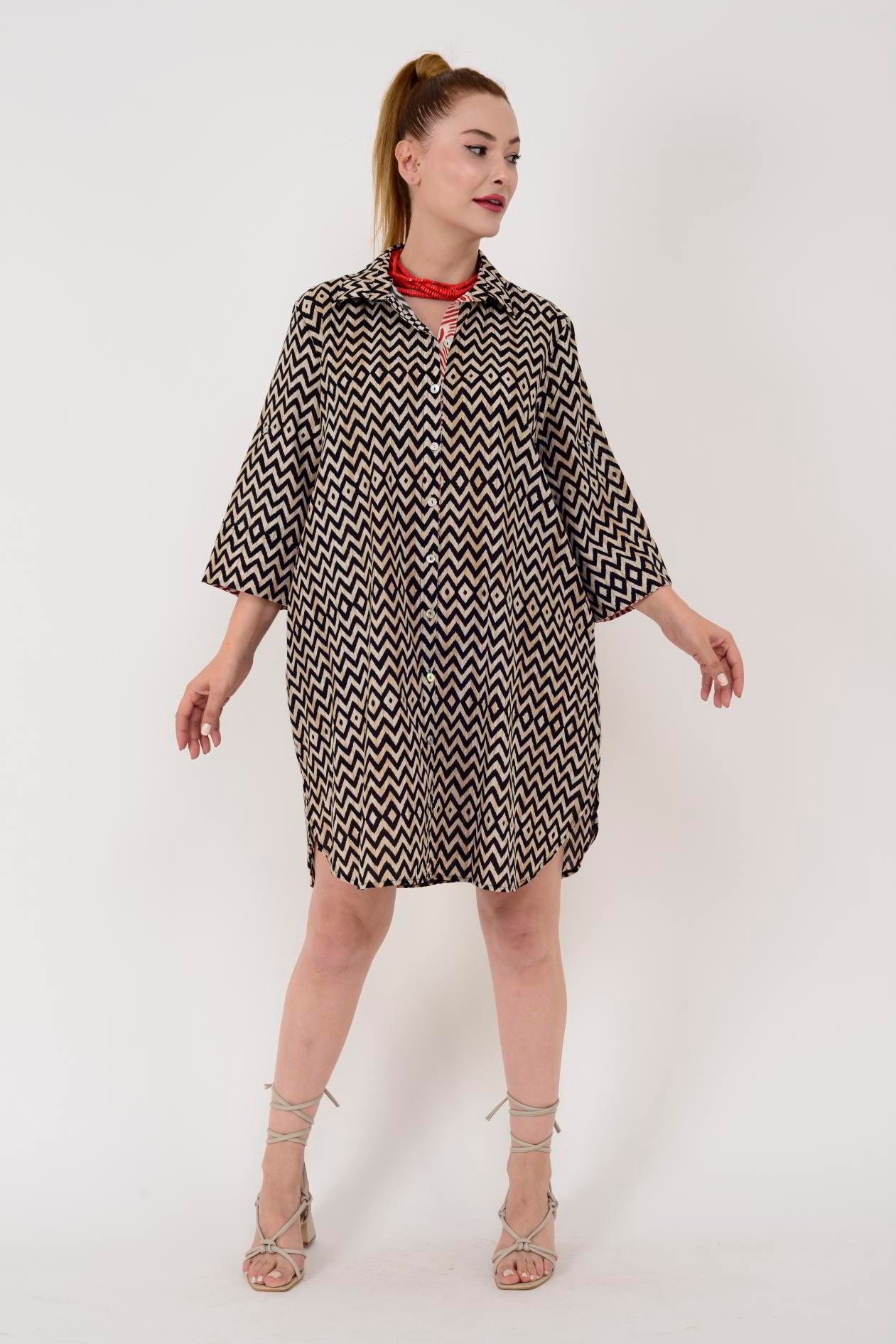 AN114 GARNİ DETAYLI KISA GÖMLEK ELBİSE (24Y.T.ELB.00318-A3534-V1)