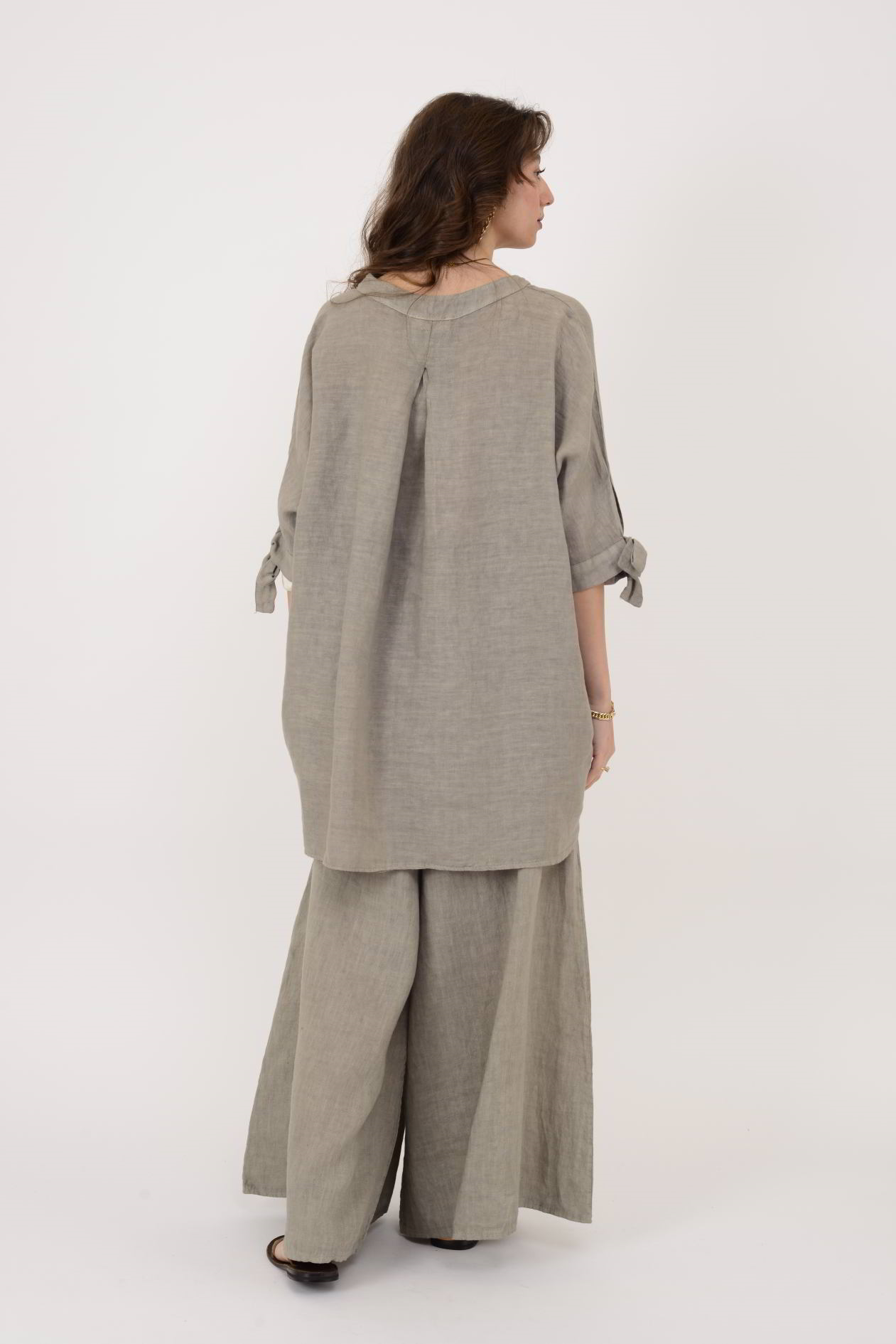 B994 ARKASI UZUN V YAKA KETEN BLUZ (18Y.T.BLZ.0123-31)