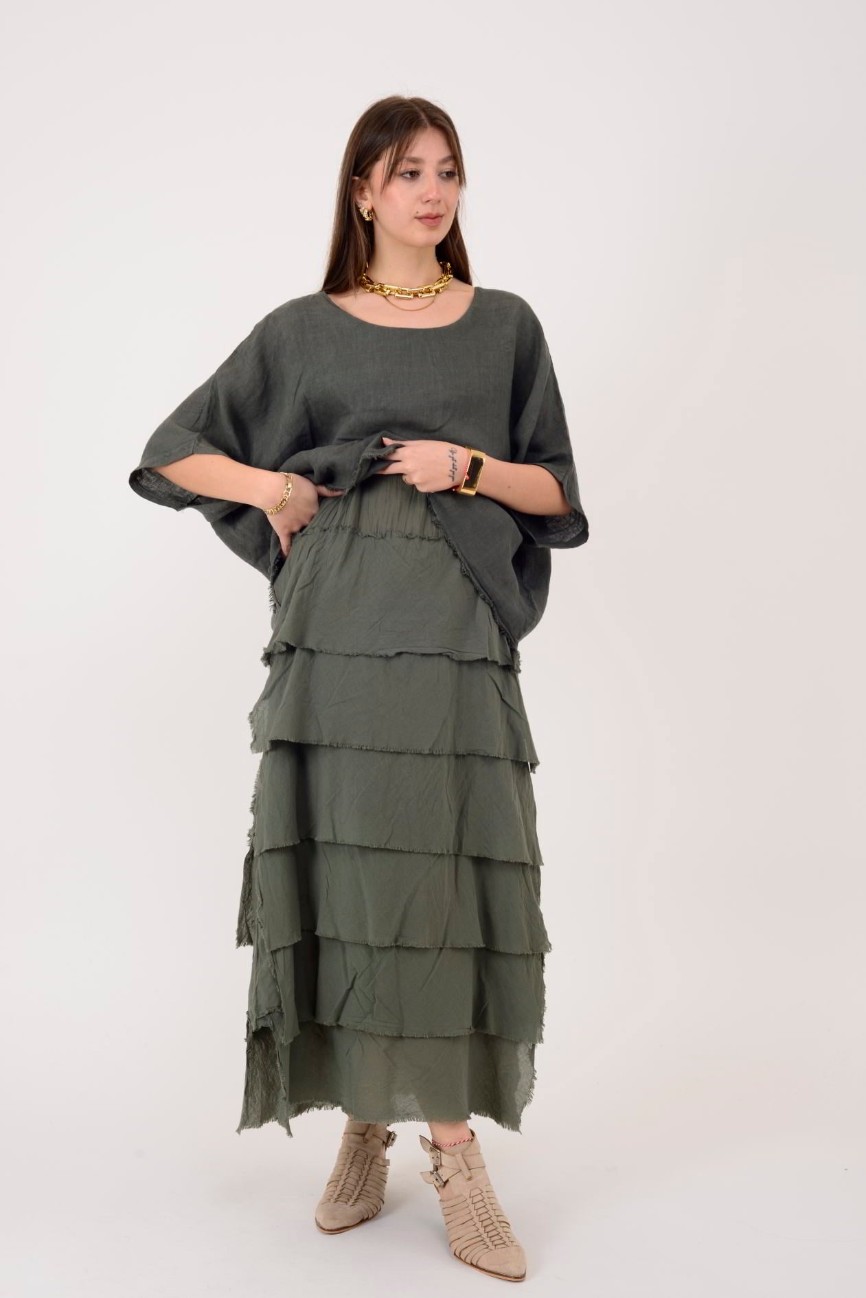 E20831 KAT KAT KETEN ELBİSE (26Y.T.ELB.00077-020)