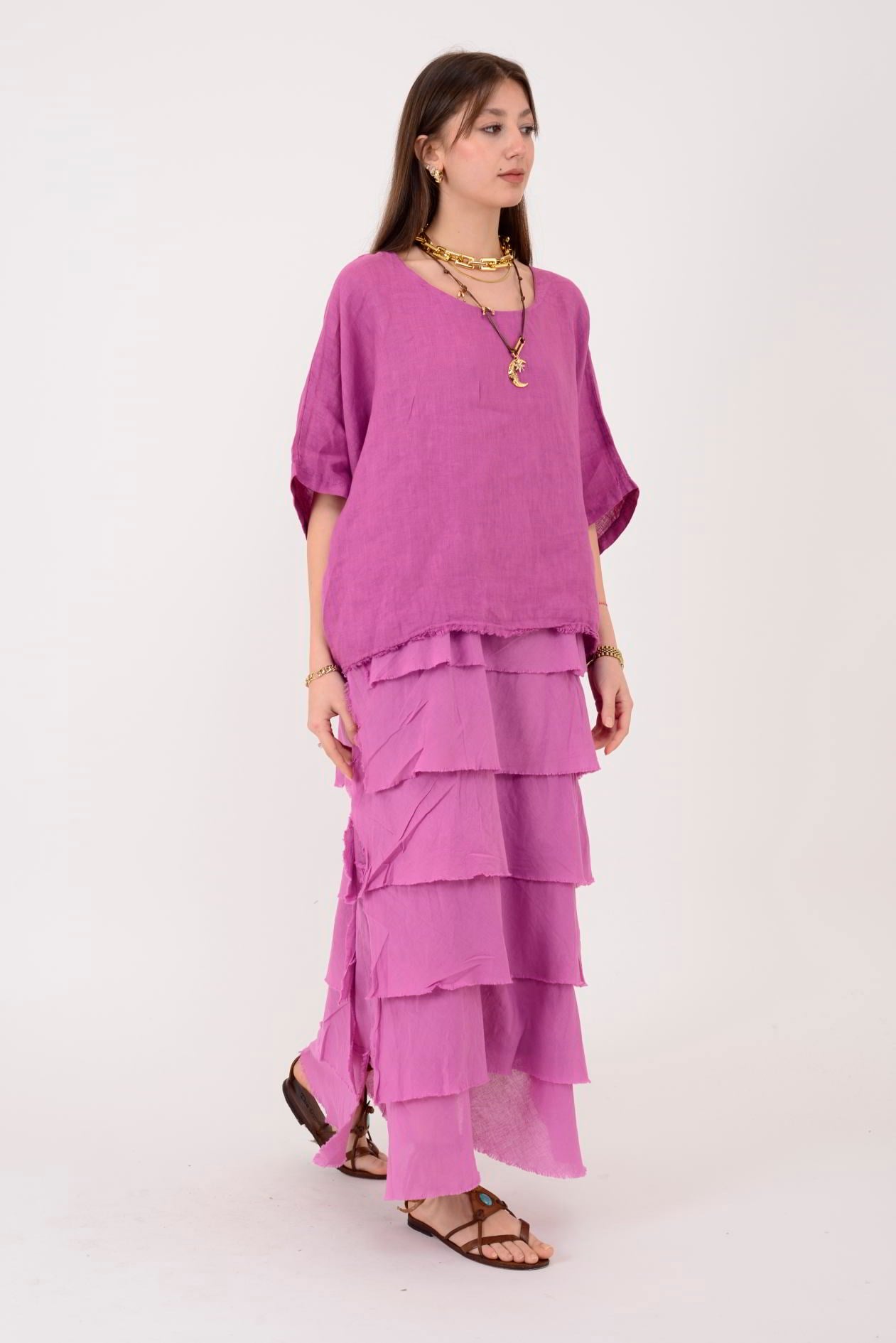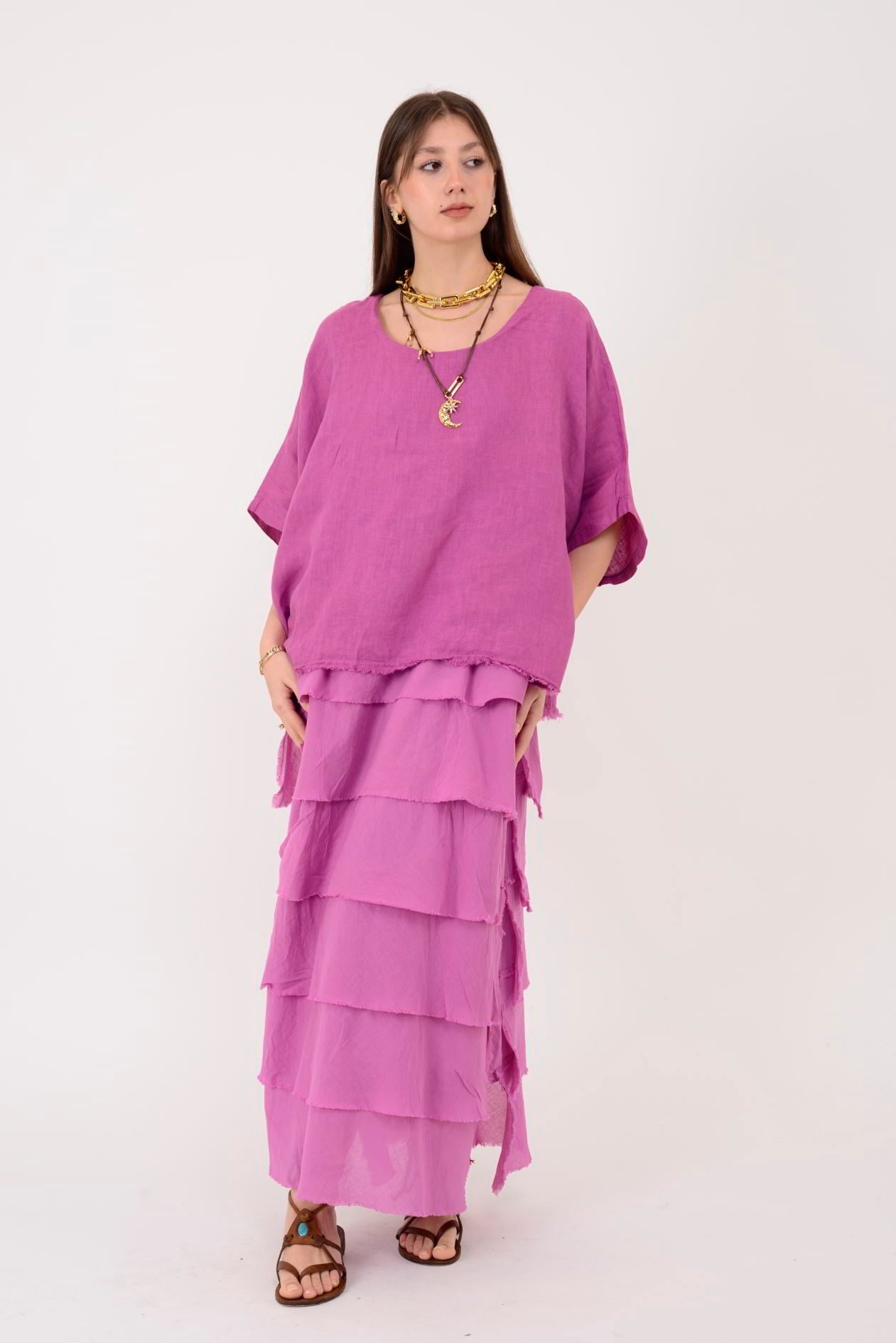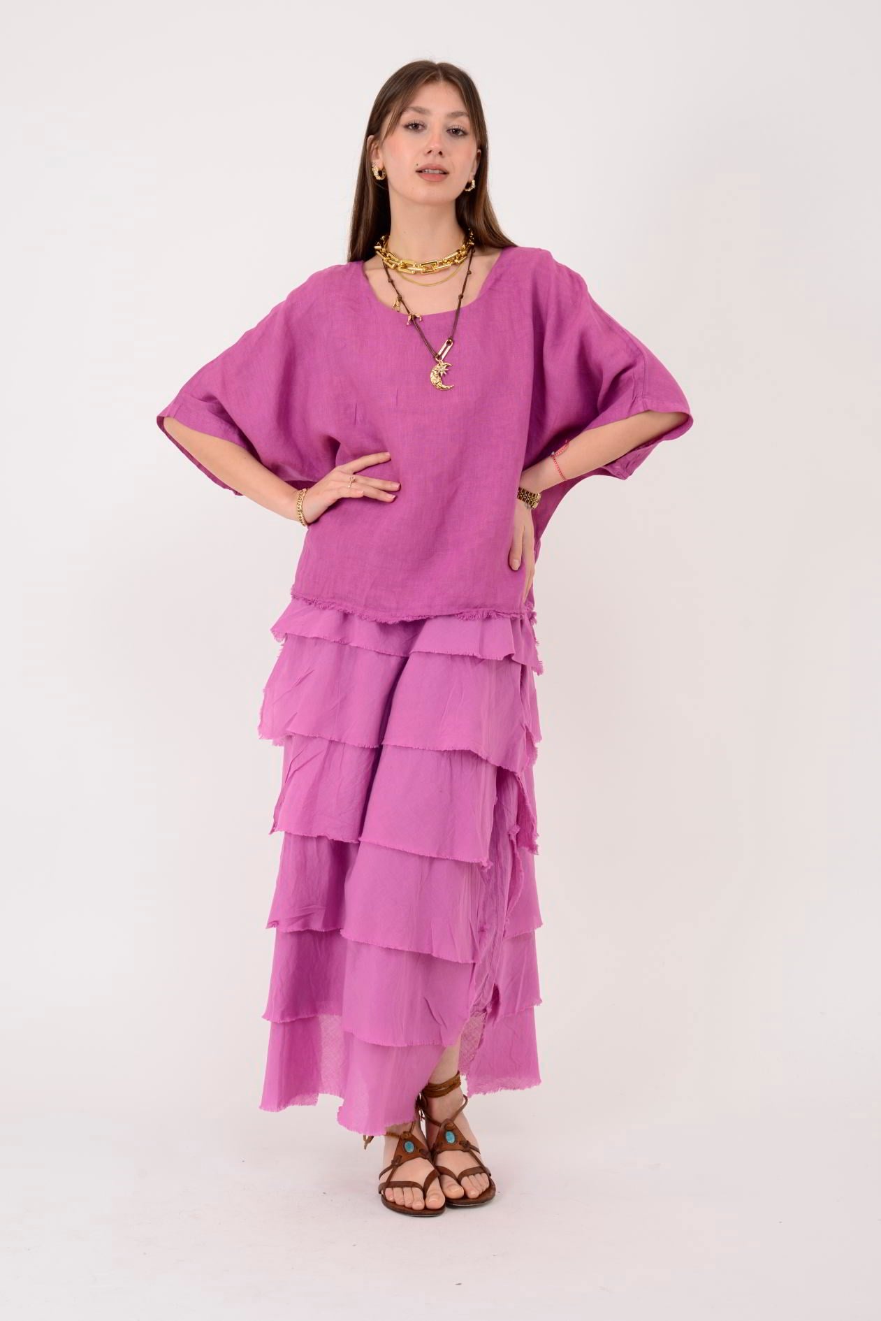 E20831 KAT KAT KETEN ELBİSE (26Y.T.ELB.00077-LYL)