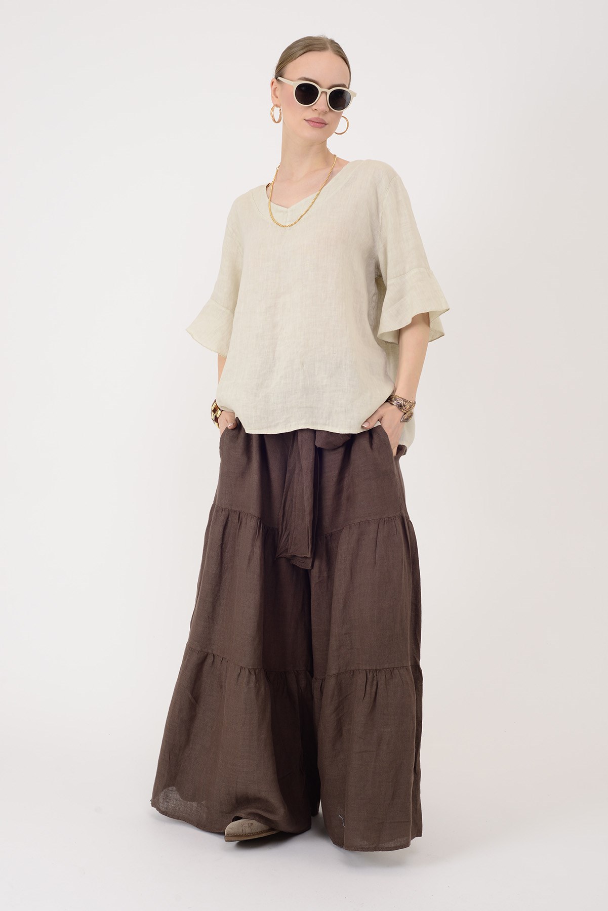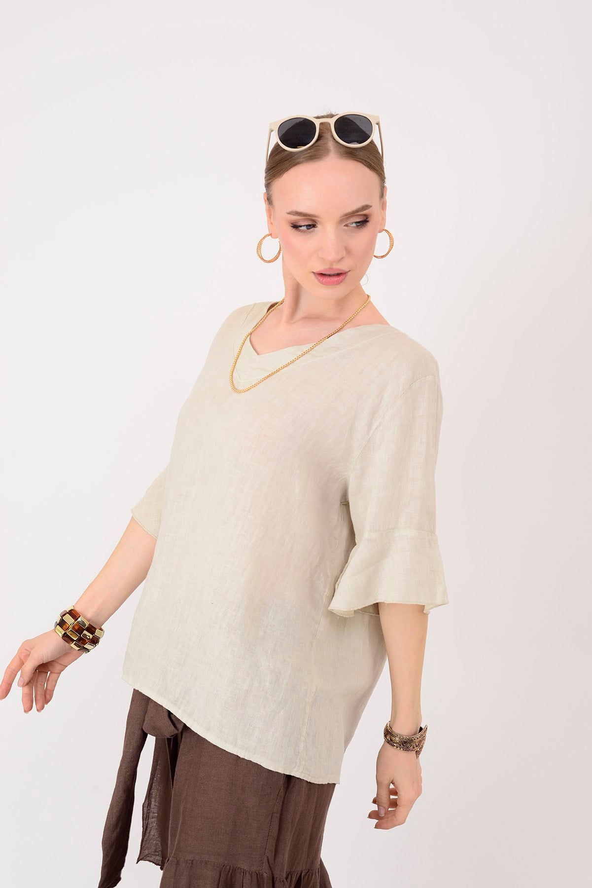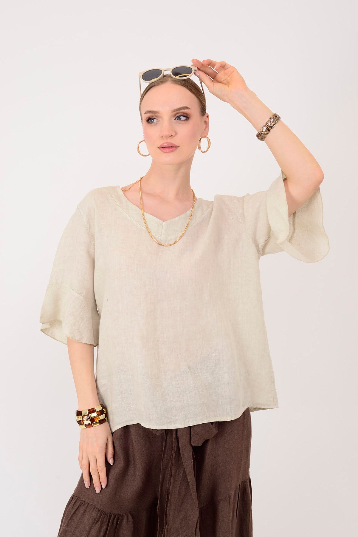 E31081 V YAKA KETEN BLUZ (26Y.T.BLZ.00046-016)