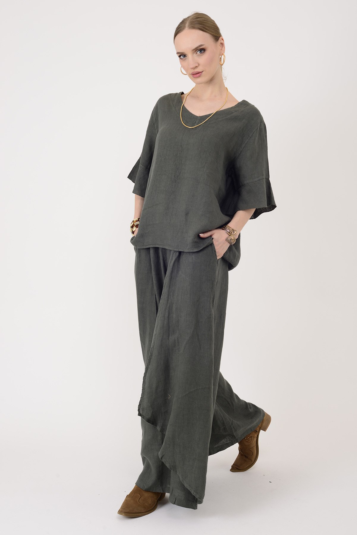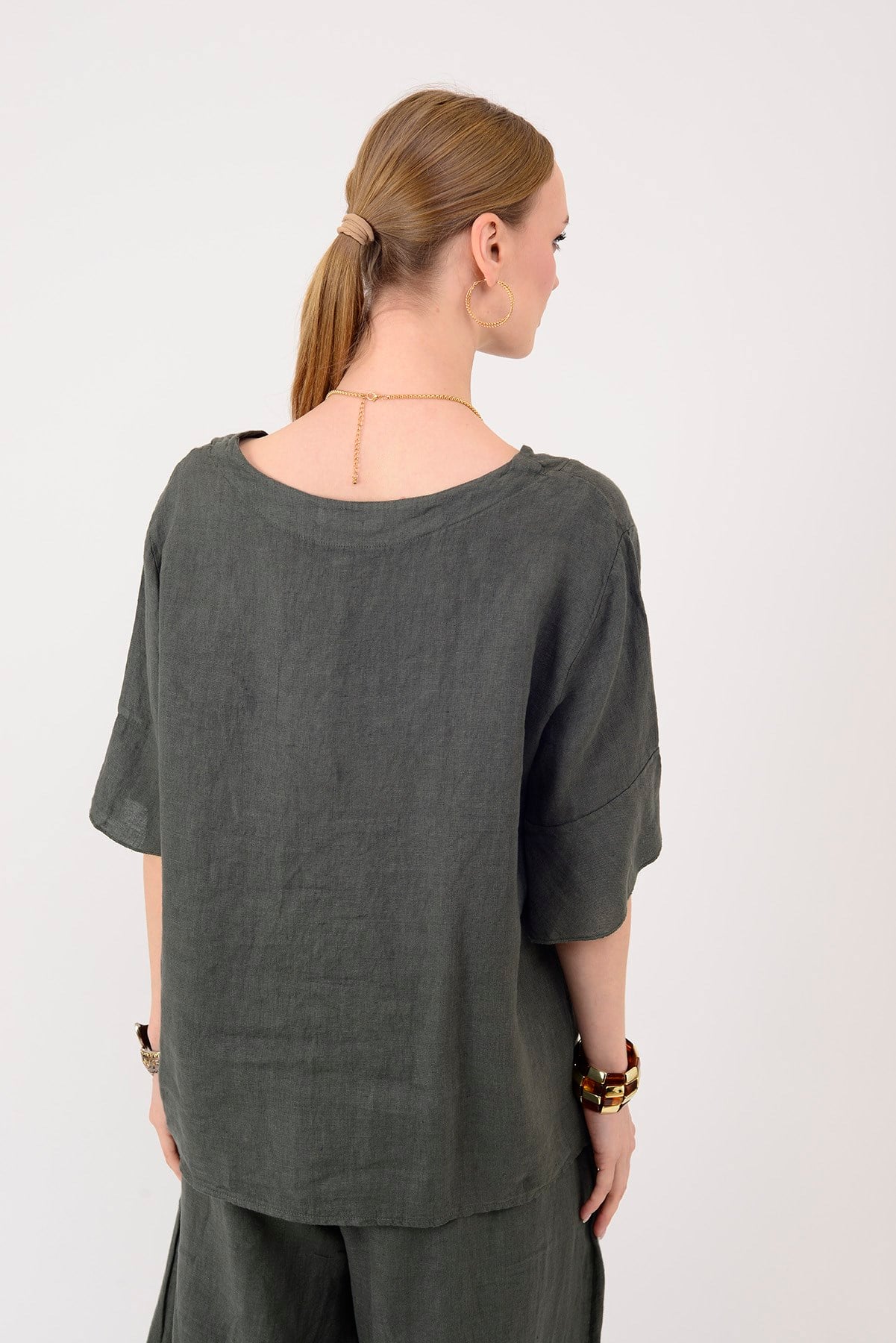 E31081 V YAKA KETEN BLUZ (26Y.T.BLZ.00046-020)